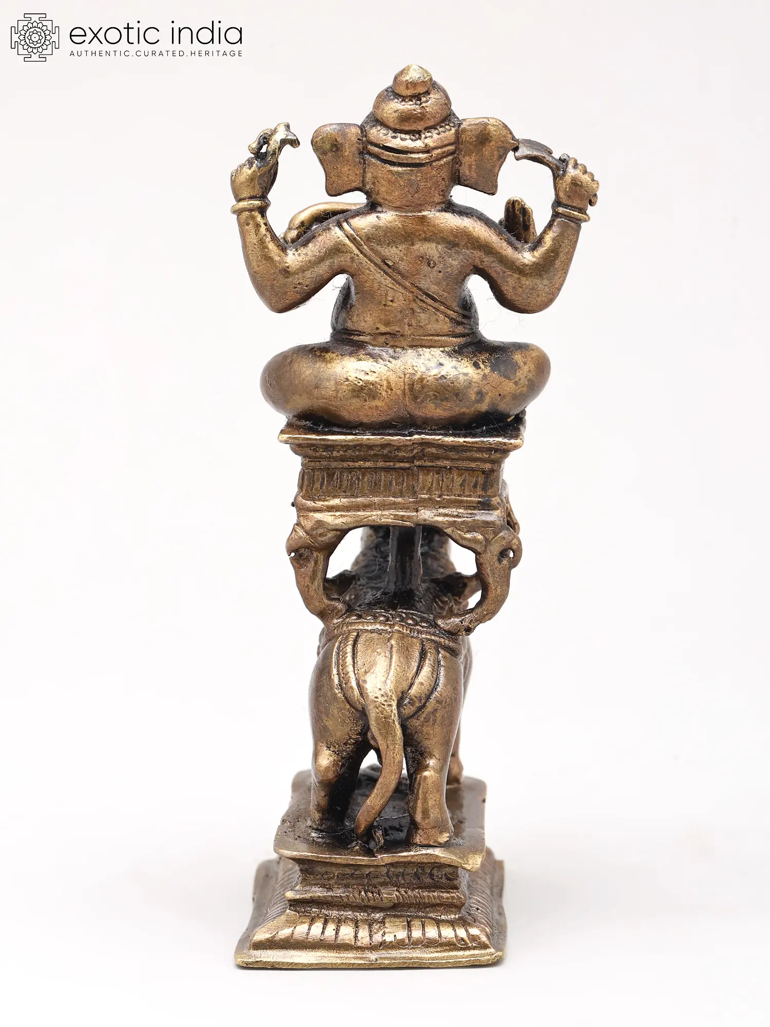 3" Small Four Armed Lord Ganesha Idol for Prosperity and Auspicious Beginnings | Copper Statue | Made in India
