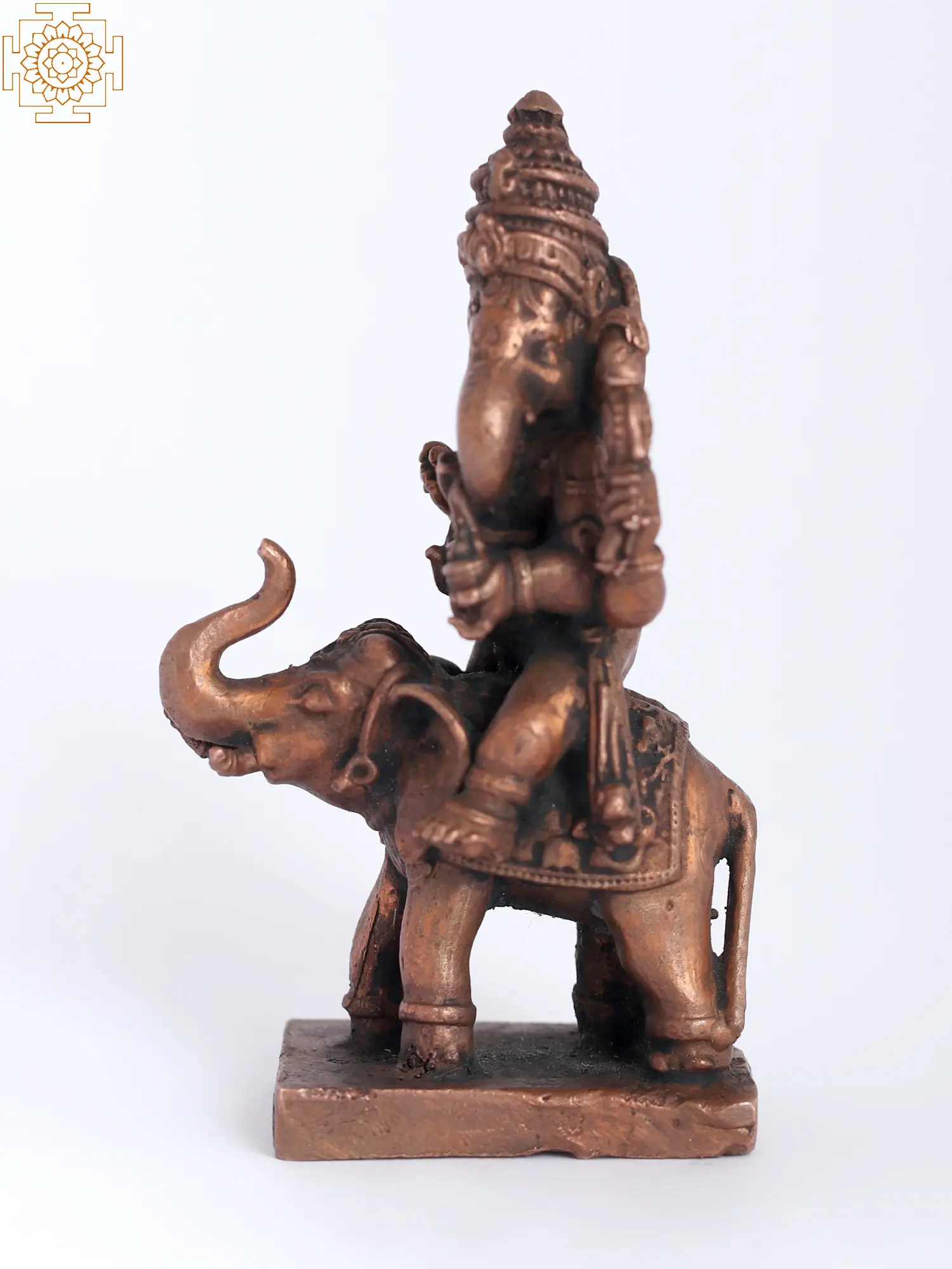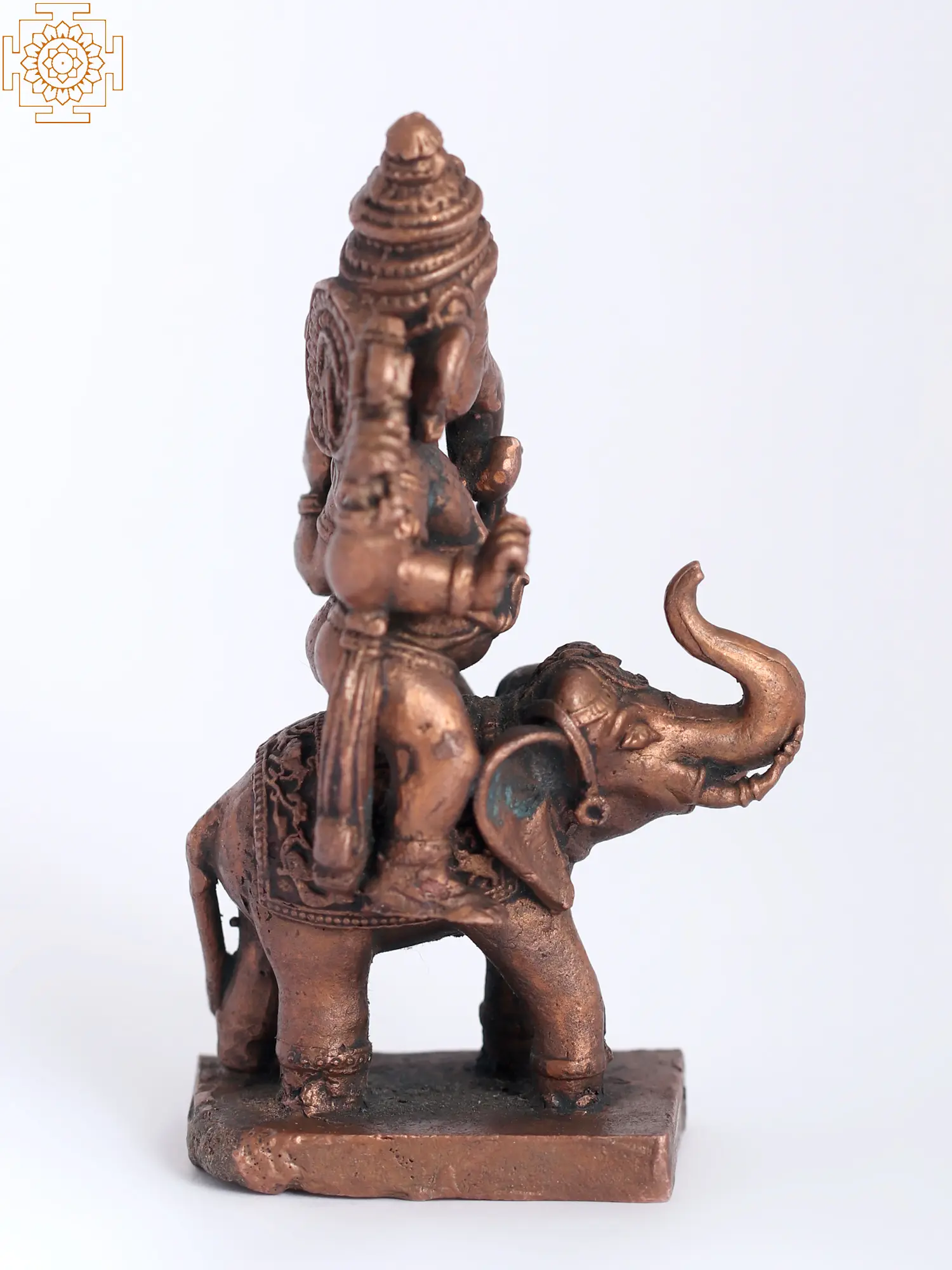 The first-revered son of Shiva and Parvati and the bestower of universal abundance and wisdom on his devotees, Sri Ganesha is presented in the copper statue in a unique form, enthroned on an elephant, the animal which symbolizes astuteness and luxuriousness in Hindu culture. Ganesha is ornamented exquisitely, and appears in his four-armed roopa, exuding majesty in front of which the mighty Gaja bows.