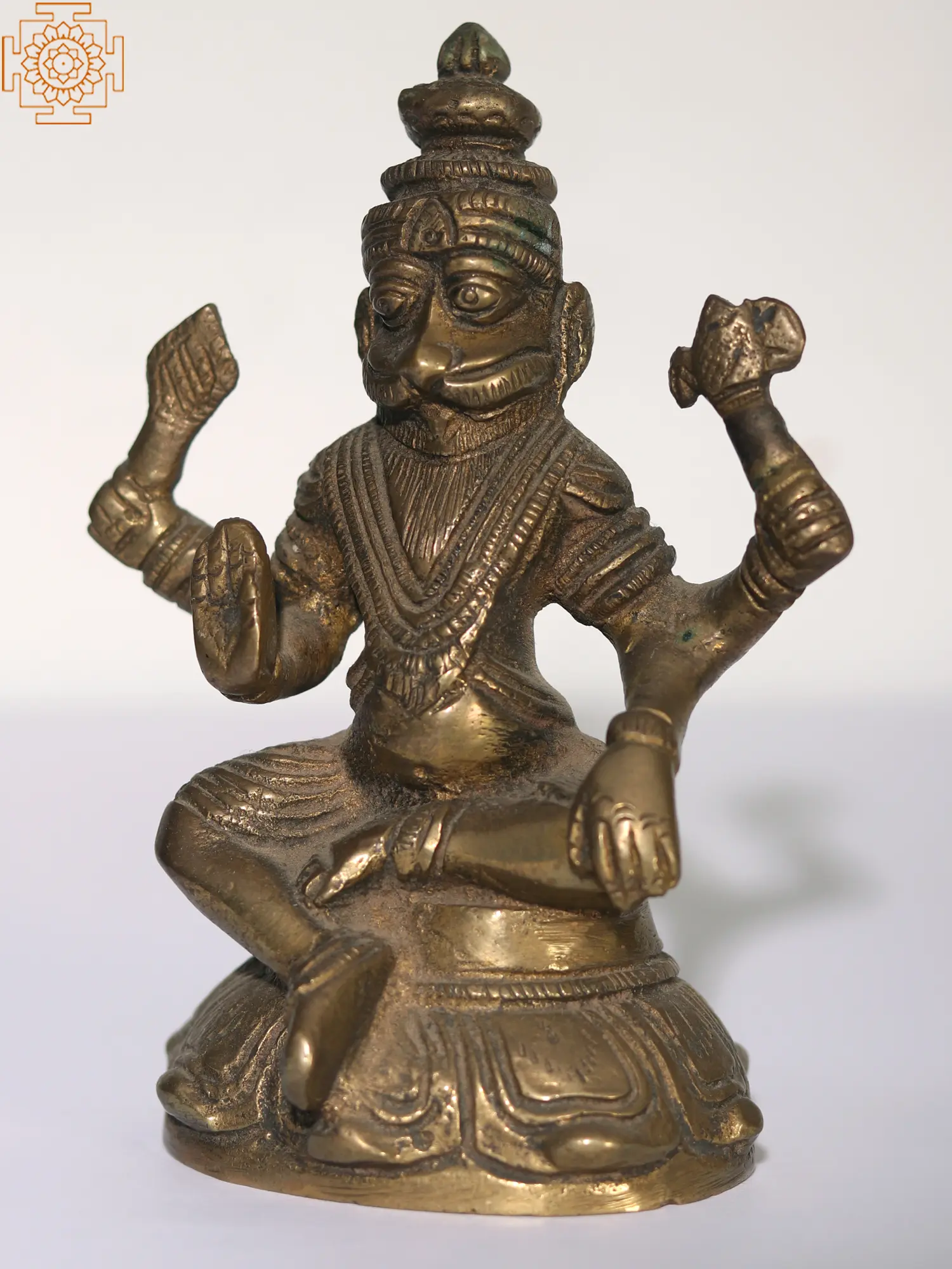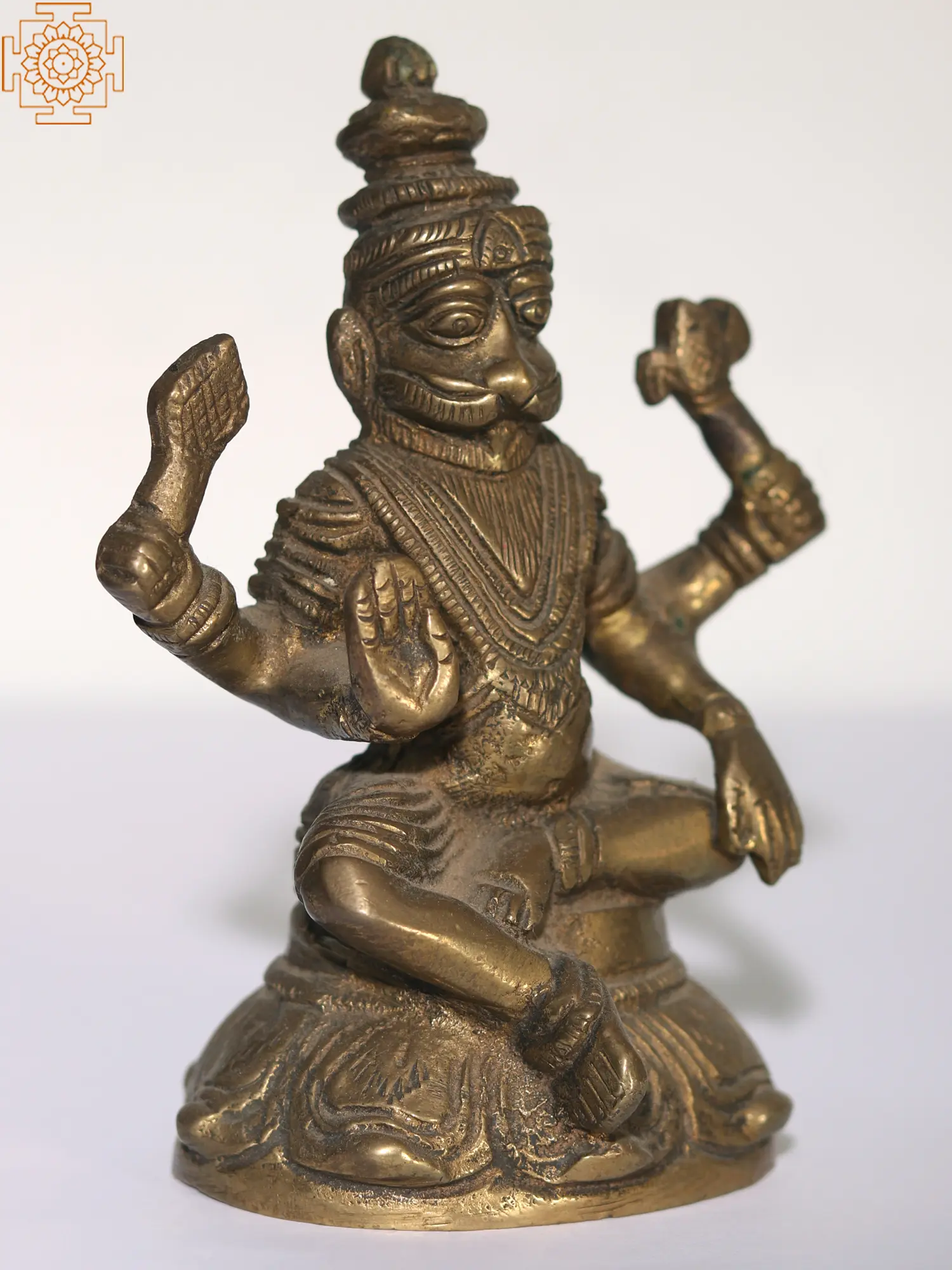 In this brass creation, Lord Narasimha, an enchanting embodiment of divinity, graces us from a lotus pedestal, his majestic form in Lalitasana exuding tranquil power. Lord Narasimha is the avatar of Lord Vishnu, who is believed to have incarnated in the form of a part-lion, part-man being to kill demon Hiranyakashipu, to restore Dharma. Here, His right hand’s “Abhaya Mudra” promises fearlessness, a shield against adversities. Lord Narasimha symbolises the eternal battle between good and evil. Painstakingly crafted in brass, this artwork encapsulates the cosmic balance, reminding us of the valorous Narasimha, who incarnated to protect his devotee “Prahlada” and uphold righteousness.
