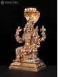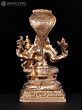 21" Four Armed Blessing Ganesha Seated on Lotus in Brass | Handmade | Made In India
