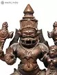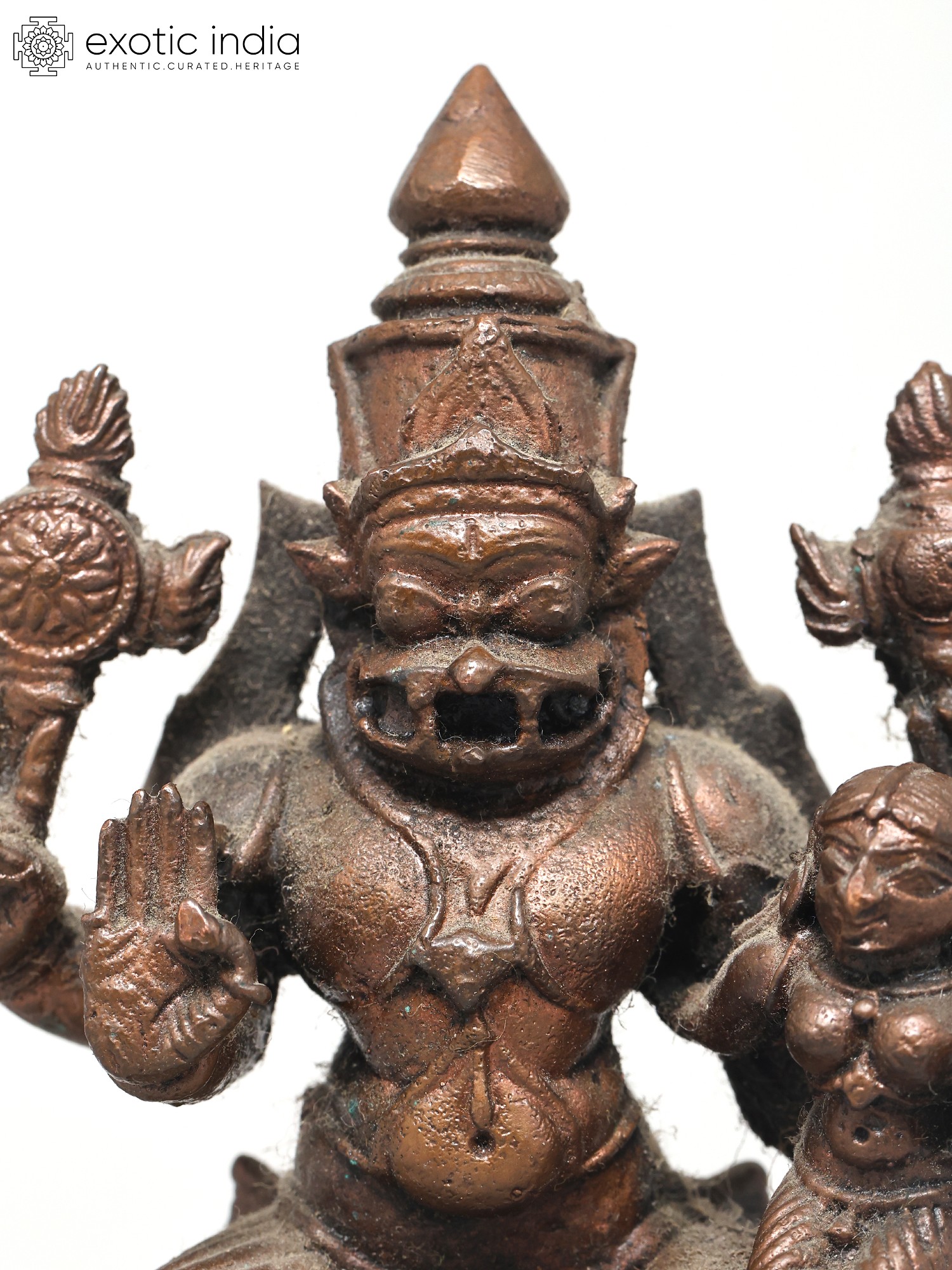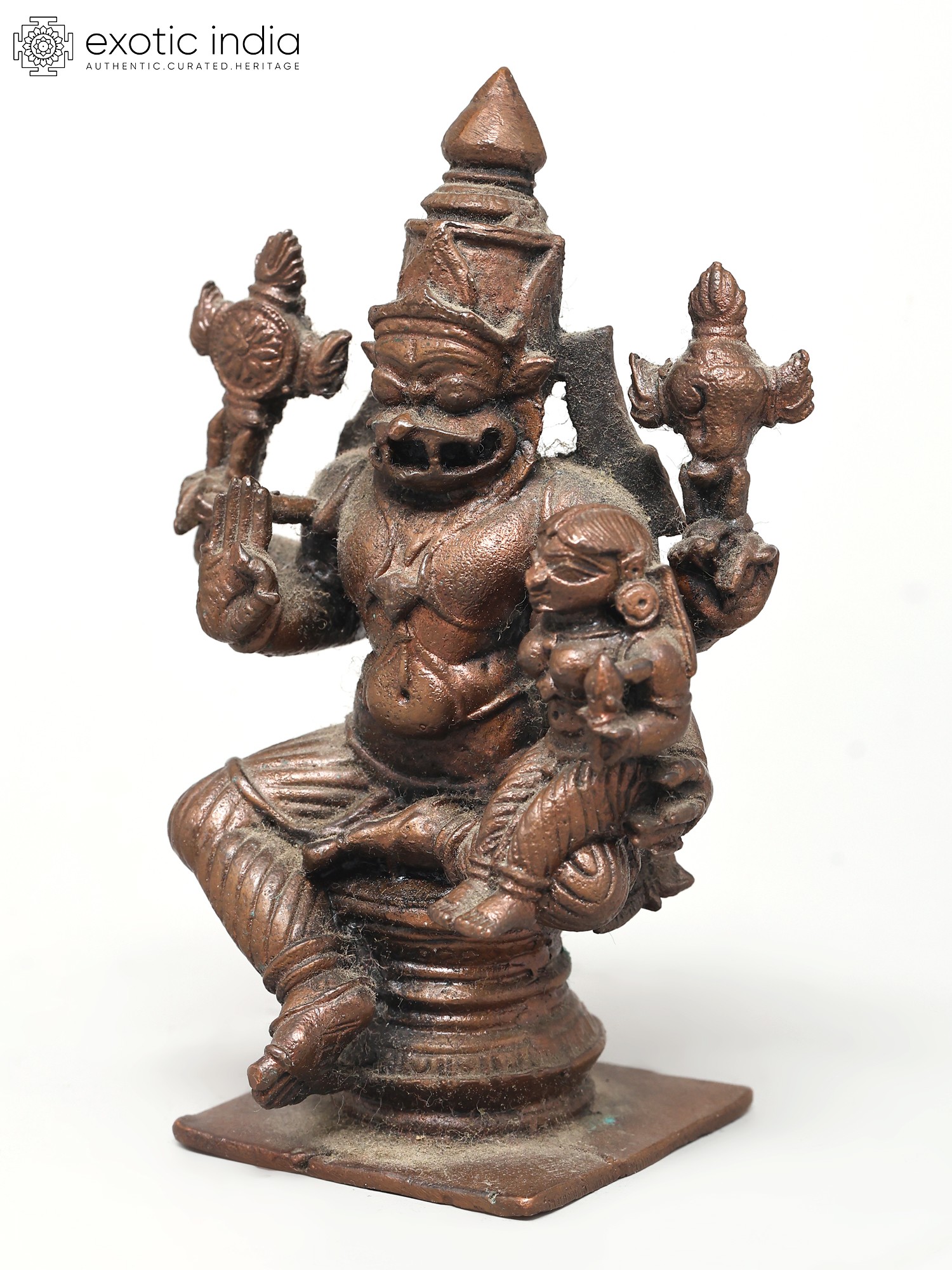 4" Small Lord Narasimha Seated on Kirtimukha Throne with Devi Lakshmi | Copper Statue