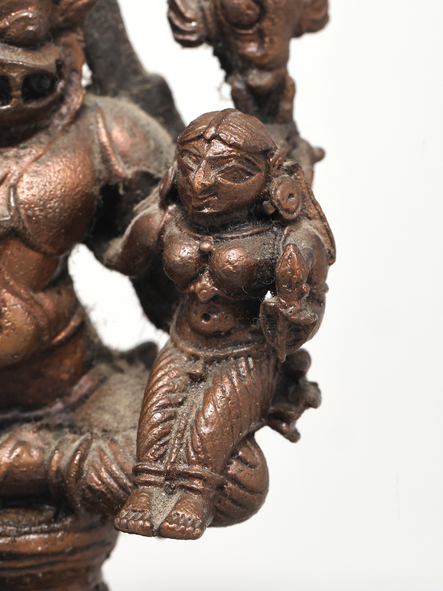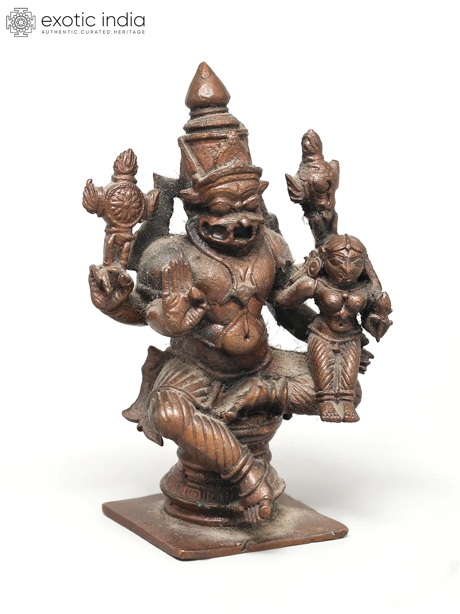 2" Small Lord Narasimha Copper Statue Seated with Devi Lakshmi