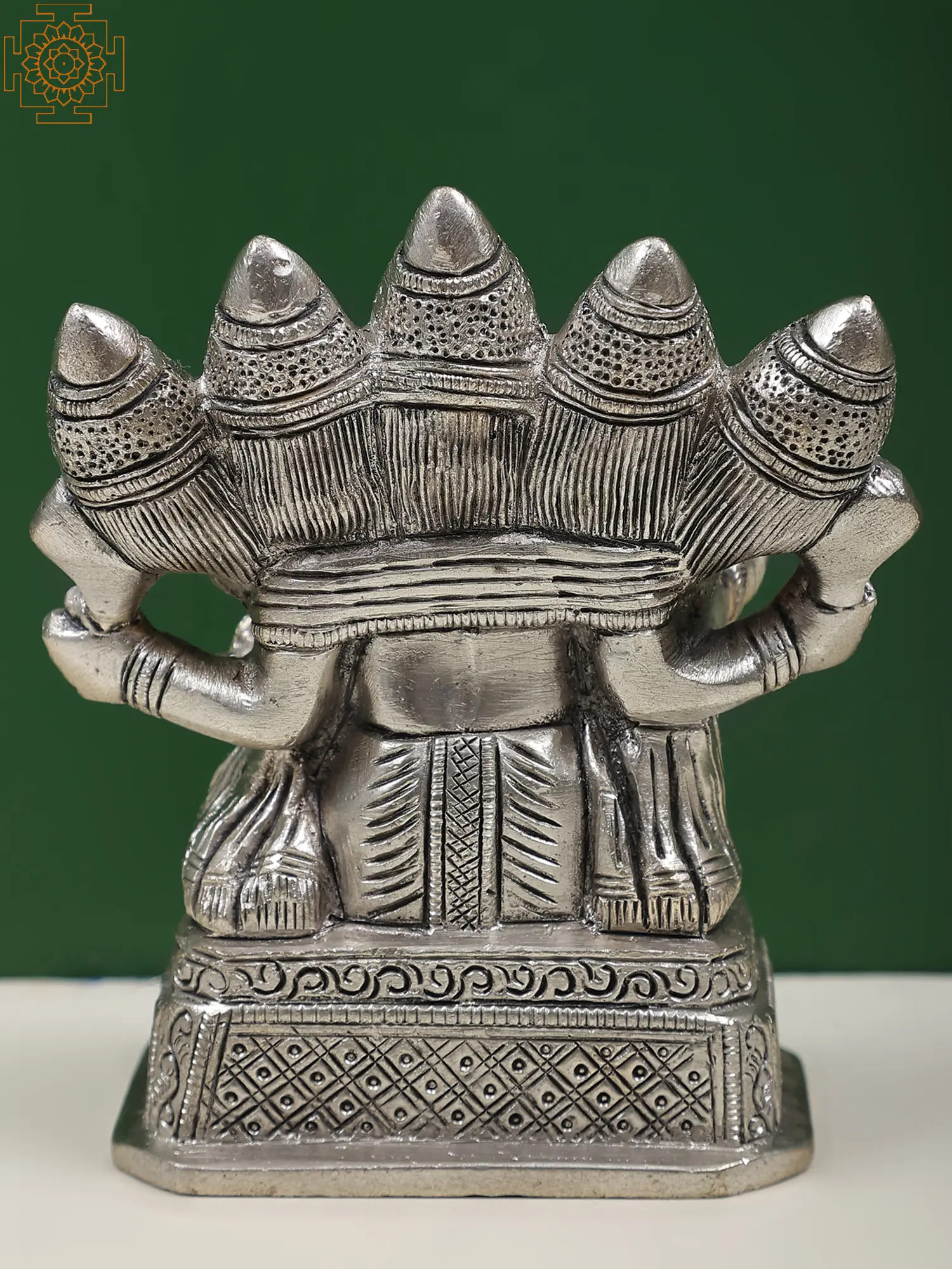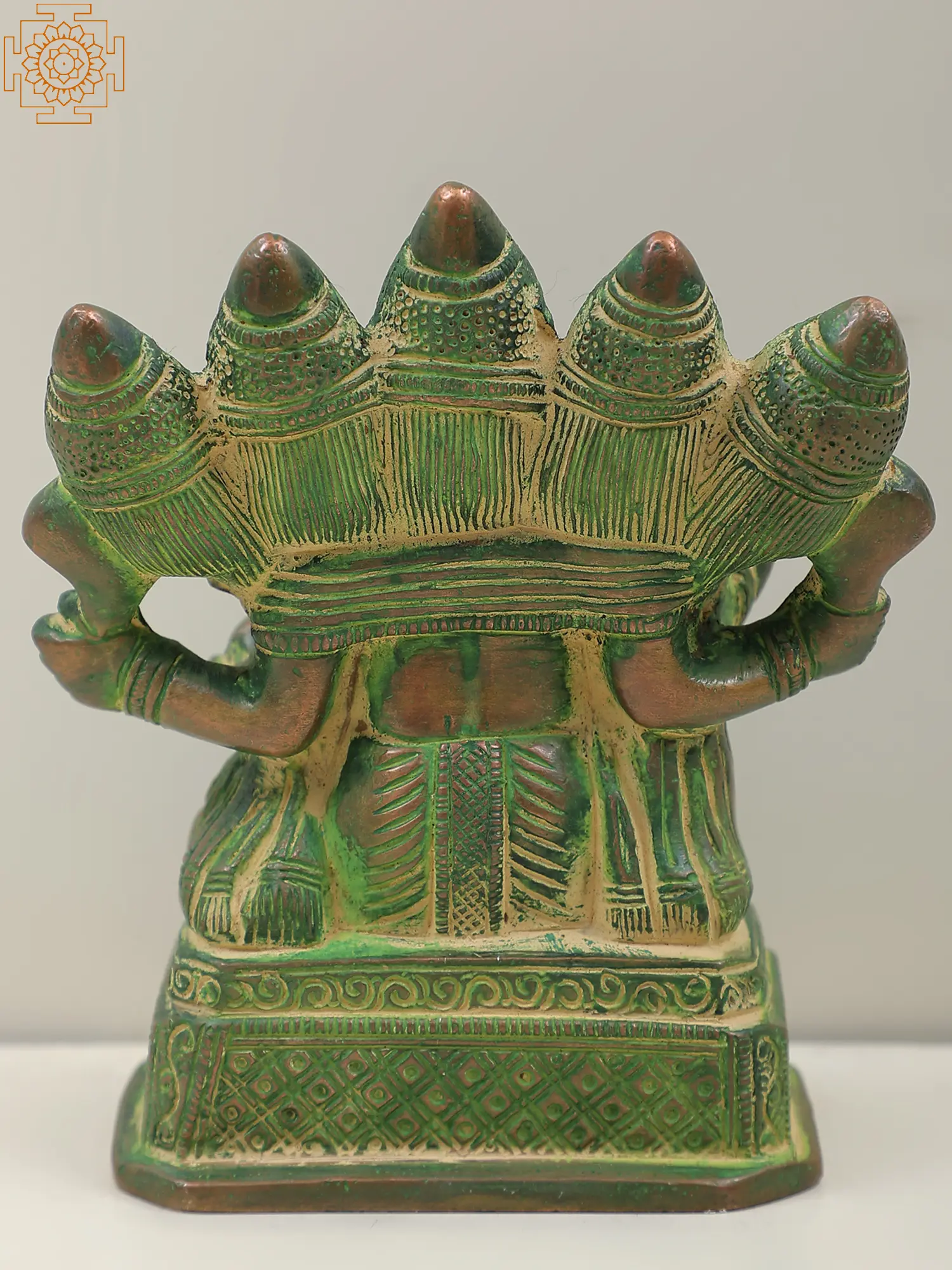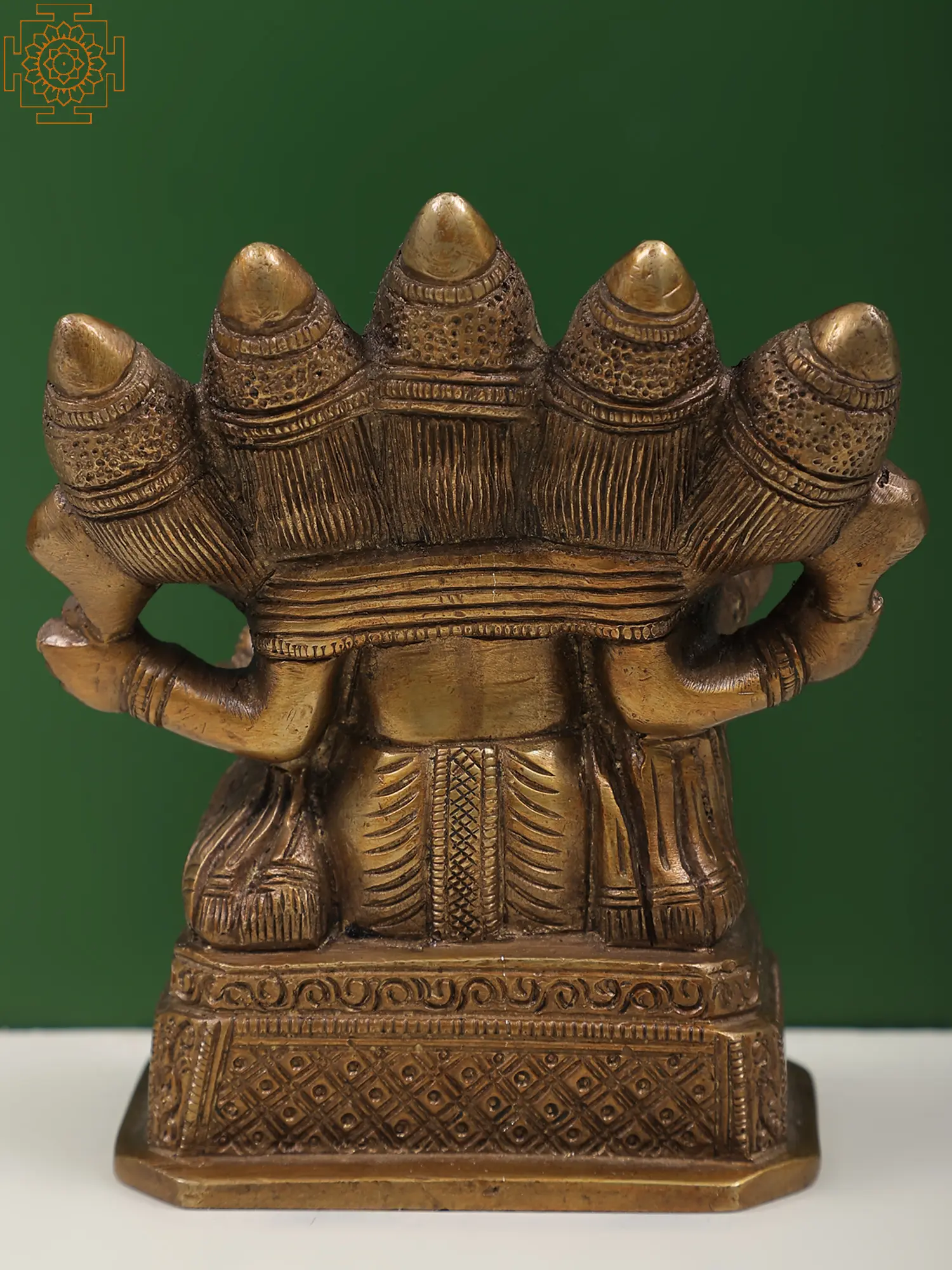 This stunning brass Panch-Mukhi Ganesha statue encapsulates the multidimensional facets of the beloved deity. Ganesha's five heads represent the diverse perspectives through which he bestows blessings upon devotees. His intricately adorned crown signifies sovereignty over obstacles, and his modaka symbolizes the sweet rewards of life. The noose and goad in his hands guide individuals towards righteous paths, while his broken tusk teaches sacrifice. His ample belly signifies acceptance and contentment. Ganesha's presence exudes a sense of comfort, reminding us that life's journey is a blend of challenges and joys.