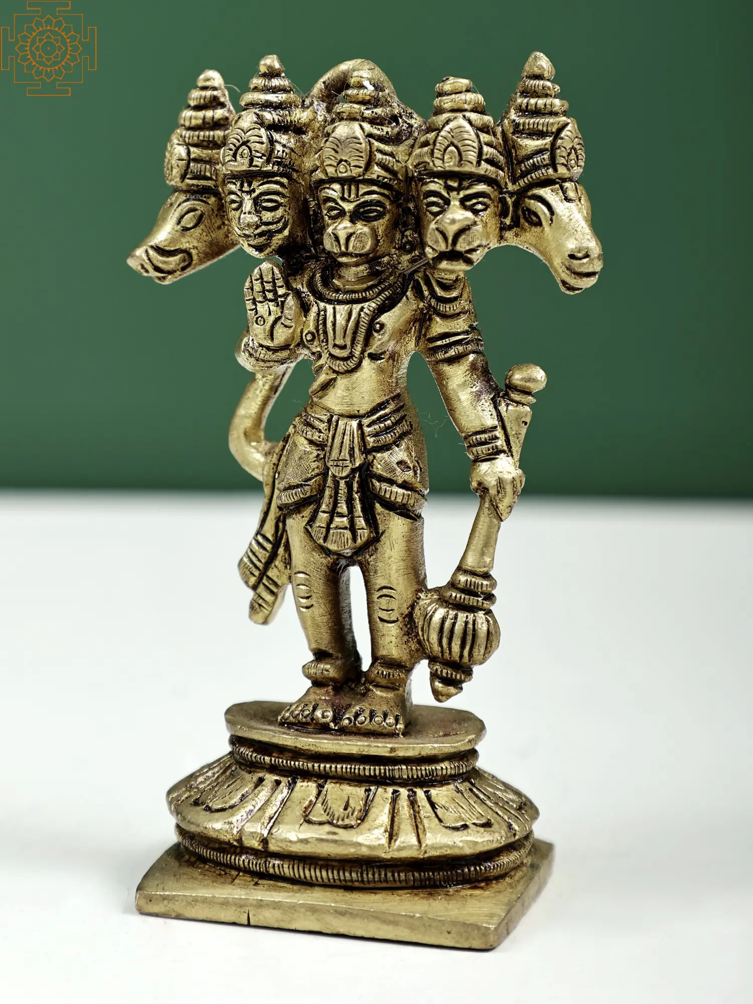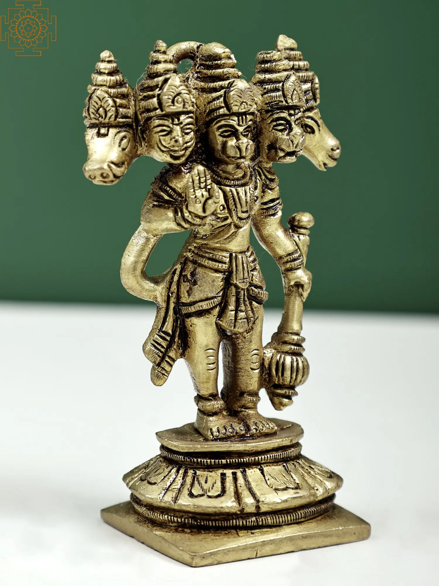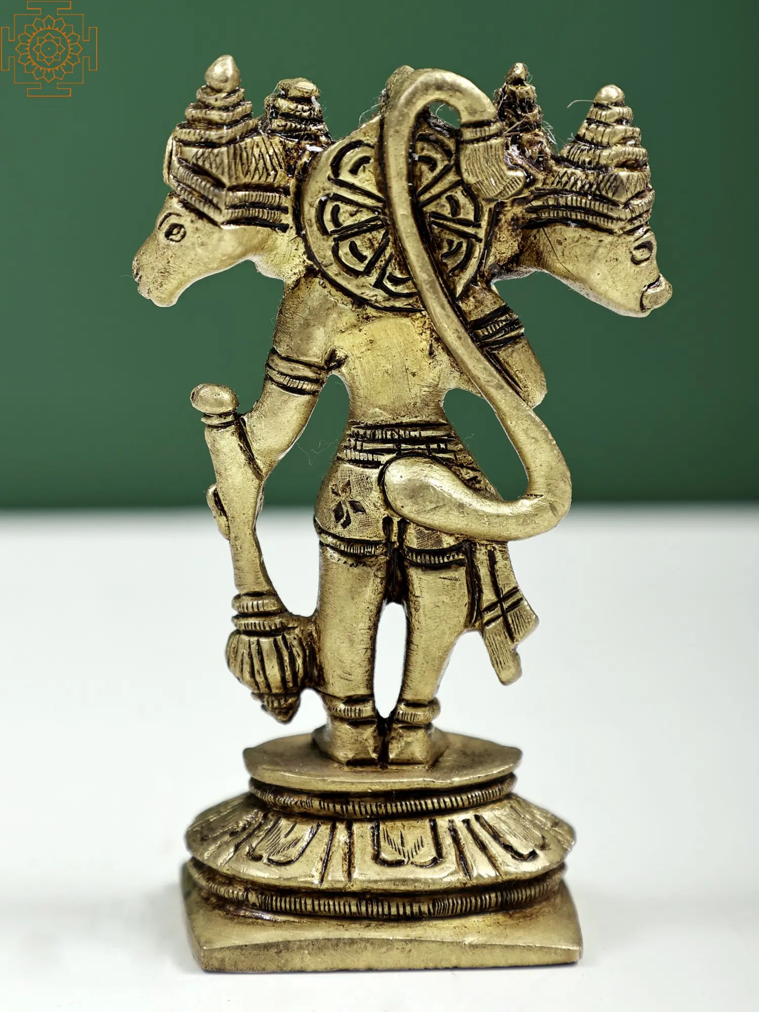 In Hindu tradition, Panchamukhi Hanuman embodies five faces symbolising various aspects of “Lord Hanuman”. With a central face of Hanuman, the other faces are Hayagriva (Knowledge), Narasimha (Courage), Garuda (Strength), and Varaha (Boar form). This unique form signifies his role as a divine protector, scholar, and servant of Lord Rama. Devotees believe that worshipping “Panchamukha Hanuman” grants blessings in different dimensions of life, including Wisdom, Valour, and Spiritual Growth. Cast in brass with precision, this artwork emanates an enchanting aura, and its imposing presence brings blessings of fearlessness and holistic growth.