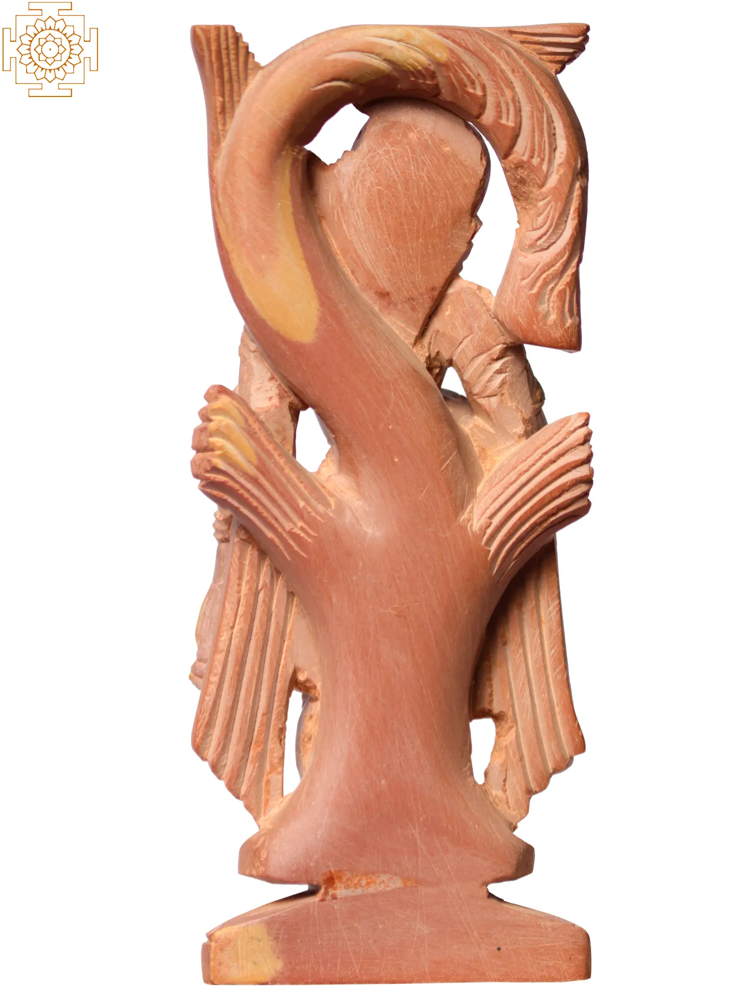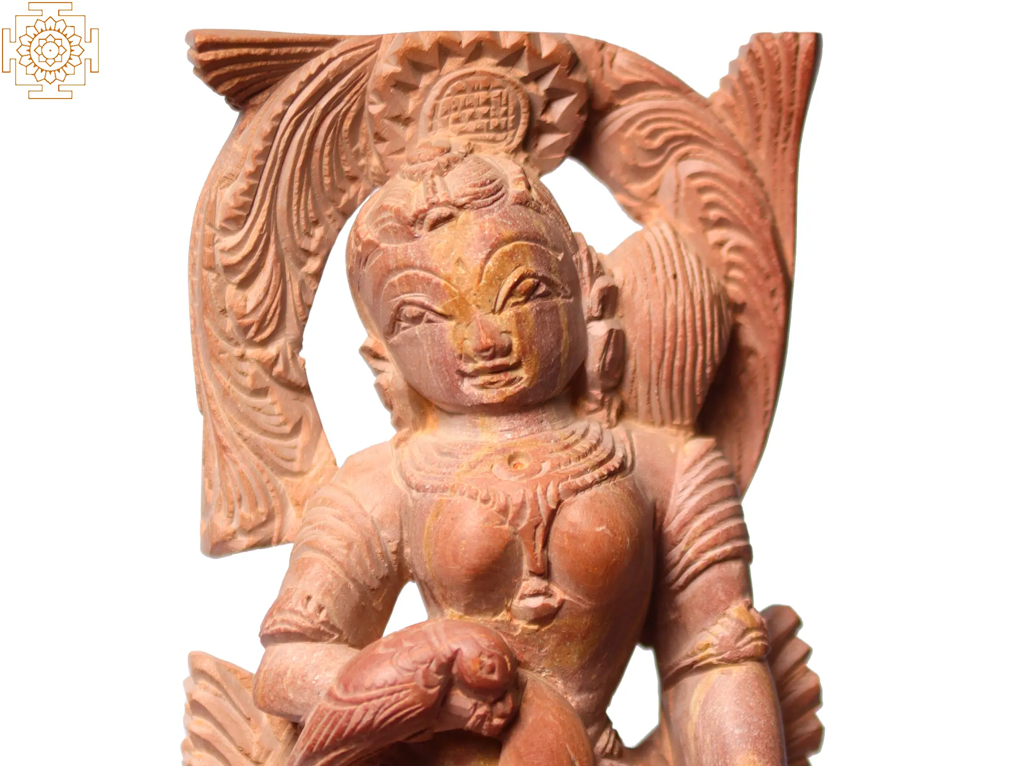 This exquisite statue, carved from a unique pink stone native to the rich artistic traditions of Odisha, offers a glimpse into a world where divinity and nature intertwine. The delicate artistry captures a serene feminine form, radiating an aura of gentle power and timeless beauty. The sculptor's skilled hands have brought forth a captivating figure, adorned with intricate jewelry and flowing garments, each detail whispering stories of ancient craftsmanship and devotion. The figure cradles a parrot, a symbol often associated with devotion, communication, and the divine messenger in many cultures. In Hindu mythology, parrots are sometimes depicted as companions to deities, particularly those associated with love and beauty, like Kamadeva, the god of love, or Radha, the beloved consort of Lord Krishna. The parrot's presence here adds a layer of symbolism, suggesting a connection to the natural world and the power of unspoken language, perhaps even a divine confidante sharing secrets or blessings. The posture of the statue is one of graceful poise, with a gentle tilt of the head and a serene expression that draws the viewer into contemplation. The elaborate headdress and the sweeping decorative elements behind the figure further enhance its ethereal quality, suggesting a celestial being or a revered muse. The fine details in the carving, from the texture of the fabric to the lifelike rendering of the parrot's feathers, are a testament to the enduring legacy of Odishan stone carving, a craft passed down through generations, imbuing each piece with soul and character. This statue is more than just a decorative object; it is a piece of living history, a tangible connection to the spiritual and artistic heritage of India. It embodies the profound respect for nature and the divine that has shaped Indian culture for millennia. Whether placed in a meditation space, a quiet corner of your home, or as a unique centerpiece, this pink stone carving will undoubtedly bring an element of refined elegance, a touch of the sacred, and the serene beauty of a natural world brought to life through art.