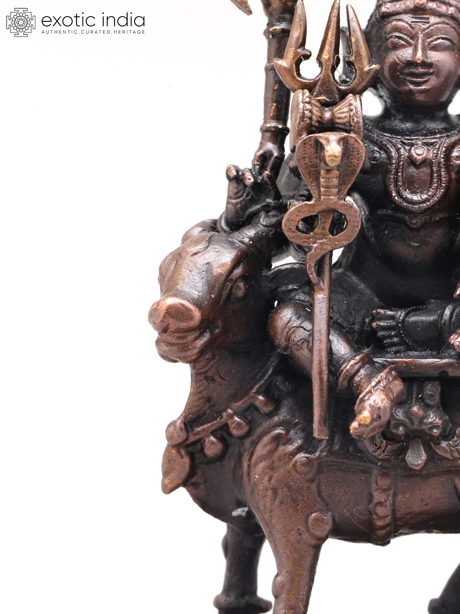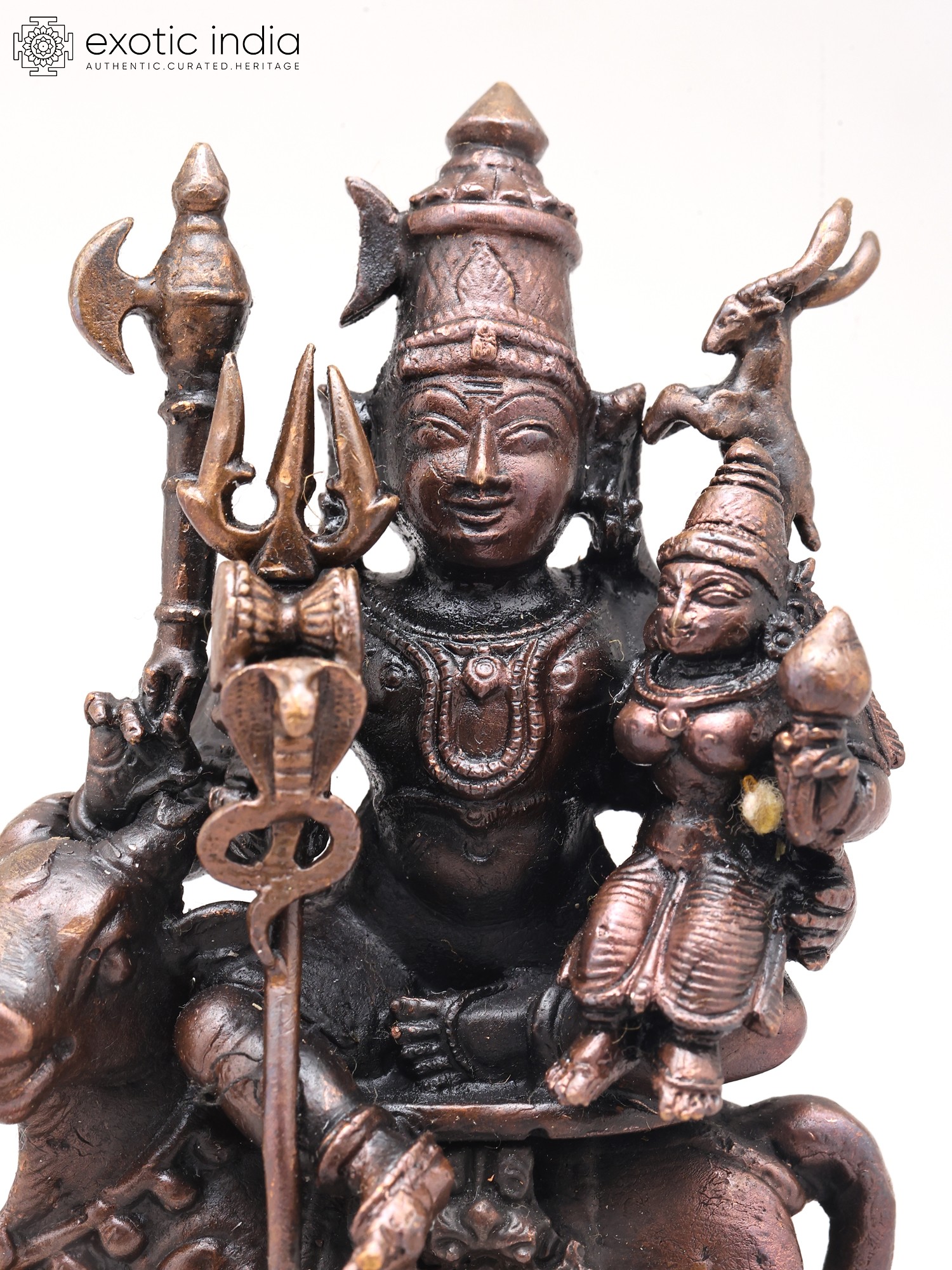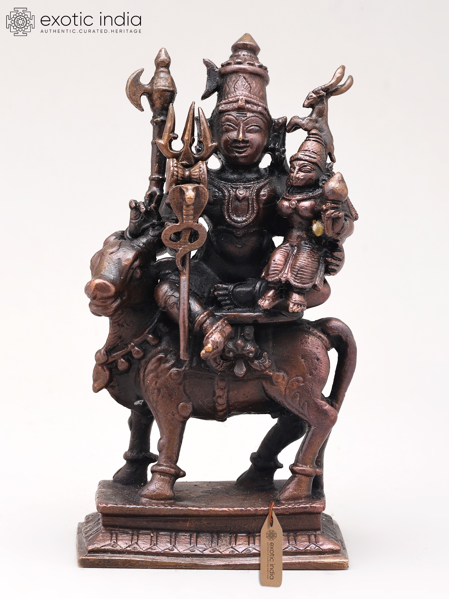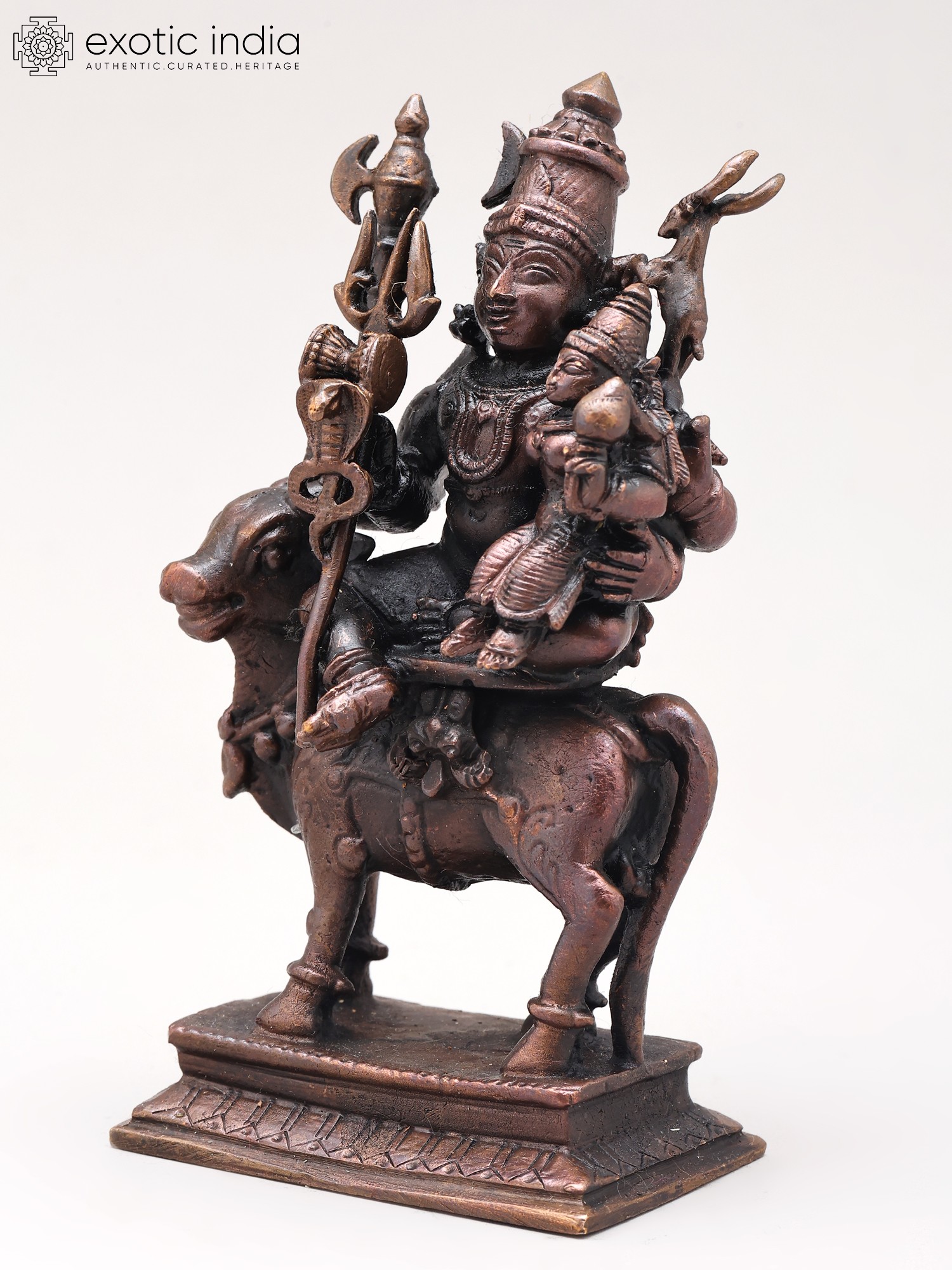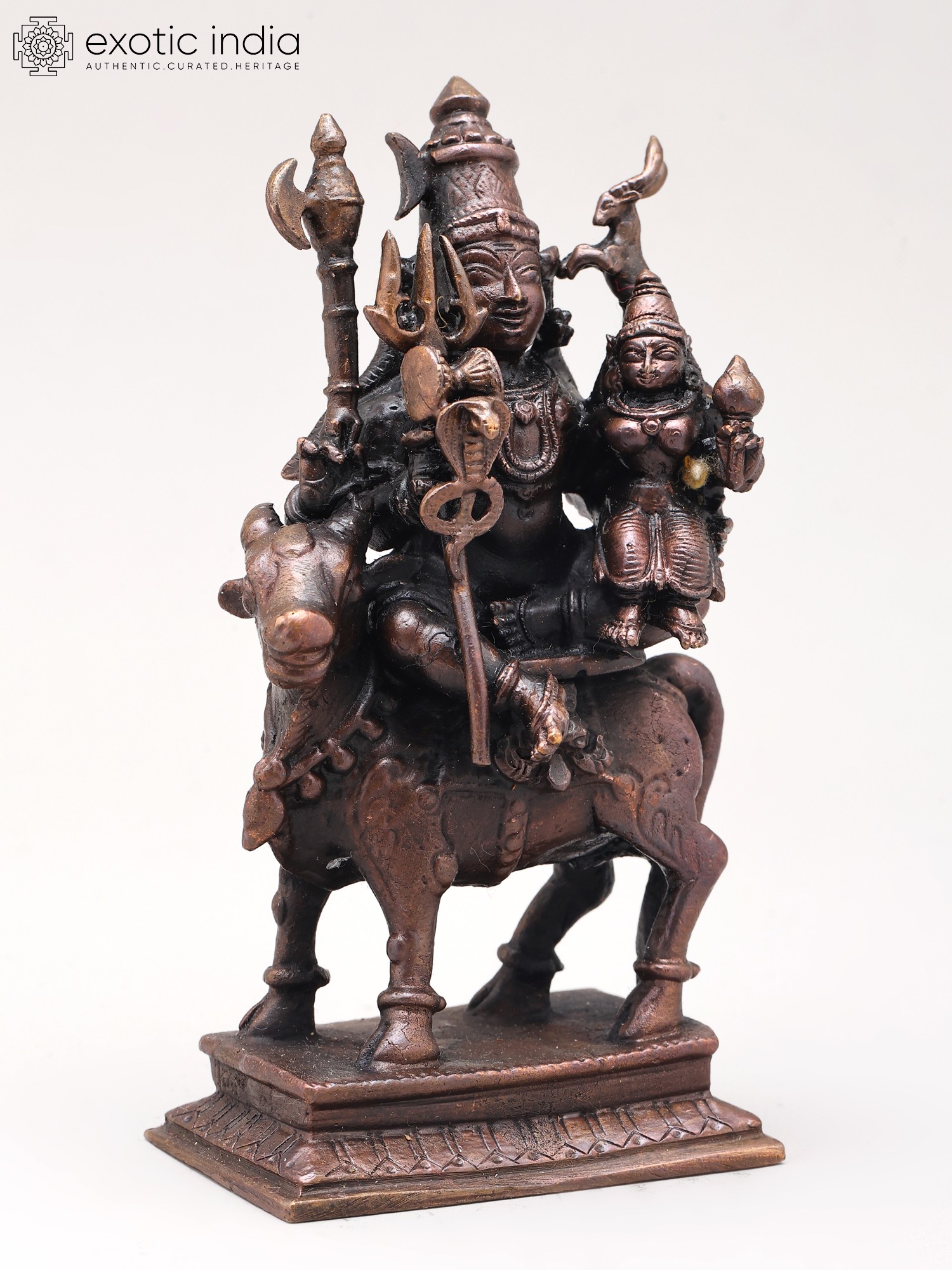 This meticulously crafted statue showcases the exceptional artistry of traditional Indian metalwork. The smooth, rich copper surface reflects light beautifully, enhancing the intricate details of Shiva's flowing robes, Parvati's gentle expression, and Nandi's powerful stance. The small size of the statue makes it ideal for altars, shelves, or meditation spaces, while still retaining the remarkable detail and power of the larger statues. Each piece is individually cast and finished by skilled artisans, ensuring both authenticity and aesthetic excellence.