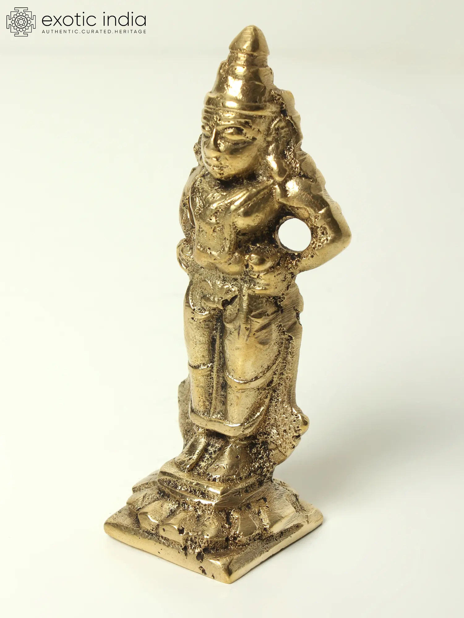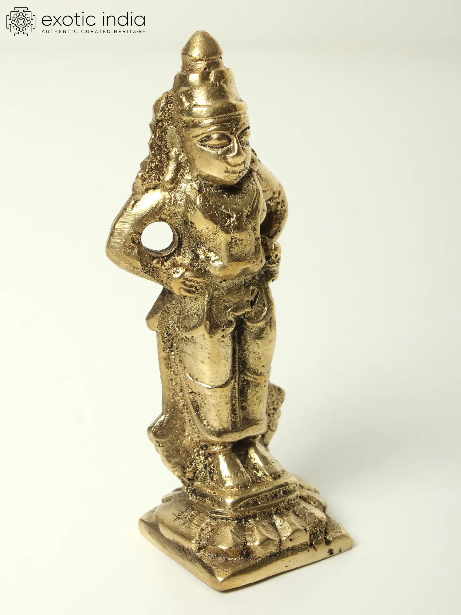 Lord Krishna, poised on a divine podium, commands attention. His hands rest upon his waist, radiating an aura of confidence and serenity. Adorned in regal attire that shimmers like the midnight sky, his presence is a celestial dance frozen in time. This brass statue embodies Krishna's transcendence, symbolising his role as the Supreme Being, the cosmic conductor, and the divine charioteer of life’s grand narrative. In this eternal stance, he teaches us the art of embracing life with grace and embracing challenges with unwavering poise. This artwork is a reminder that, like Krishna, we can conquer the world with the power of love and wisdom.