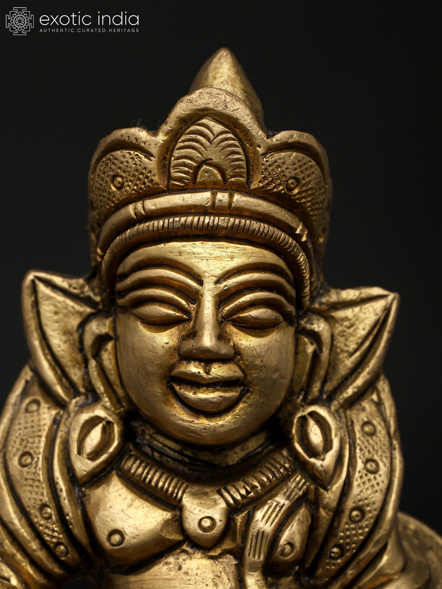 5'' Hindu God Kubera With Oil Lamp | Brass