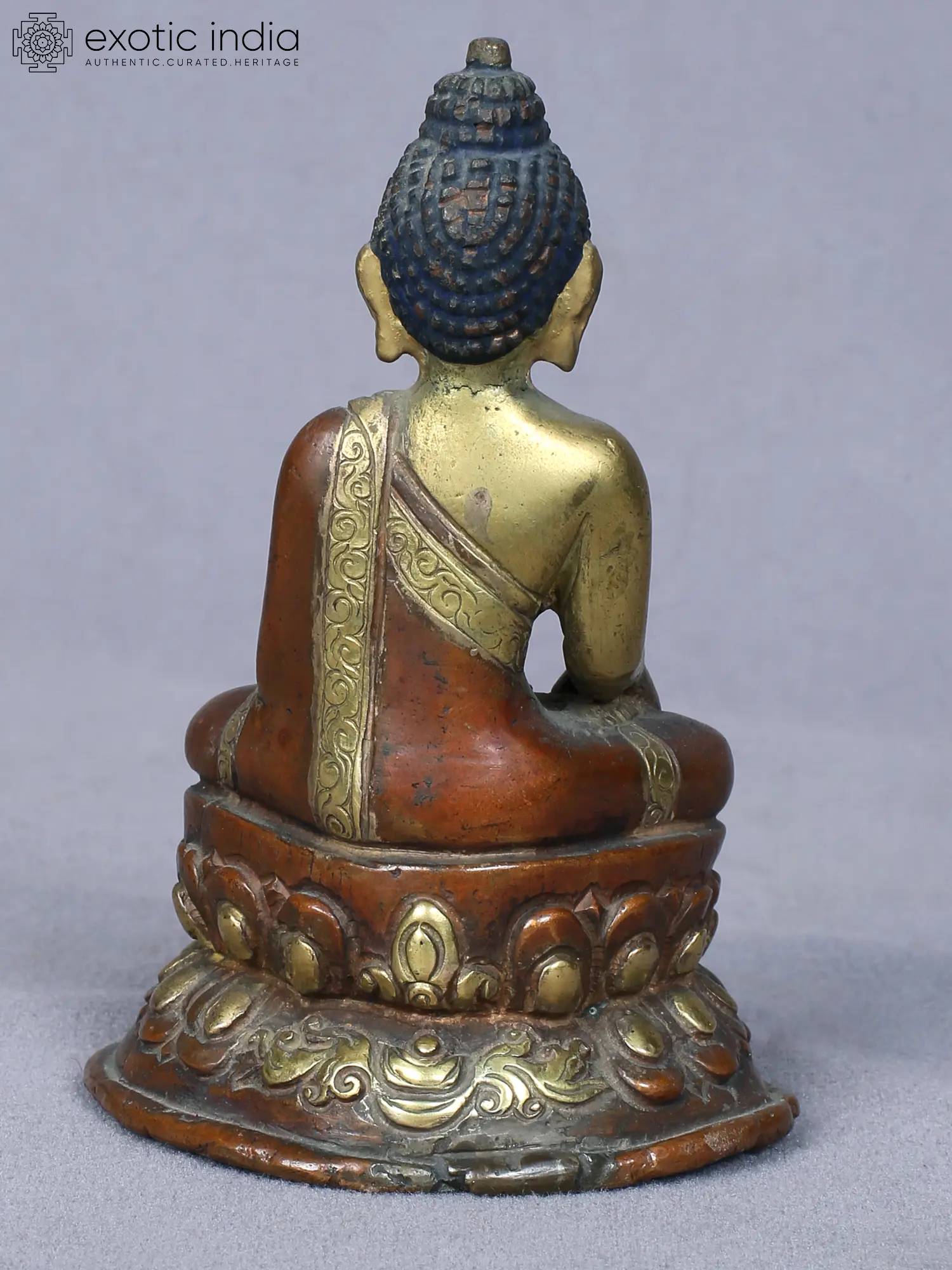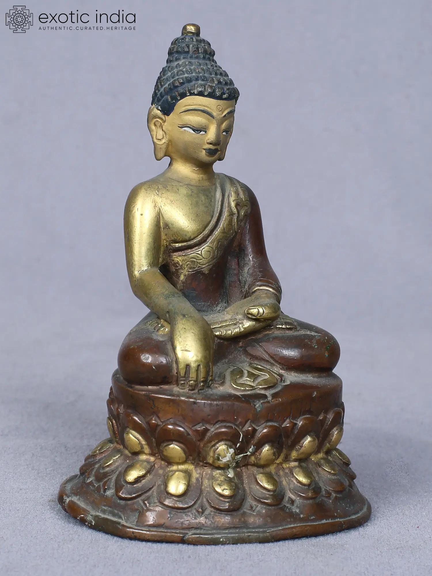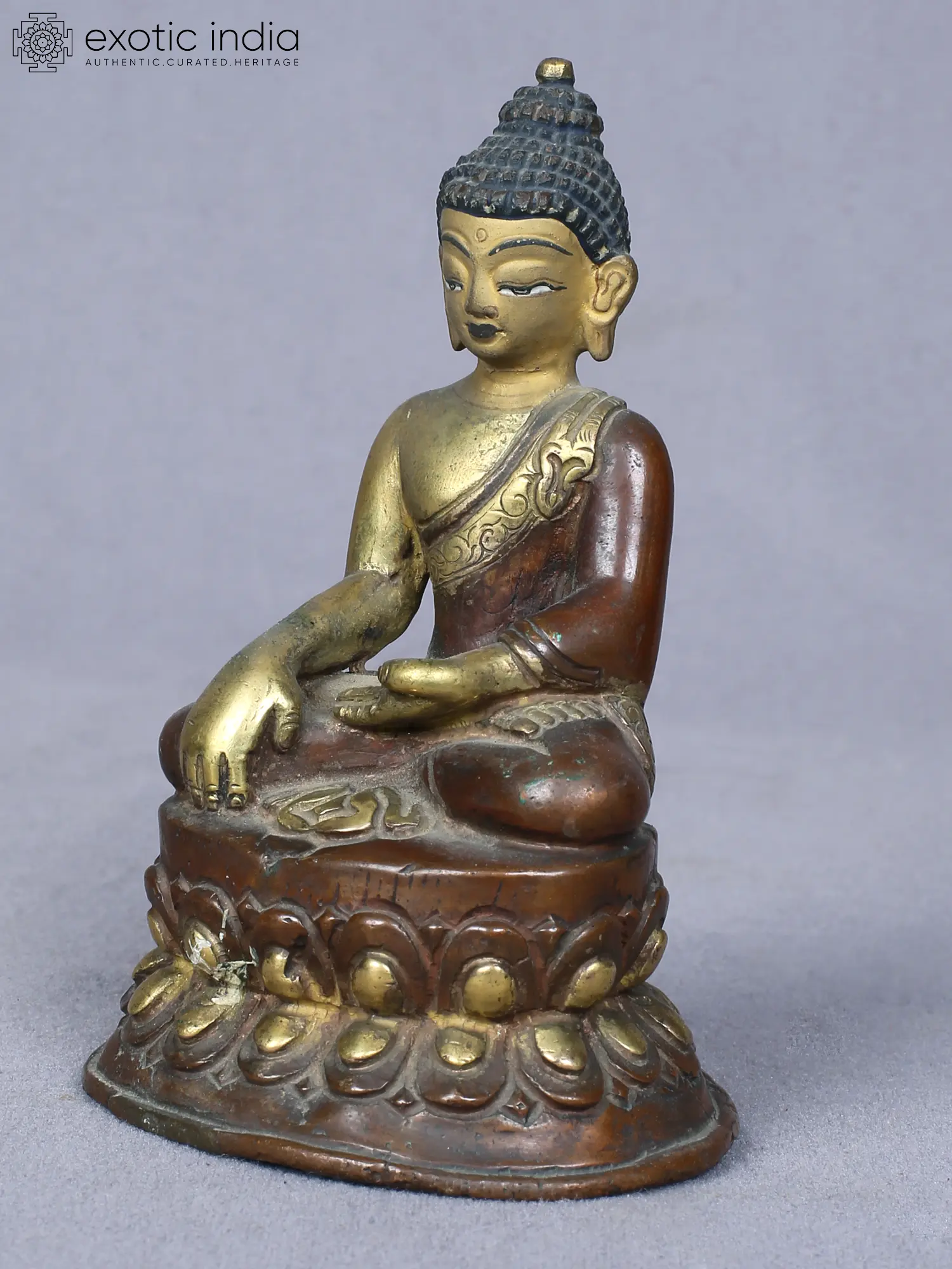 4" Small Shakyamuni Buddha Idol from Nepal | Copper Statue Gilded with Gold