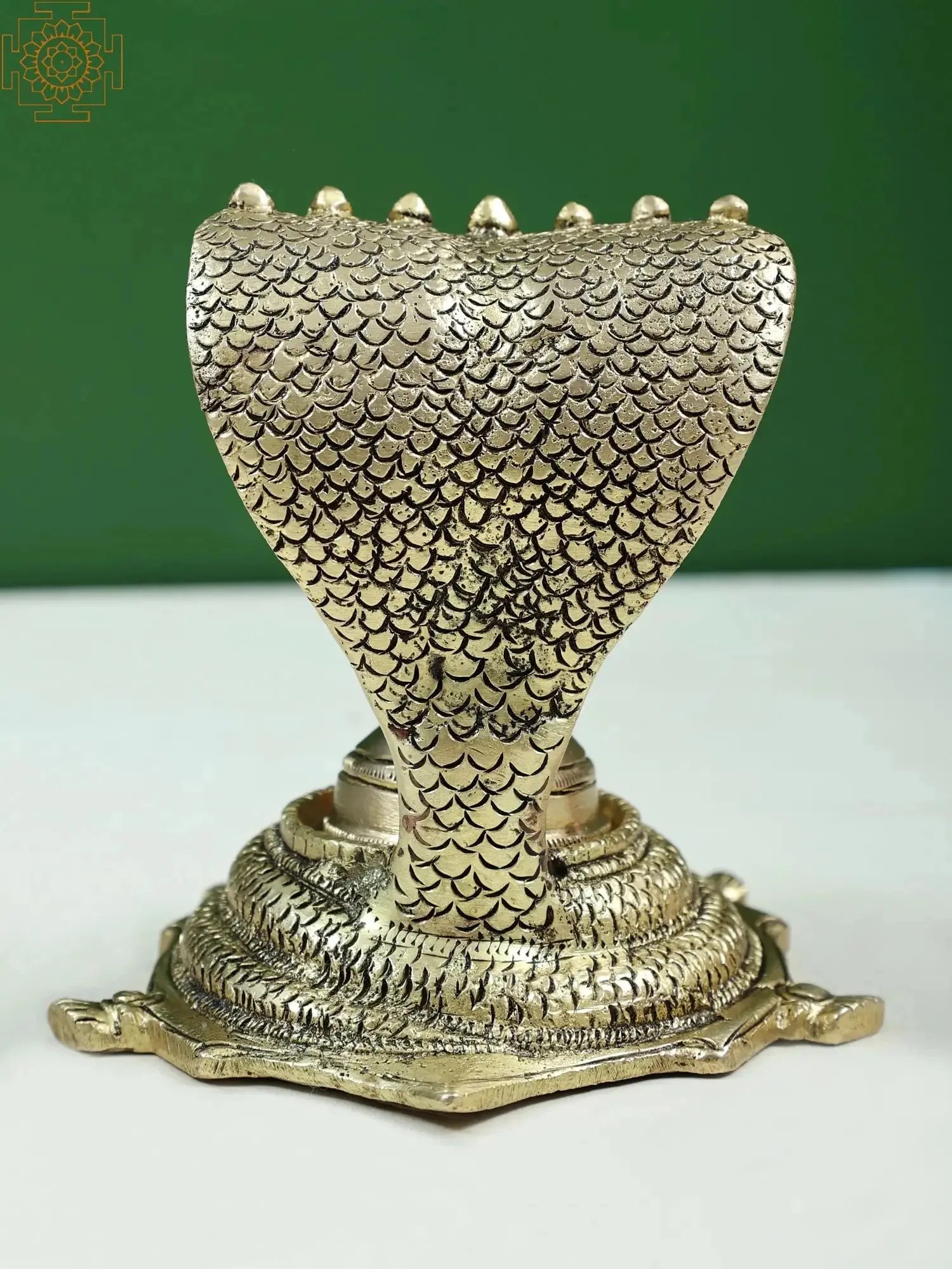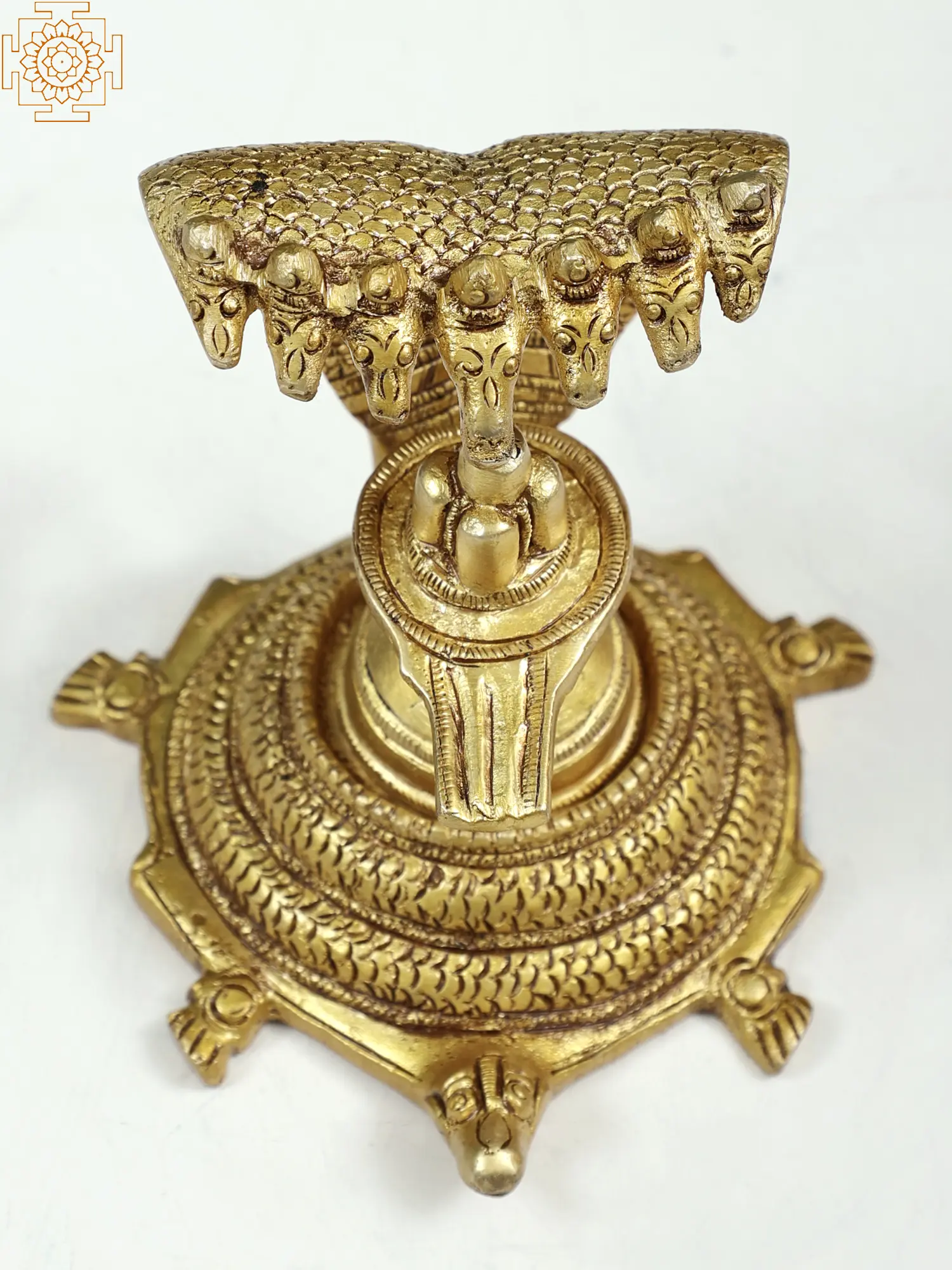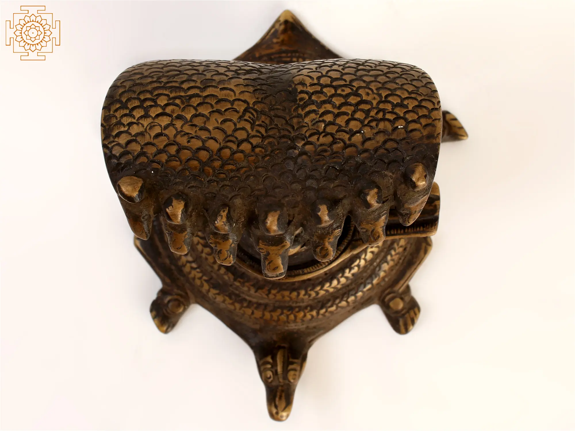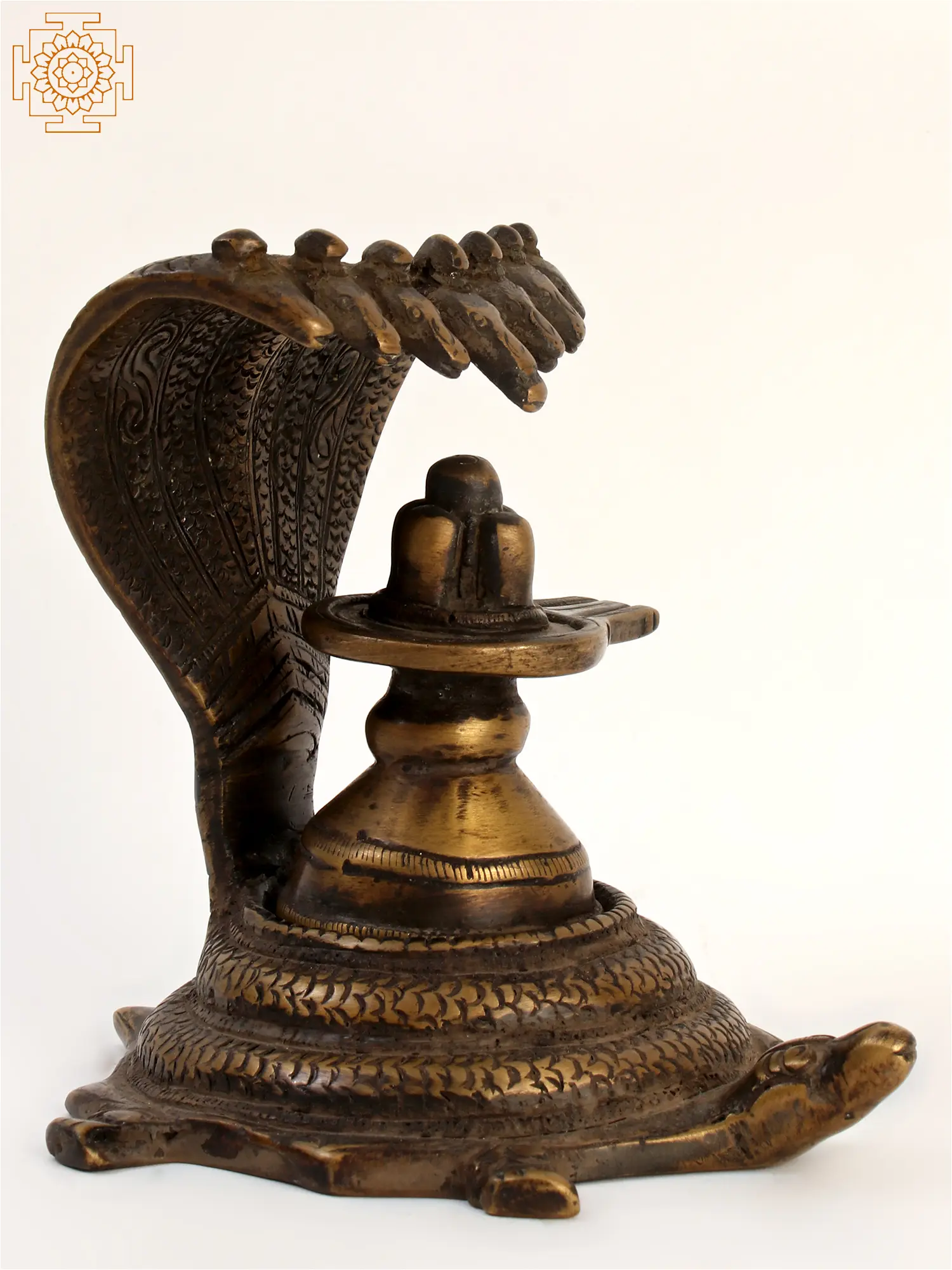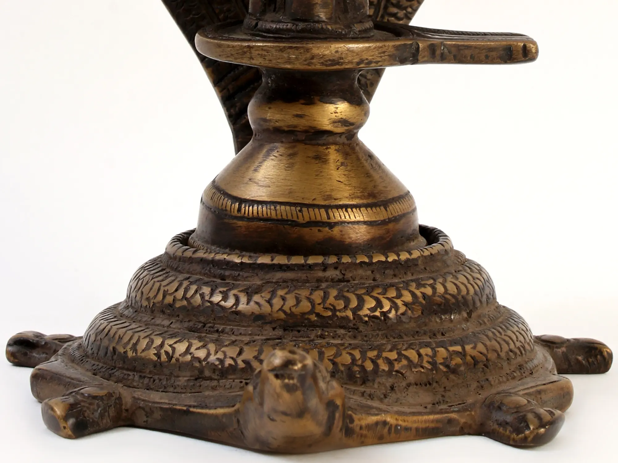 "A stunning and eye-catching shiva linga, ensconced on a turtle pedestal, narrates the tale of patience and stability”. The turtle, an emblem of steady perseverance, carries the weight of divinity. The Shiva linga, with its towering presence, stands as a tribute to Lord Shiva's cosmic dance. It signifies the interconnectedness of the microcosm and the macrocosm. Water poured over it signifies purification, echoing the rejuvenation of the soul. This brass masterpiece, an embodiment of resilience, motivates us to embrace change while rooted in our steadfast essence.