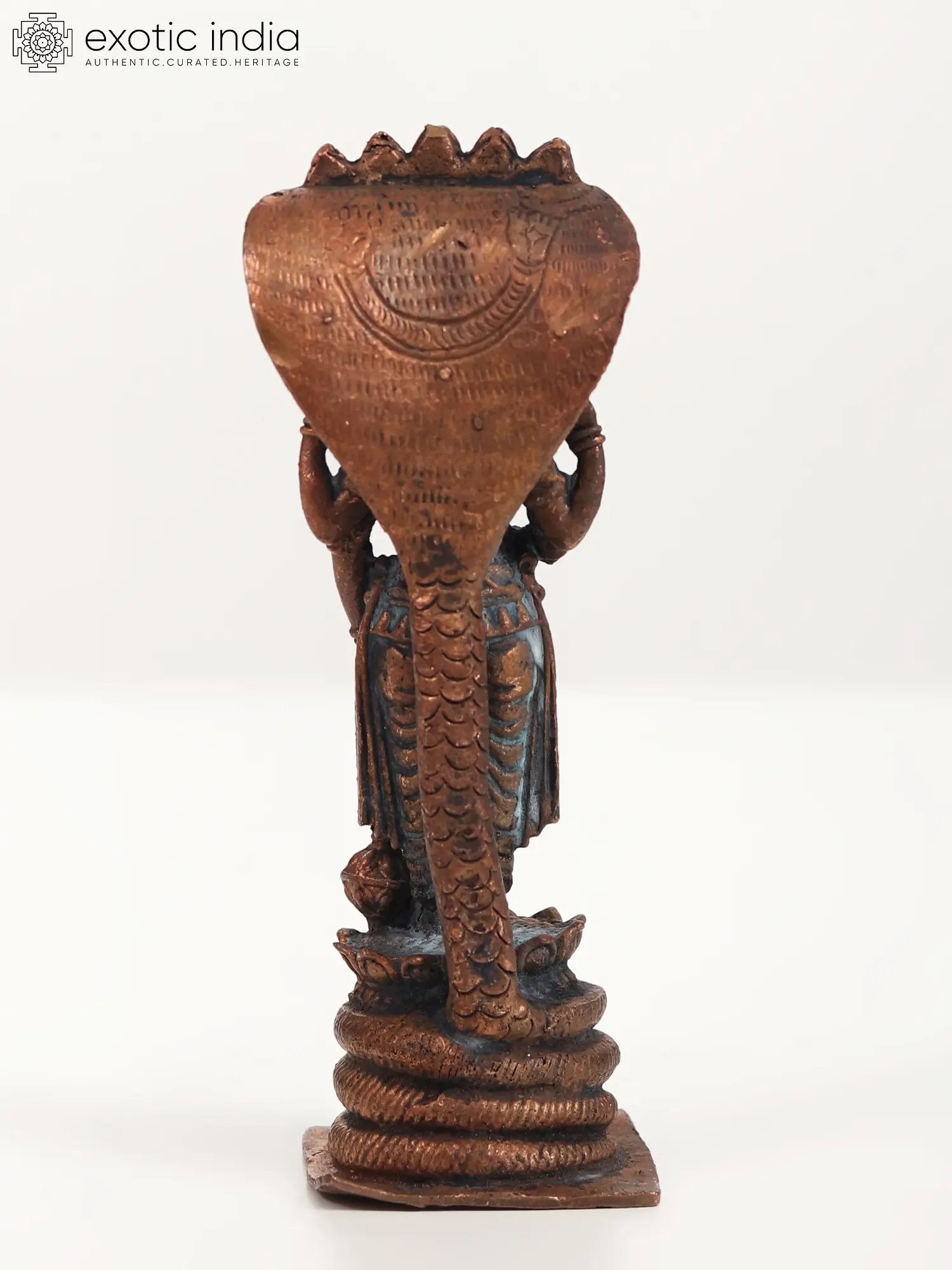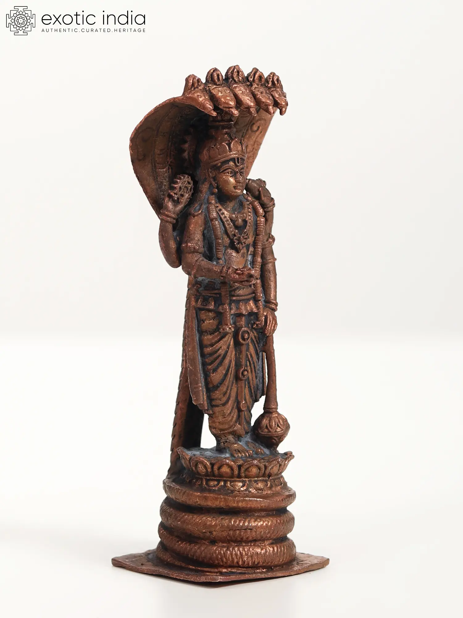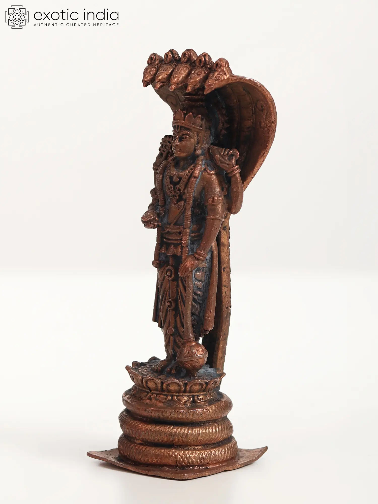 4" Small Standing Lord Vishnu Idol with Protecting Sheshnag | Copper Statue
