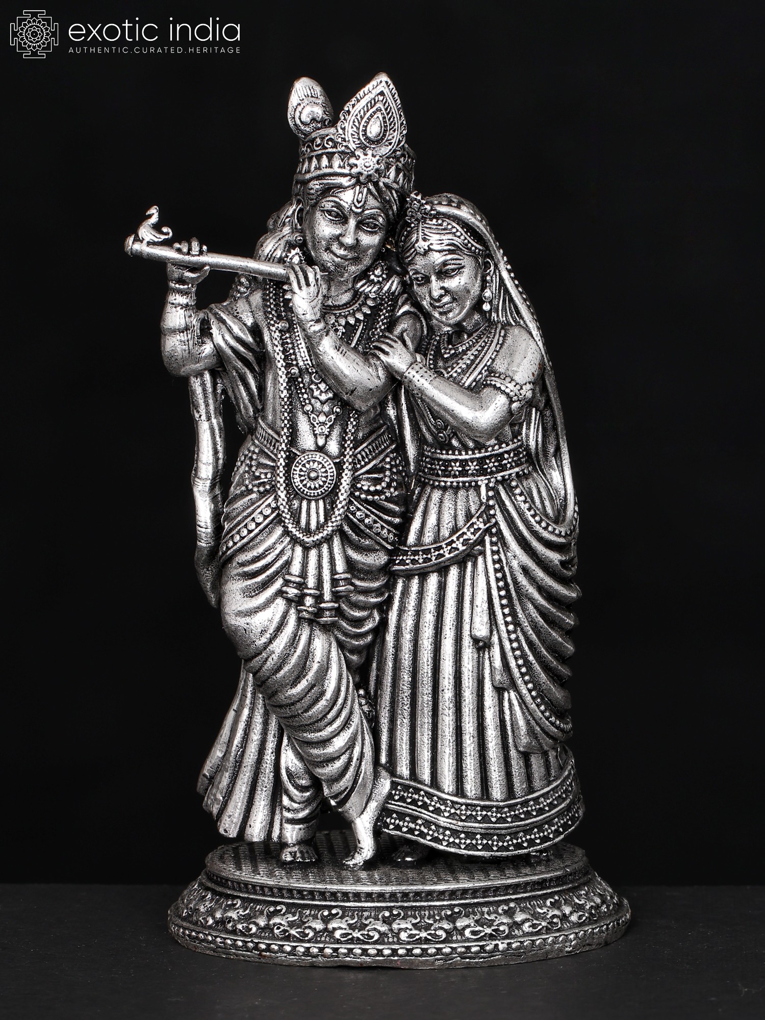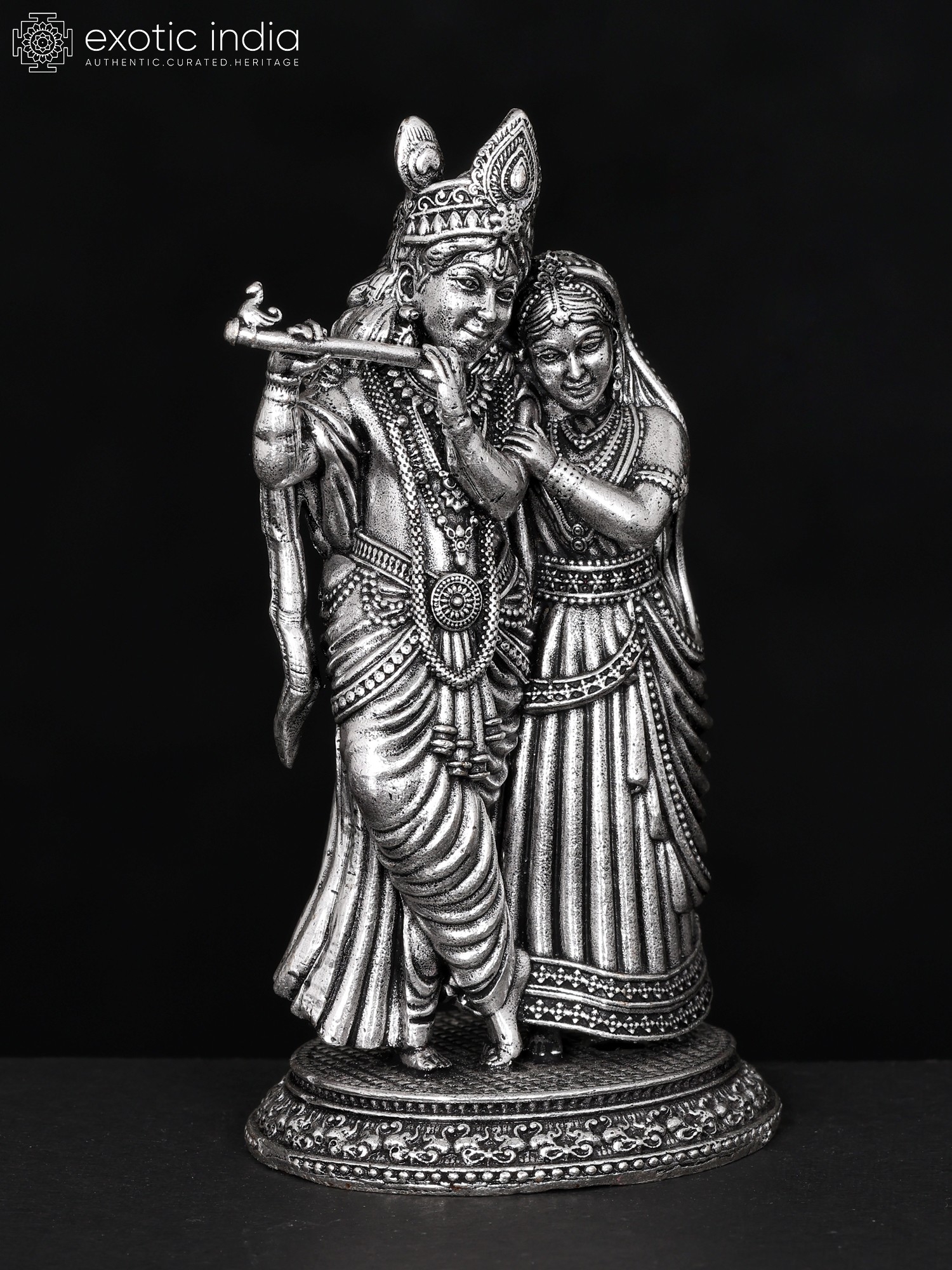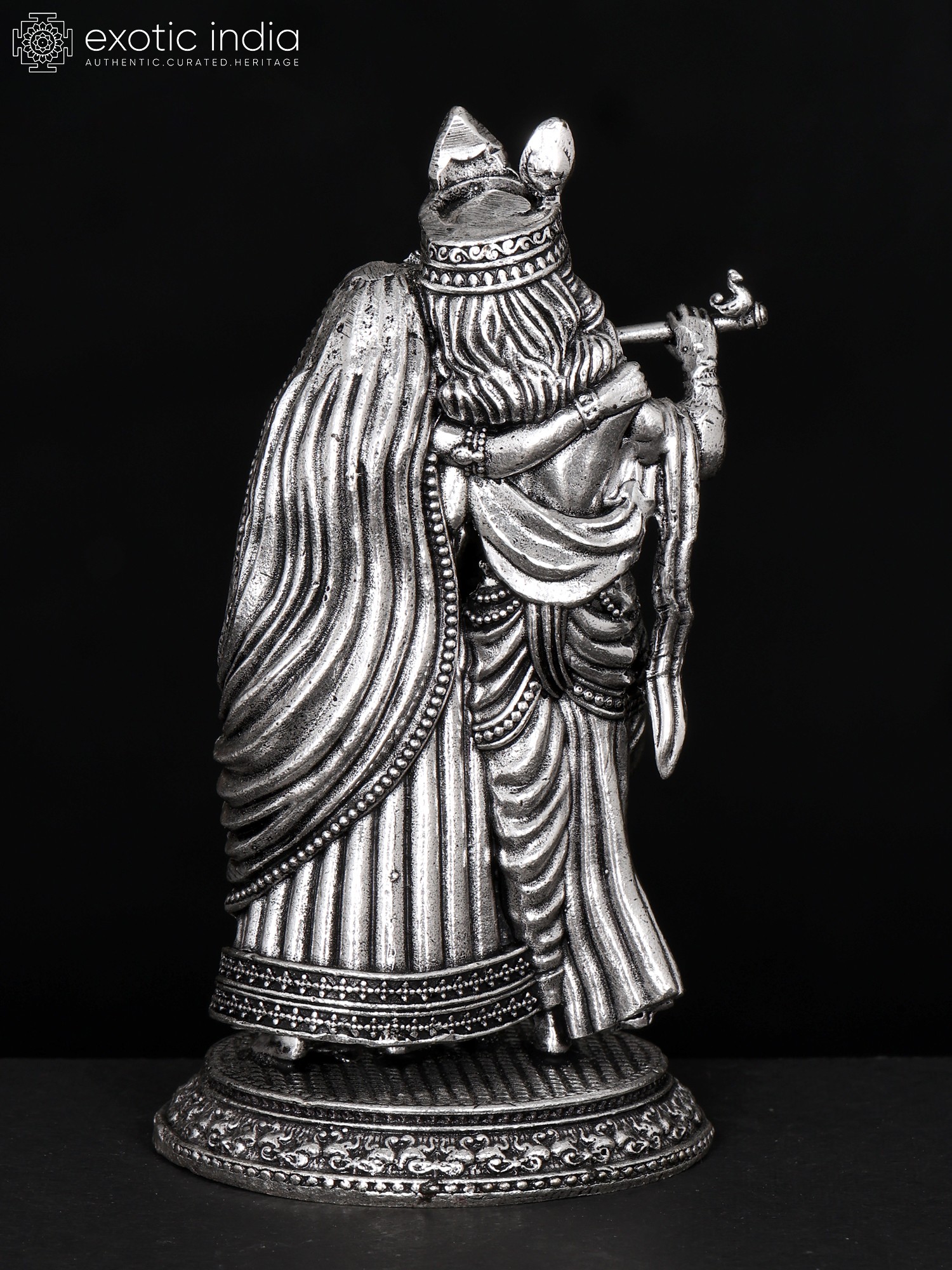 4" Small Superfine Standing Radha Krishna | Silver Plated Brass Statue