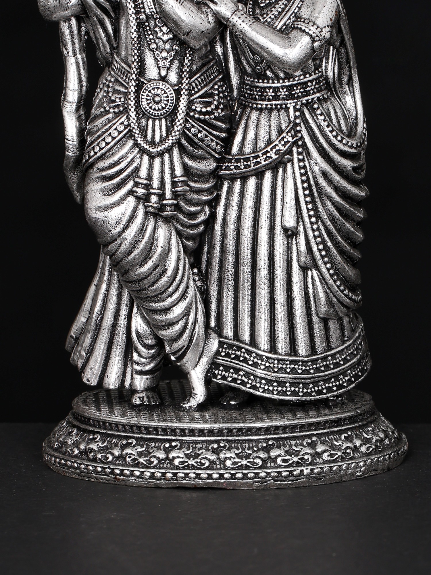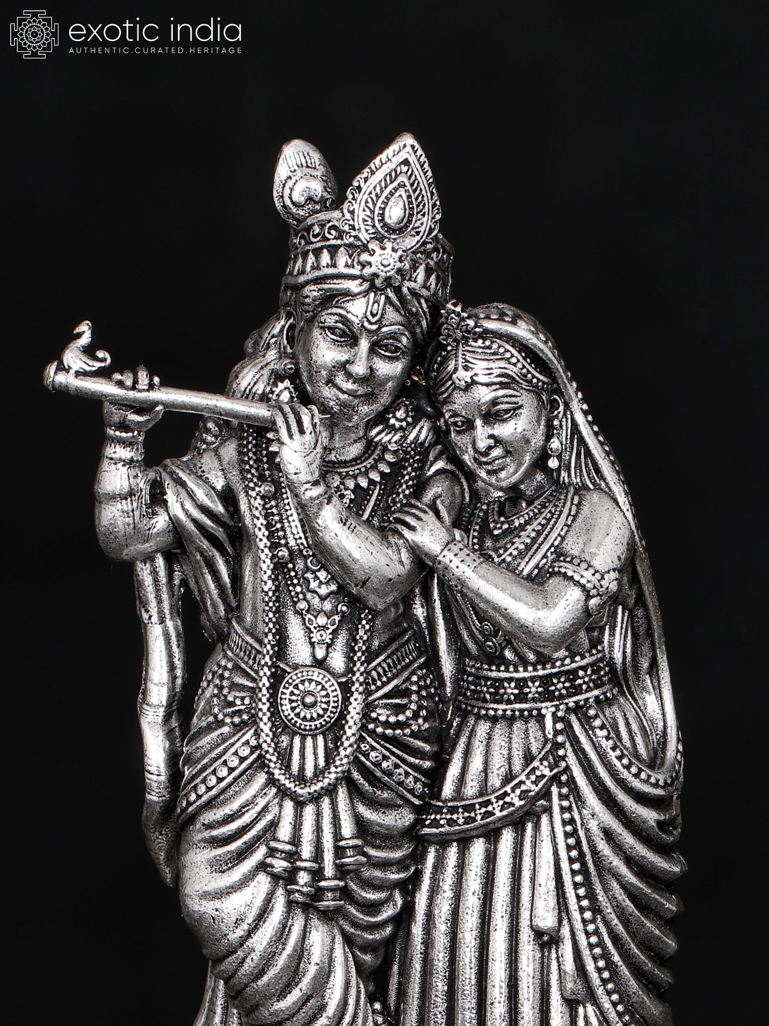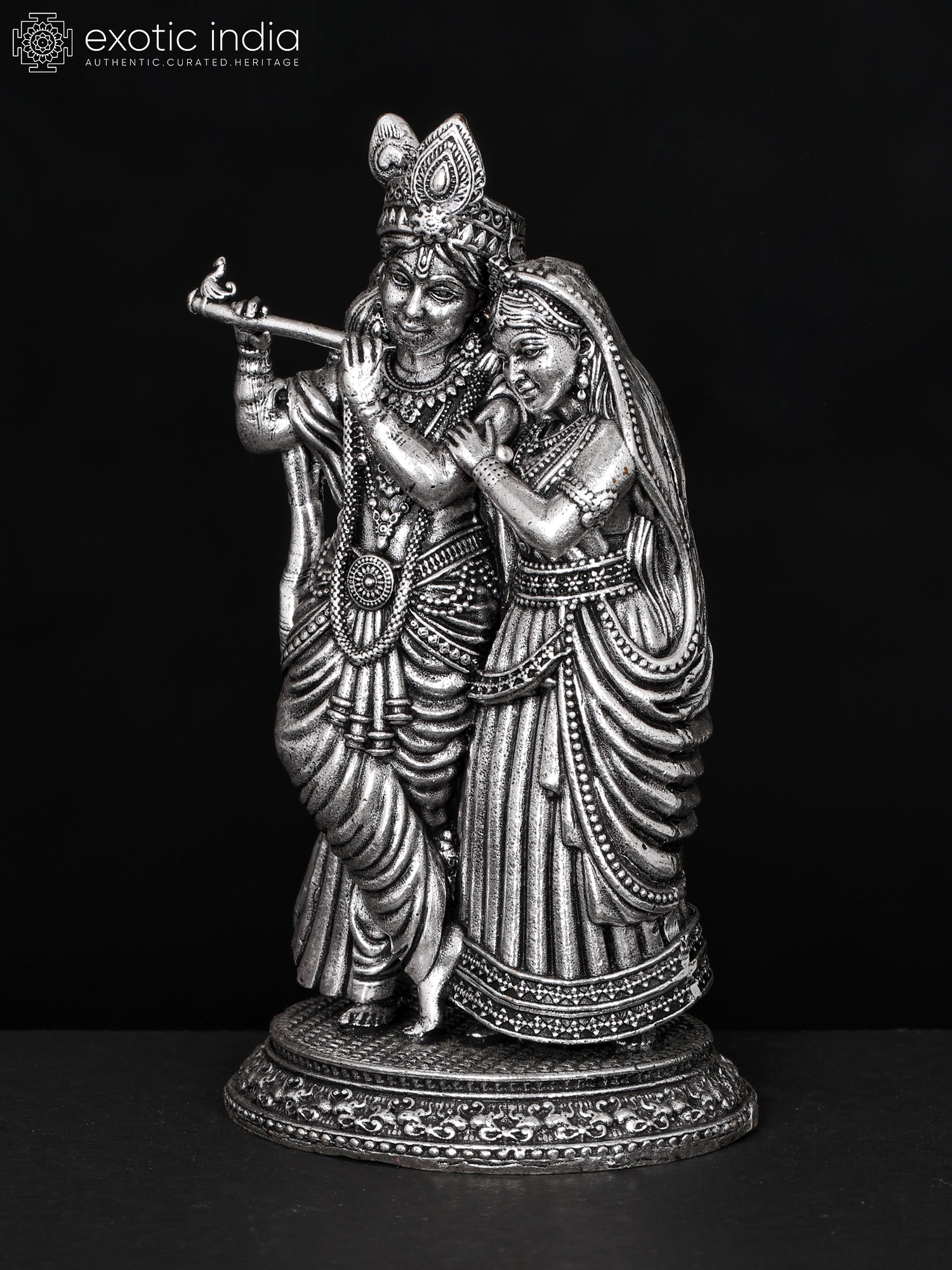 4" Small Superfine Standing Radha Krishna | Silver Plated Brass Statue