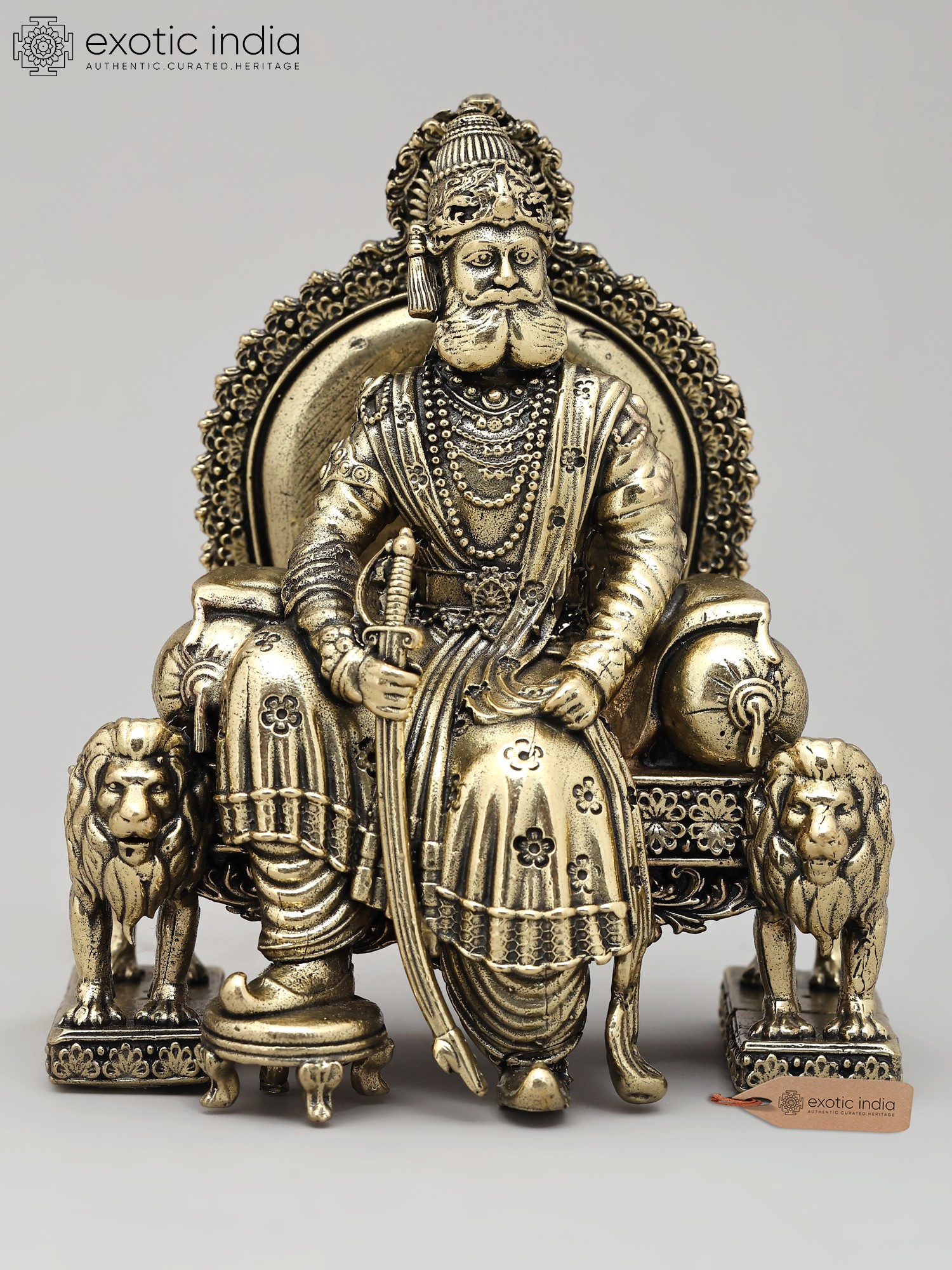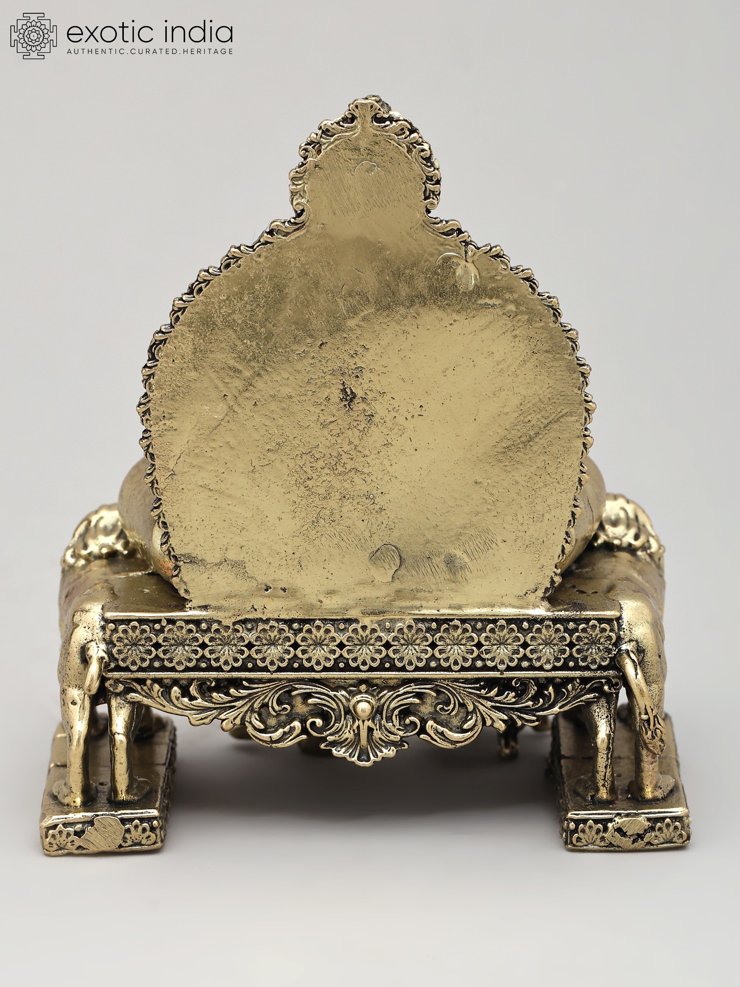 8" Superfine Chaturbhuja Lord Ganapati Holding Modak on Wood Base | Brass Statue
