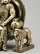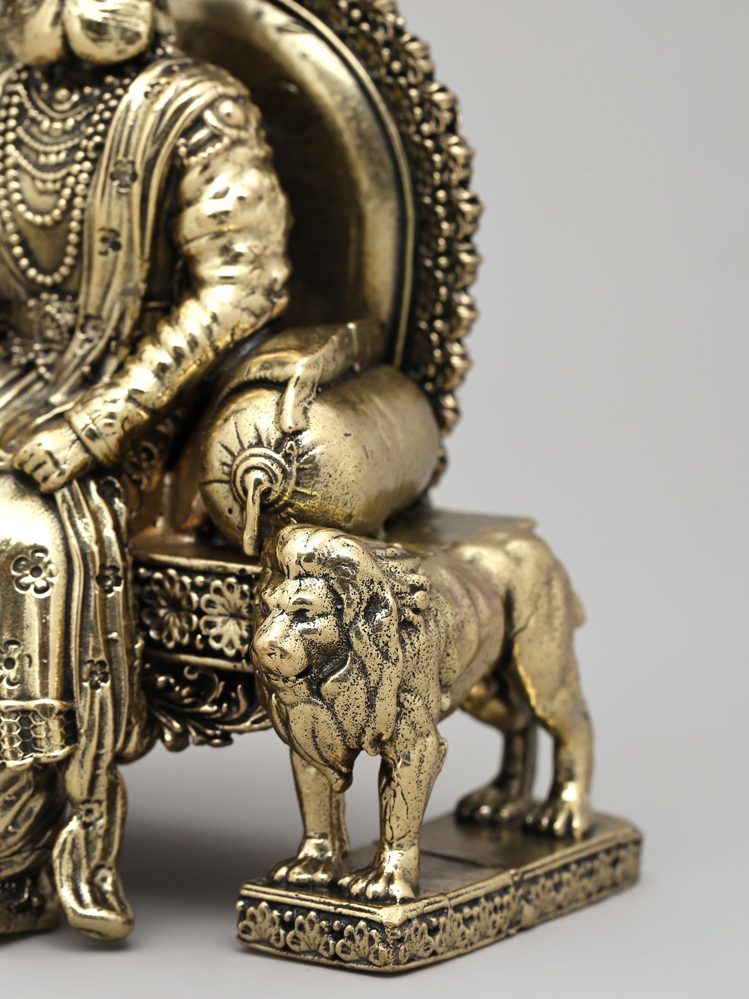 6" Superfine Goddess Kamdhenu Cow and Calf with Goddess Lakshmi Carving on Wood Base | Brass Statue