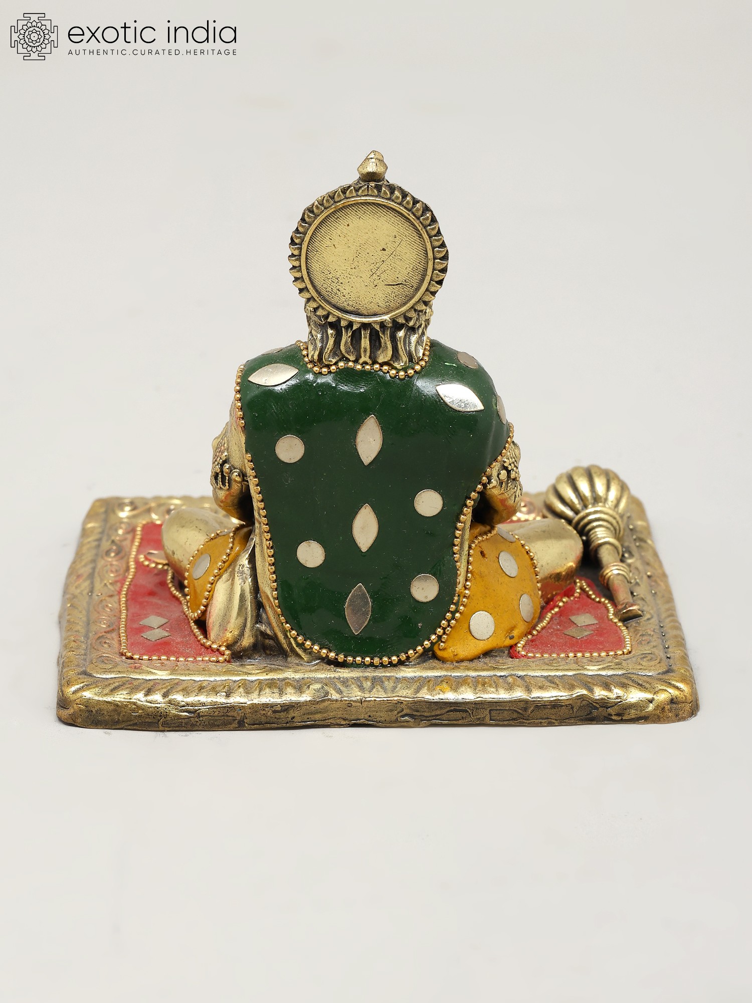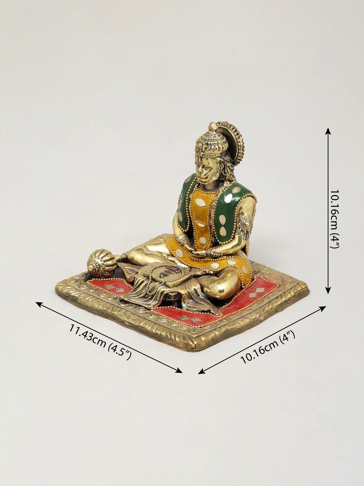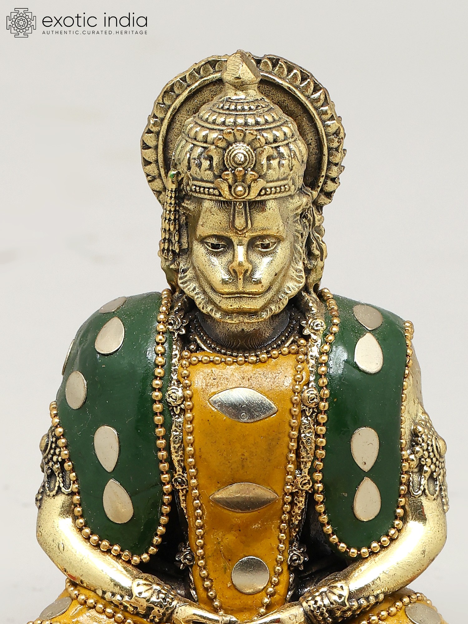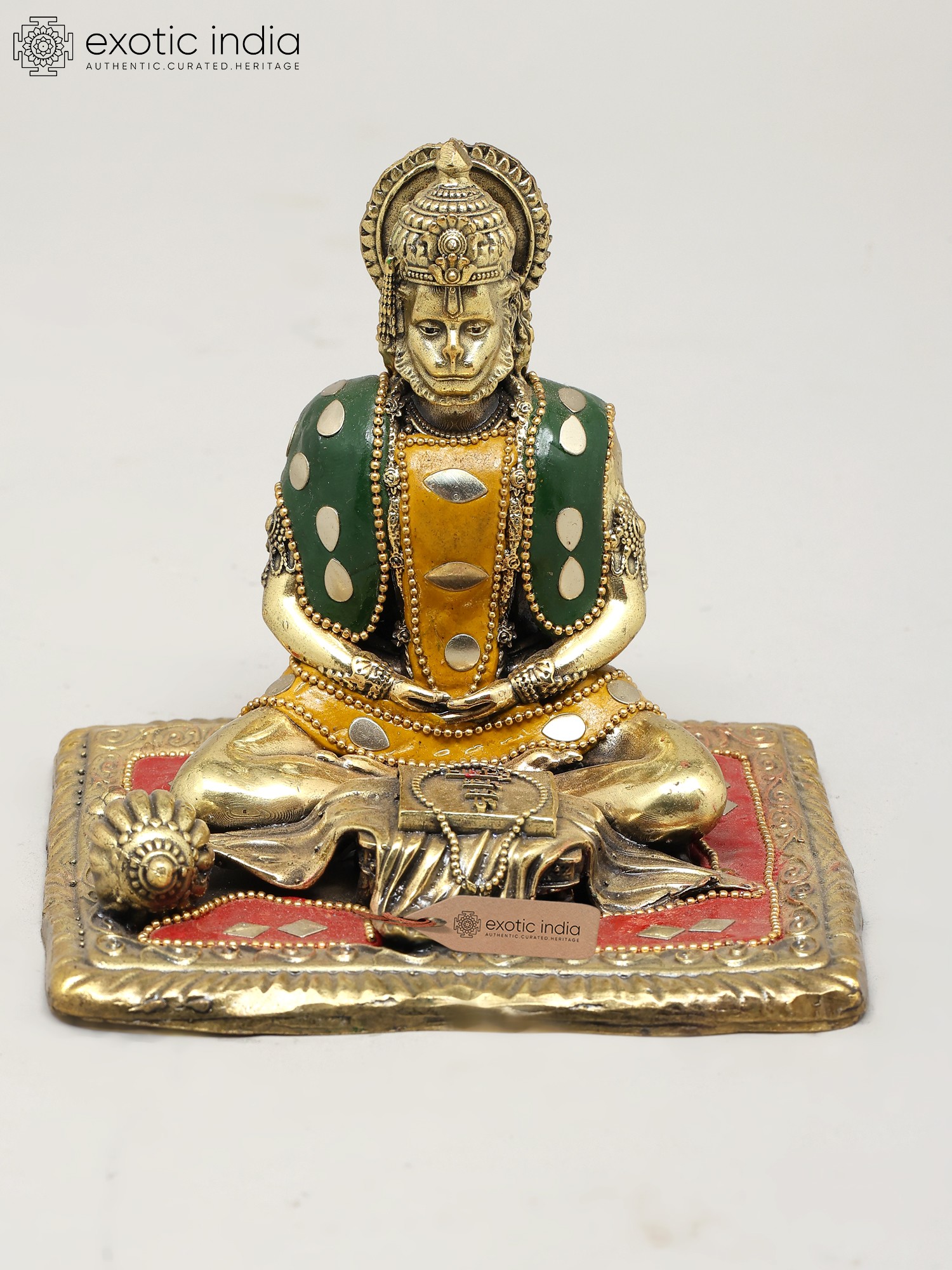 8" Superfine Sitting Lord Hanuman with Dangling Bells | Wood Framed Brass Sculpture | Wall Hanging
