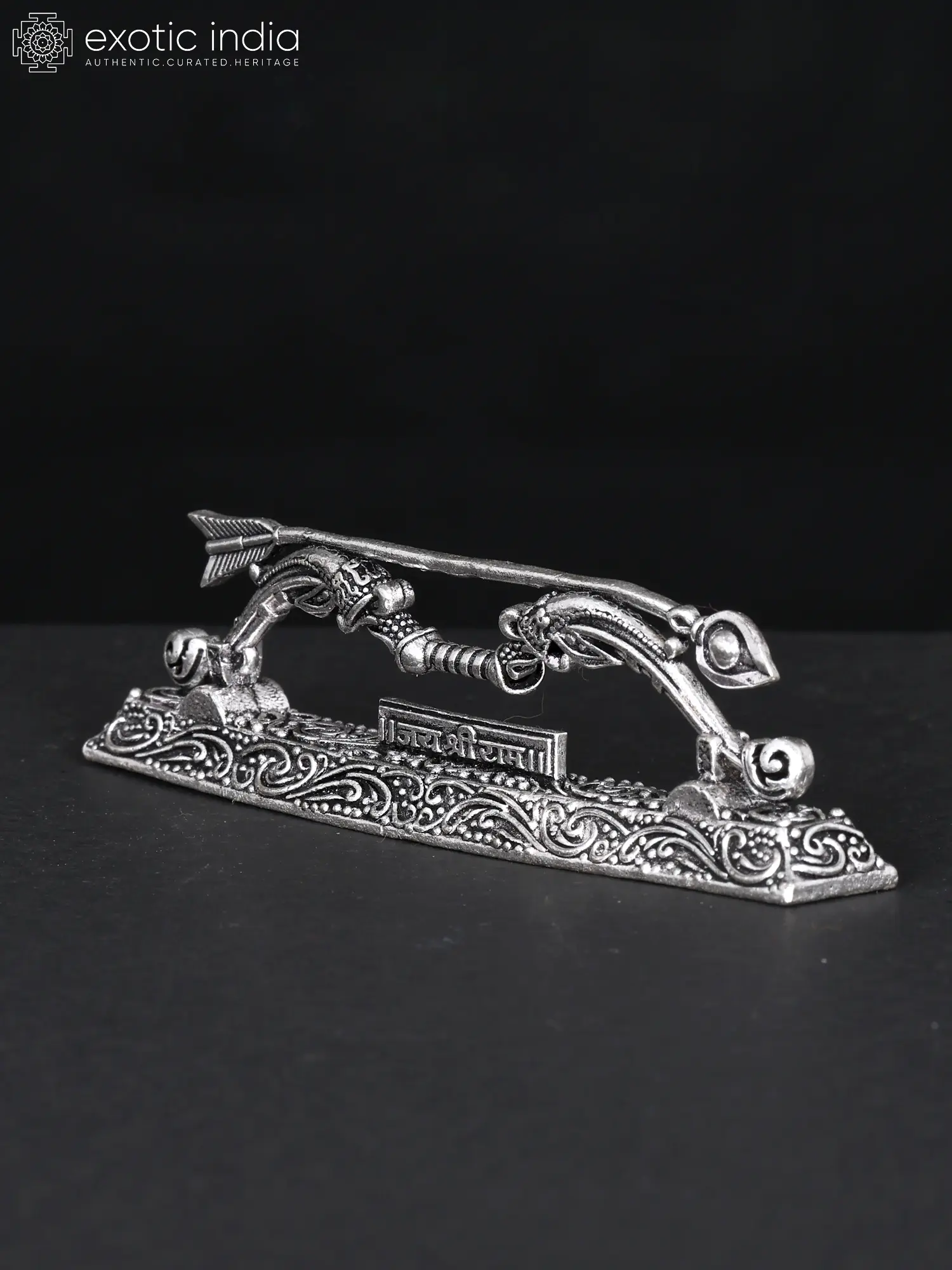 The Dhanush is beautifully balanced on a portable platform, with an arrow and inscription of “Jai Sri Rama”, a sacred addition to your home shrine of Bhagawan Rama.
