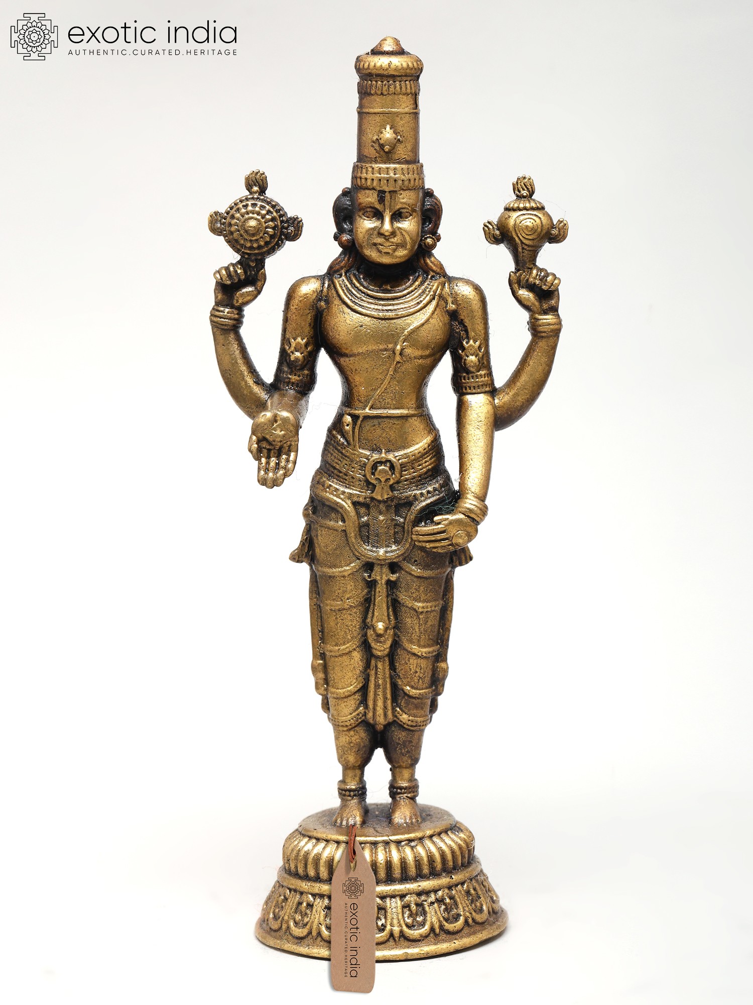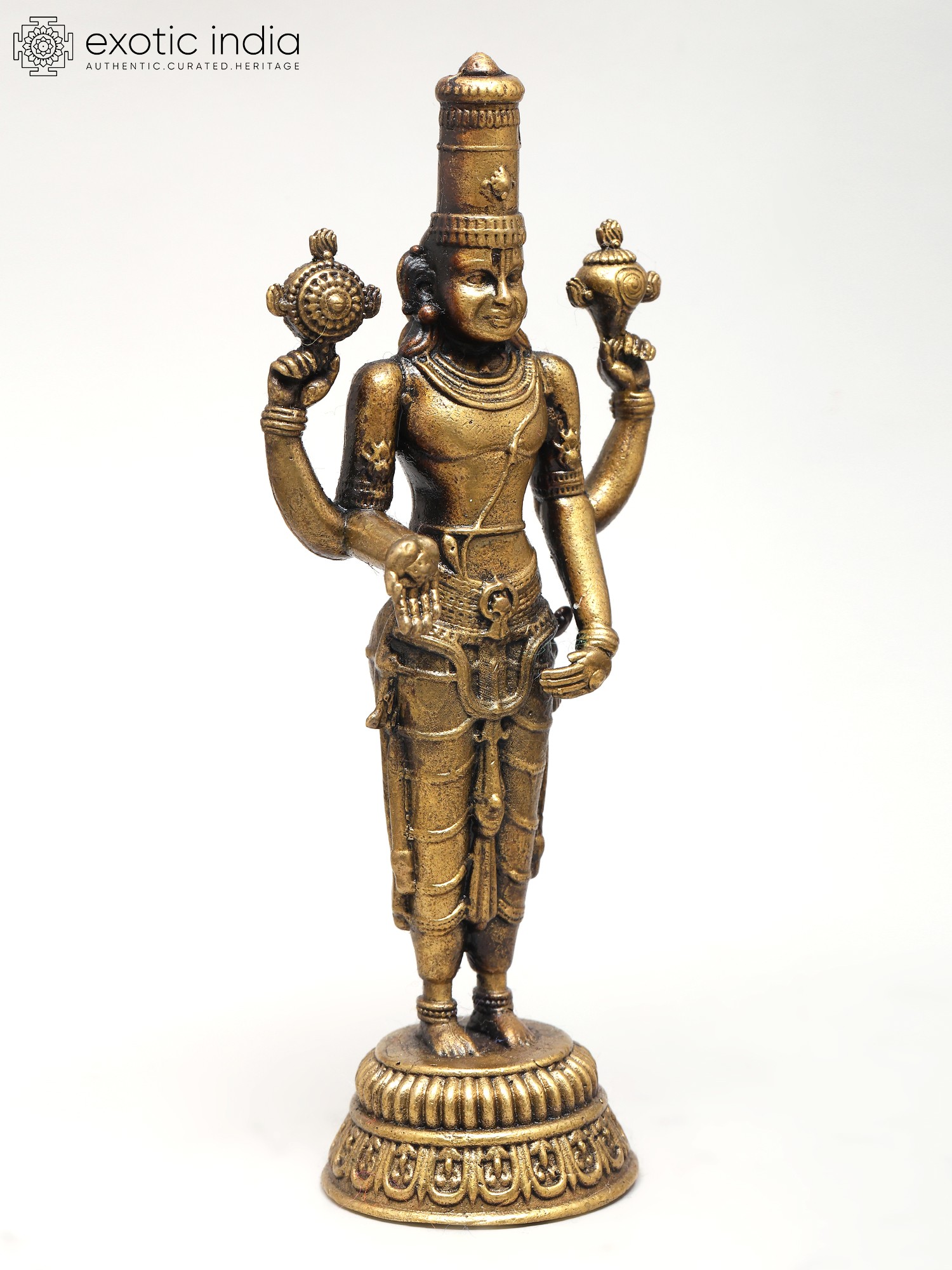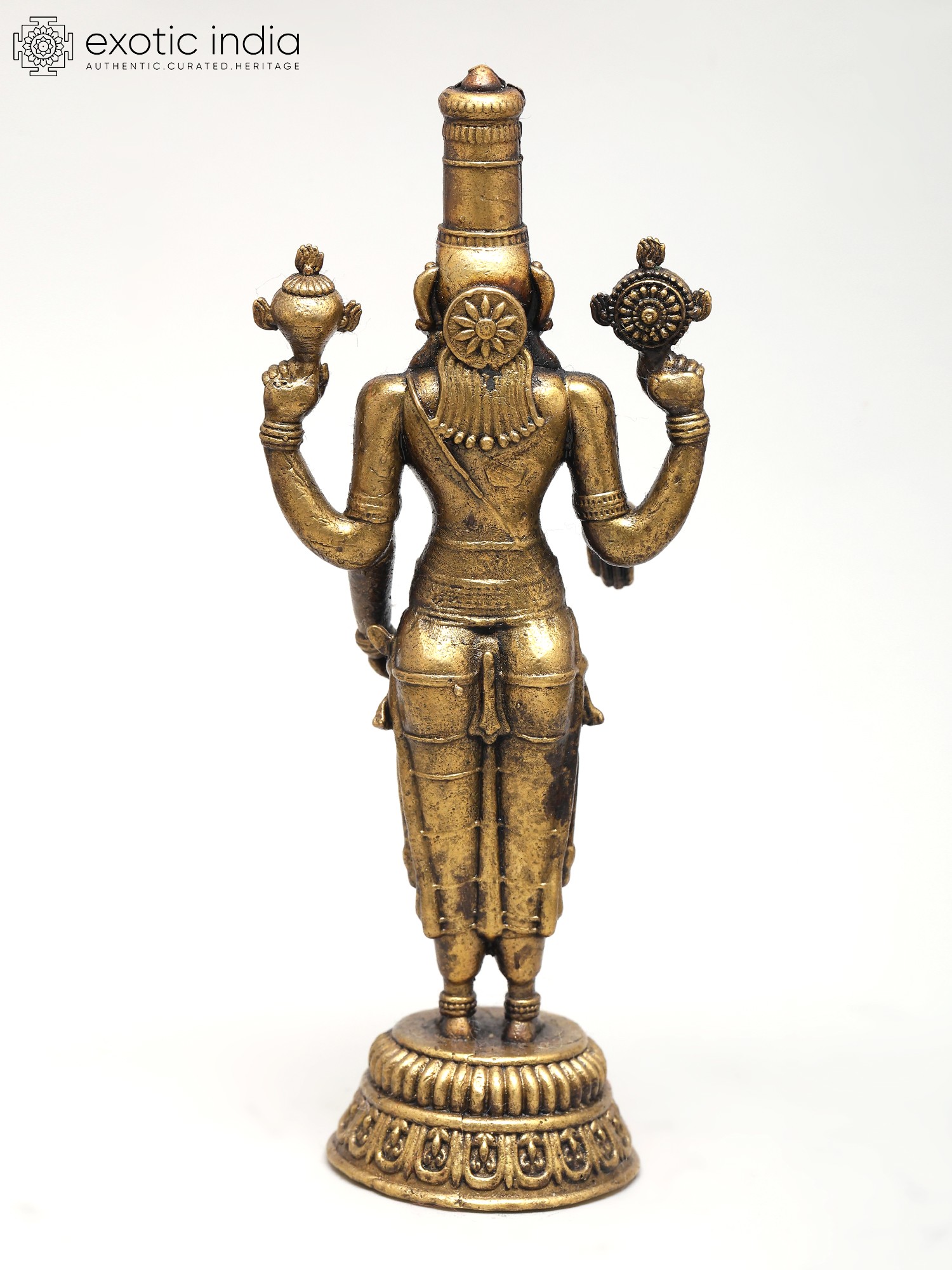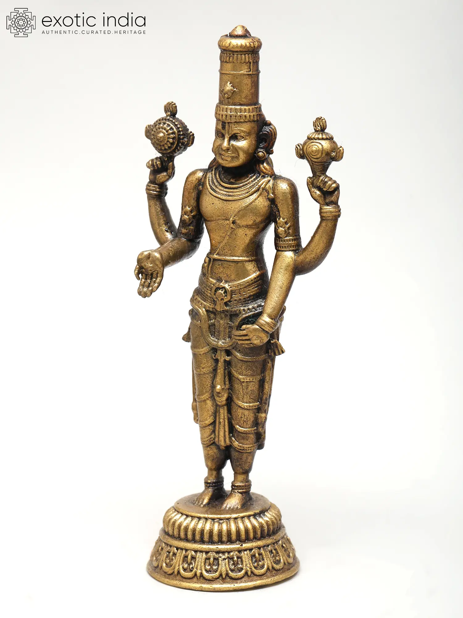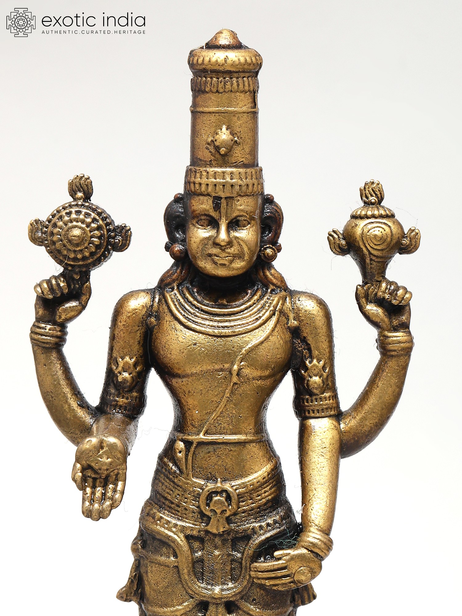 4" Small Superfine Standing Lord Vishnu with Four Arms | Ideal for Puja