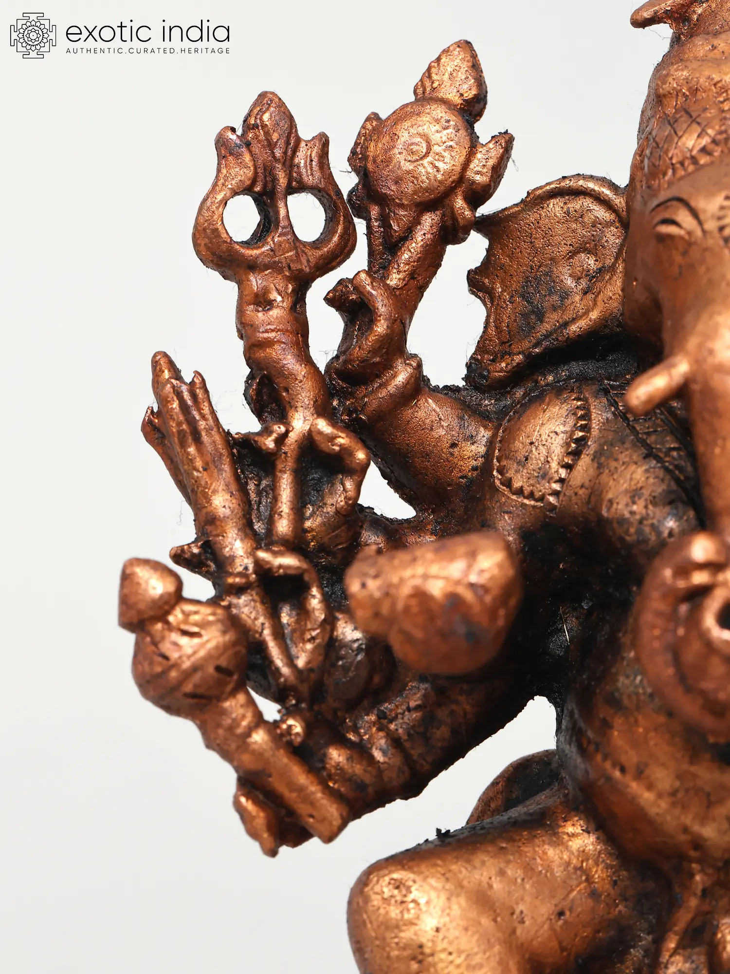 4" Small Ten Armed Siddhi Ganesha | Copper Statue