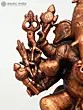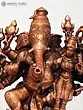 This exquisite copper statue depicts Lord Ganesha, the beloved elephant-headed deity revered as the remover of obstacles, the patron of arts and sciences, and the intellect. In Hindu mythology, Ganesha is the son of Lord Shiva and Goddess Parvati, and his distinctive form is said to symbolize the union of the earthly and the divine. His large ears represent his ability to listen to his devotees' prayers, his trunk signifies his dexterity in overcoming challenges, and his pot belly signifies his contentment and abundance. This particular depiction showcases a multifaceted representation of Ganesha, often associated with his eight forms or avatars, each embodying a distinct power and blessing.