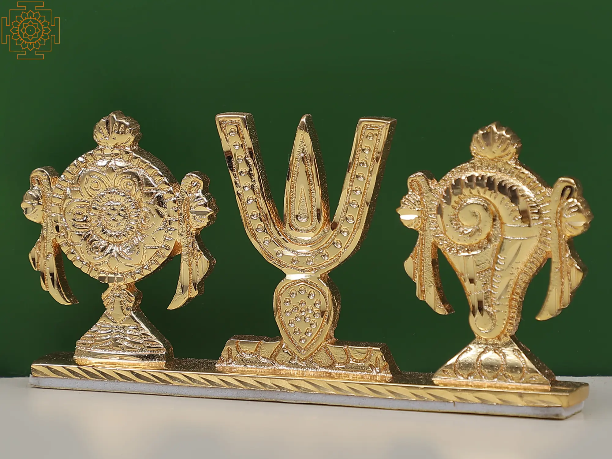 4" Small Vaishnava Symbols For Dashboard In Brass