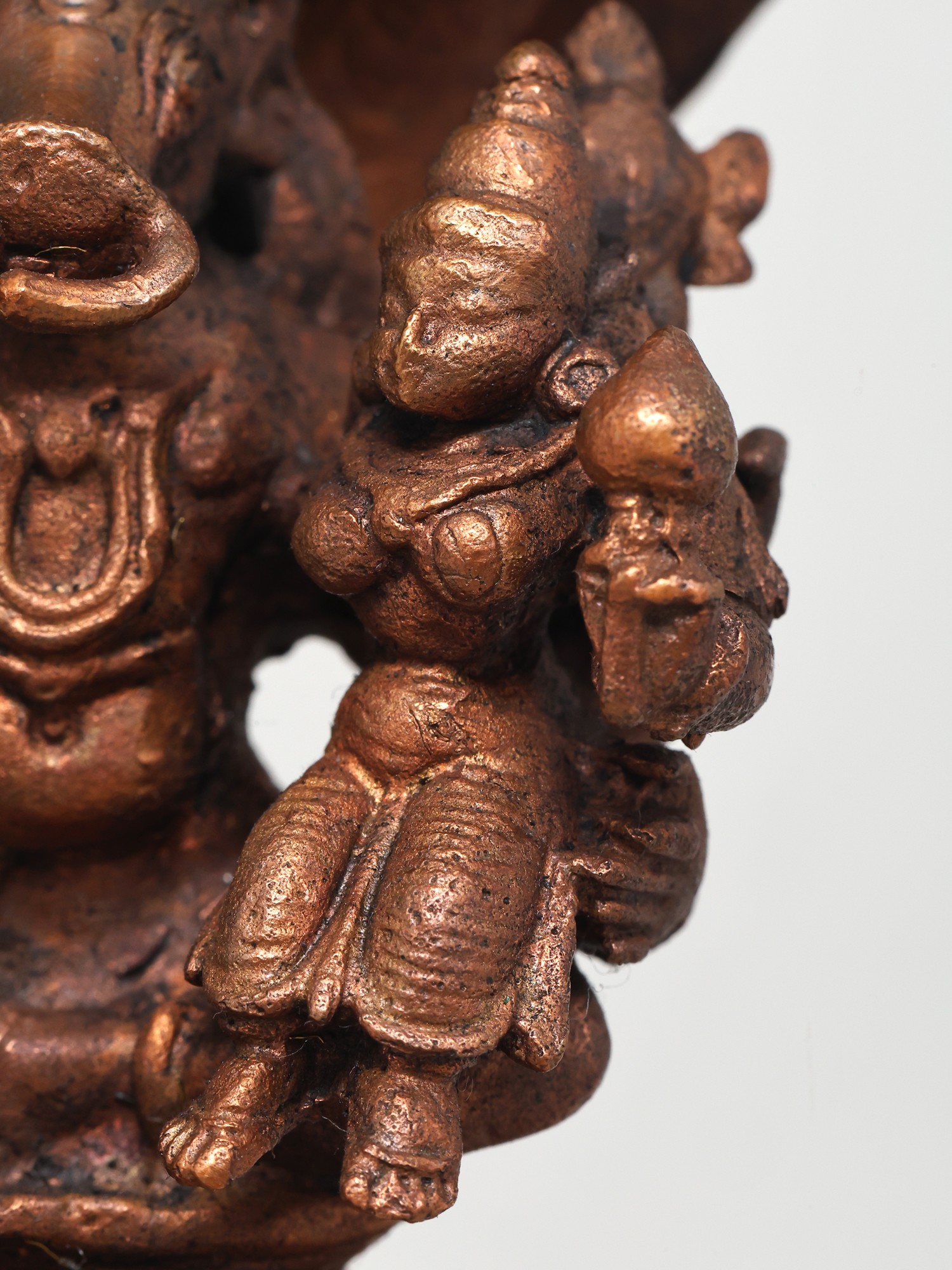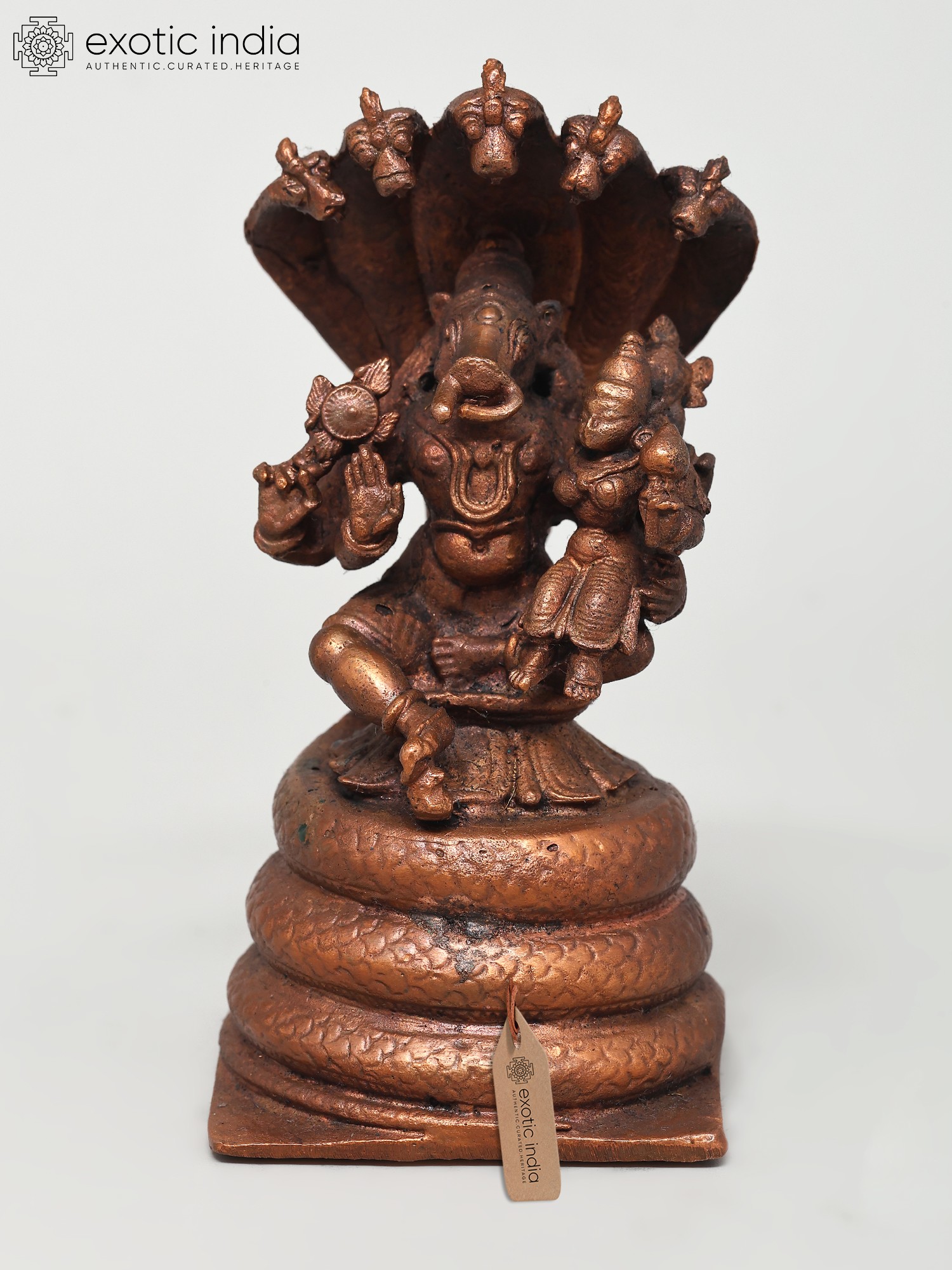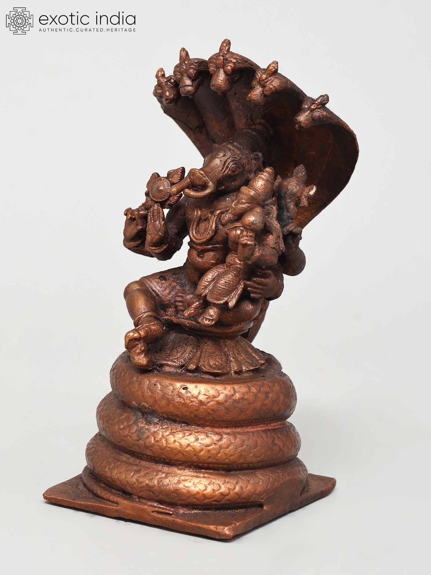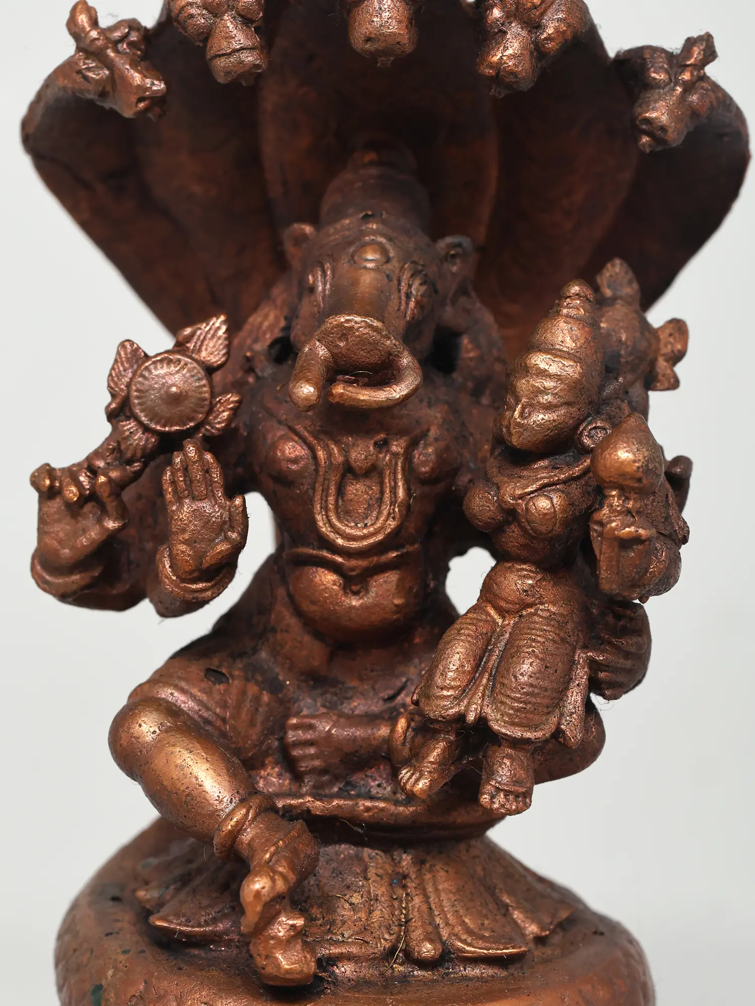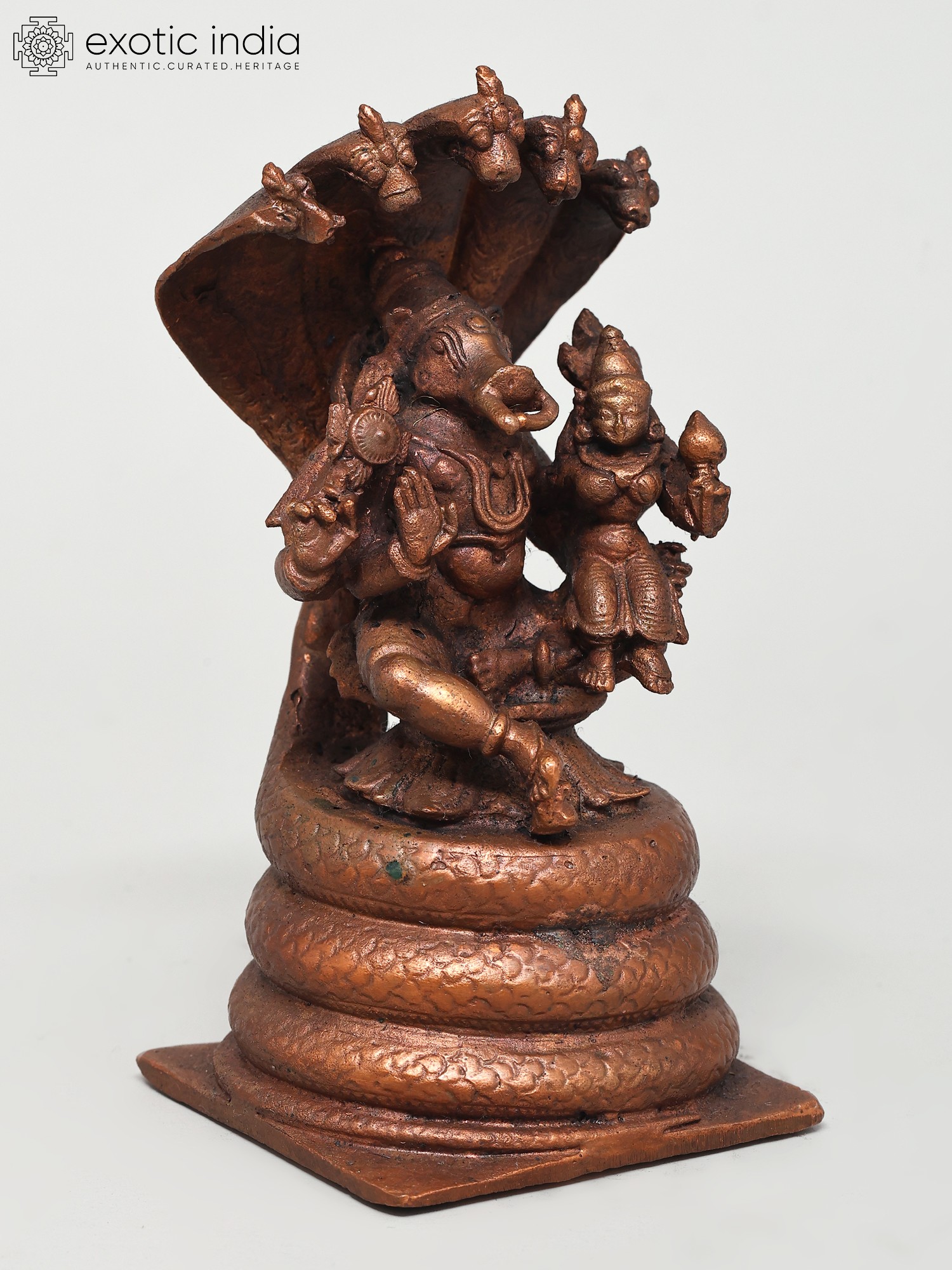 5" Small Lord Hayagriva with Devi Lakshmi Seated on Sheshnag | Copper Statue