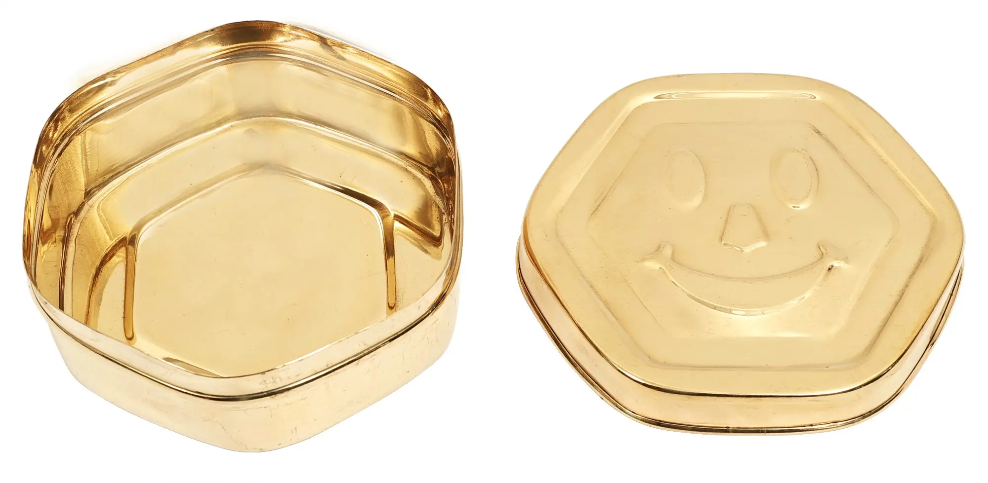 Within the lustrous confines of this meticulously handcrafted brass box, the profound and the playful converge in harmonious embrace. The rich, golden hues of the brass exterior reflect the sun's embrace, while the meticulously etched smiley face upon its lid serves as a reminder of life's most fundamental truth: happiness resides not only in grand gestures, but in the simplest and sincerest of smiles. The Smiley Face Box has been fashioned with utmost care, echoing the way life's experiences mould and shape us. Just as each line on our faces tells a story, so too does the exquisite detailing of this box carry whispers of the artisan's touch and the passage of time.