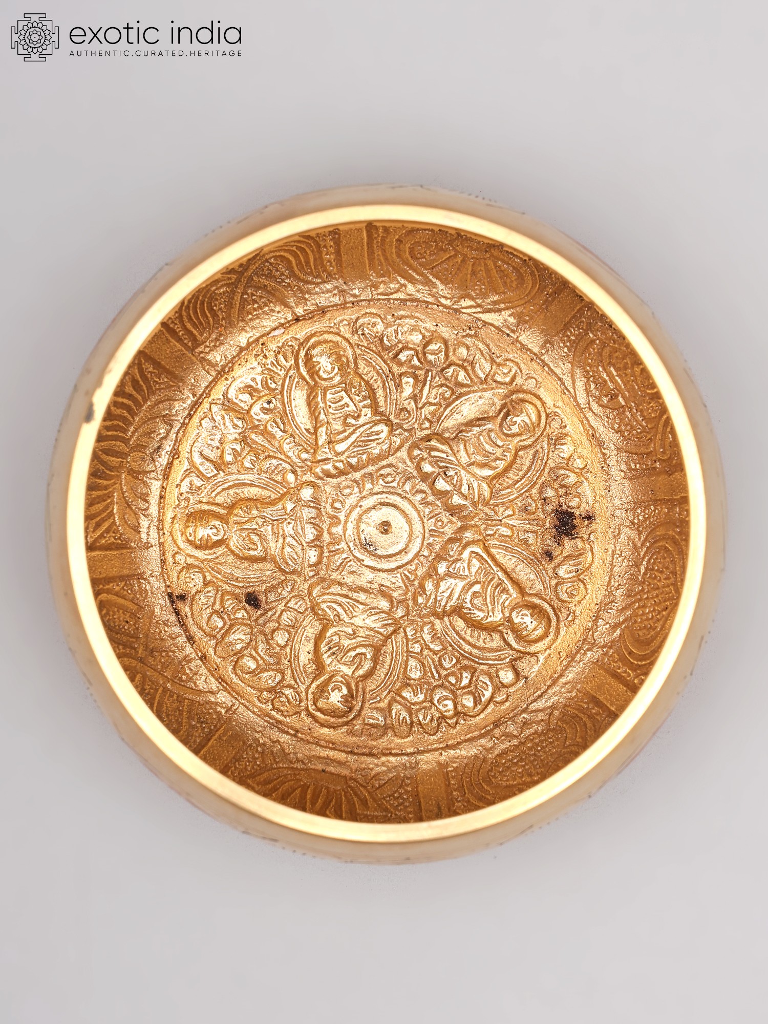 4" Bronze Singing Bowl with Bhumisparsha Buddha | Handmade | Made in India