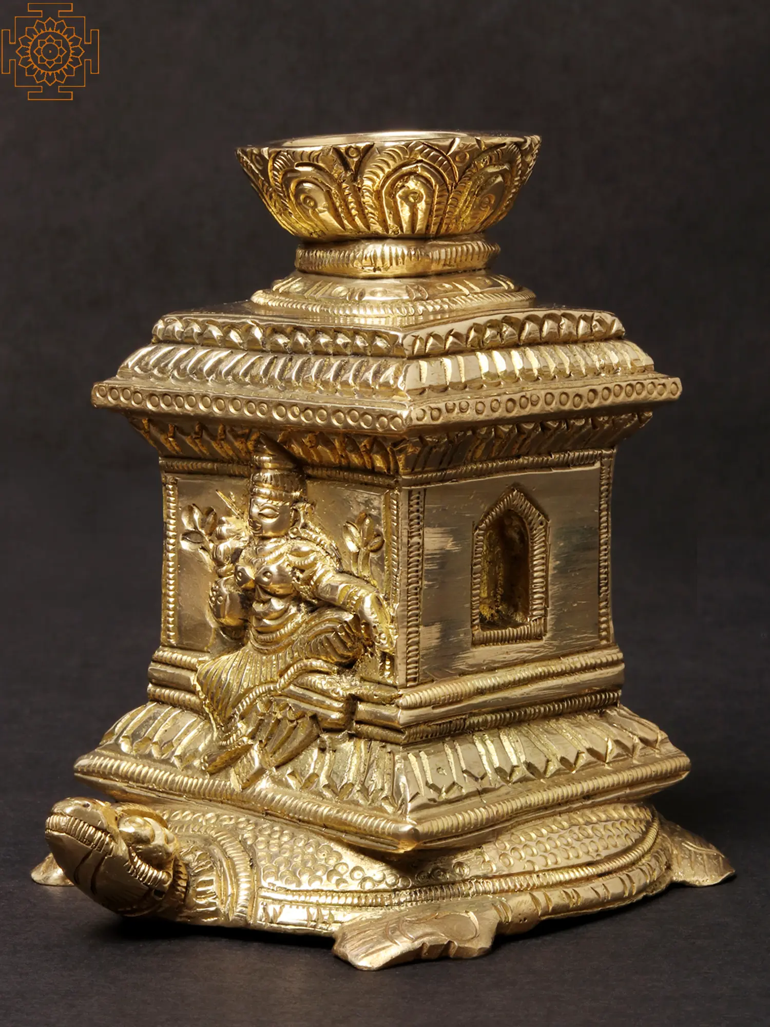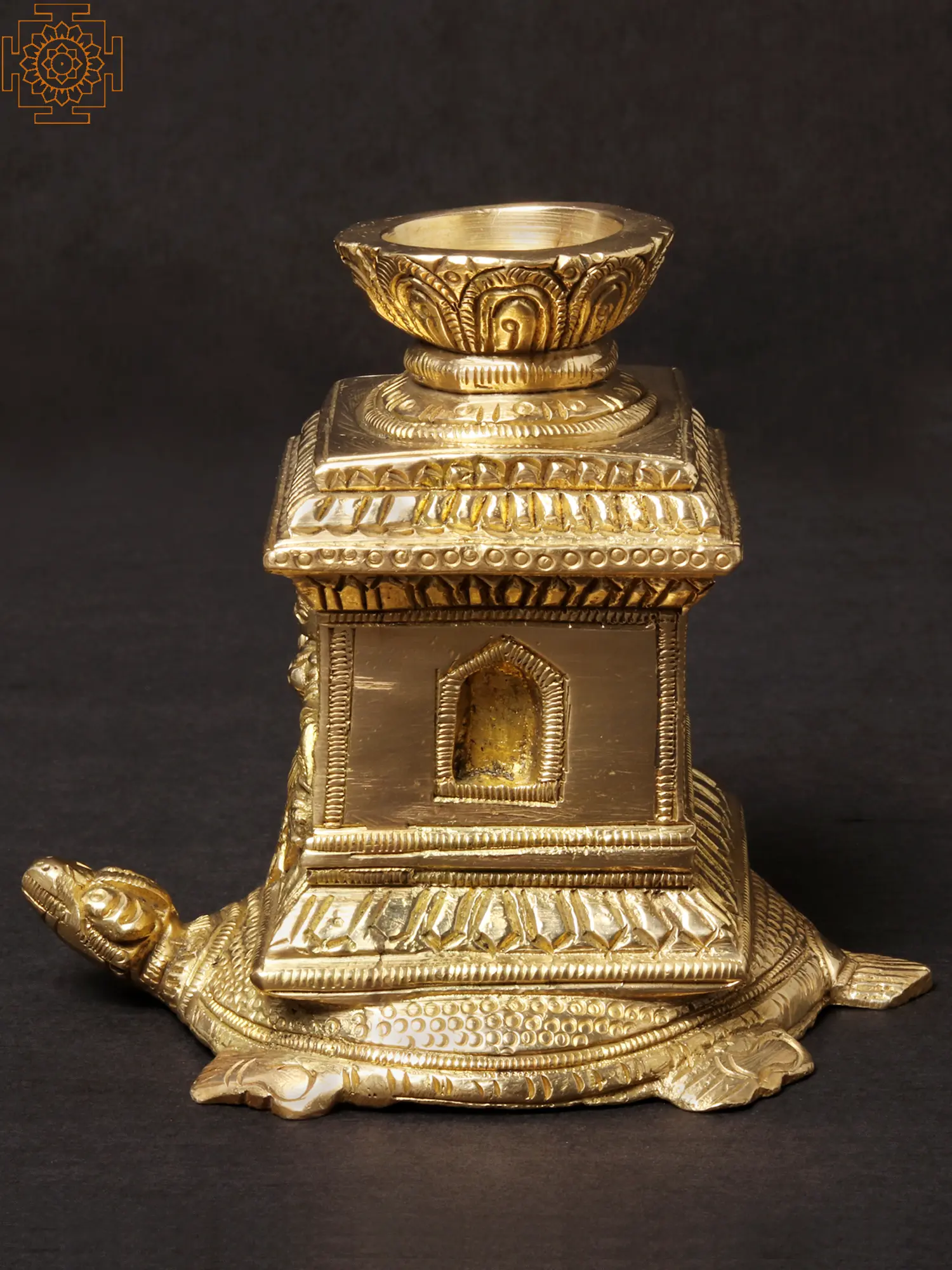 4'' Tortoise Incense Stick Stand With Goddess Andal Engraved | Brass