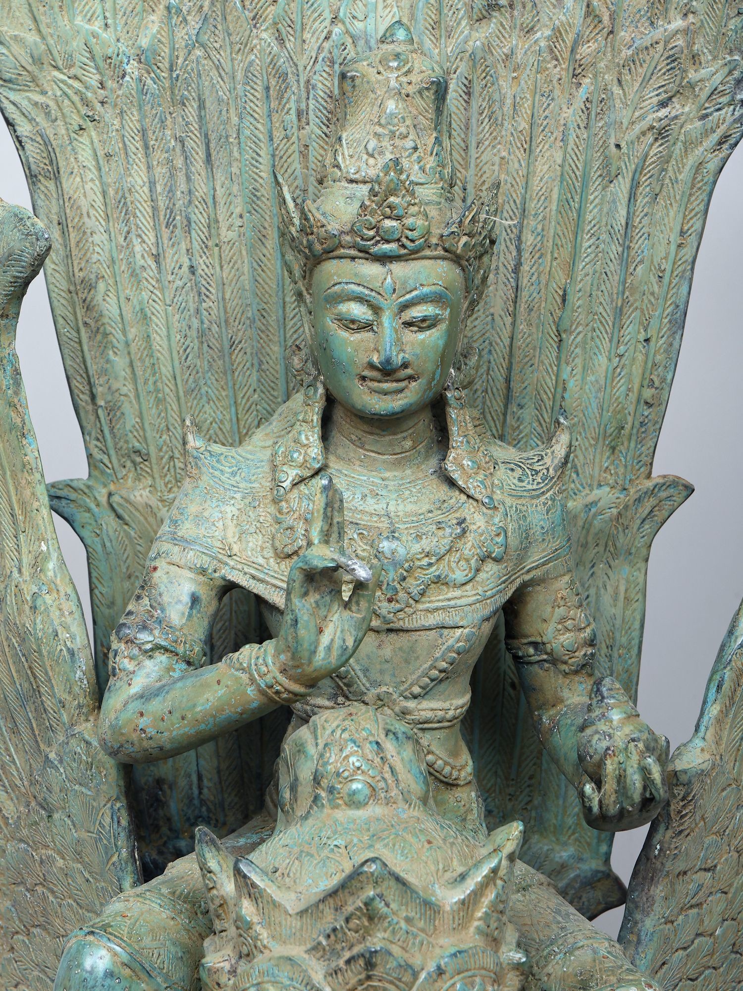 Intricately crafted brass statue showcasing detailed iconography and divine symbolism.