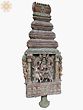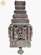 The entire composition is crowned by an ornate temple spire, characteristic of South Indian Dravidian architecture. Each tier of the layered superstructure is meticulously carved, showcasing a complex interplay of patterns and forms that mirror the majestic gopurams of ancient temples. These towering structures are not merely architectural marvels but also symbolic representations of the cosmic mountain Meru, serving as a bridge between the earthly and the divine realms. The flanking sculptures of mythical beasts, possibly representations of Yalis, lion-like creatures often depicted in temple art, add to the sense of grandeur and spiritual protection surrounding the central deities.