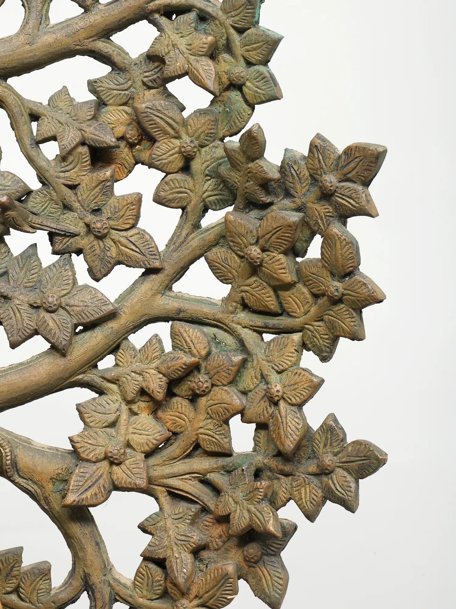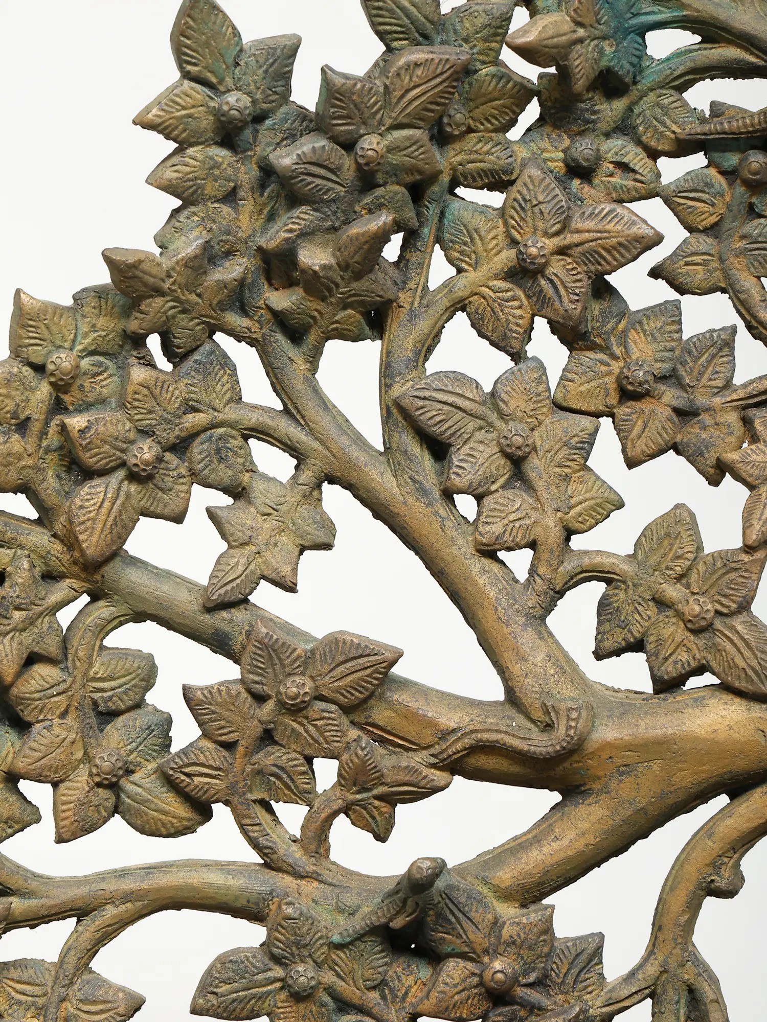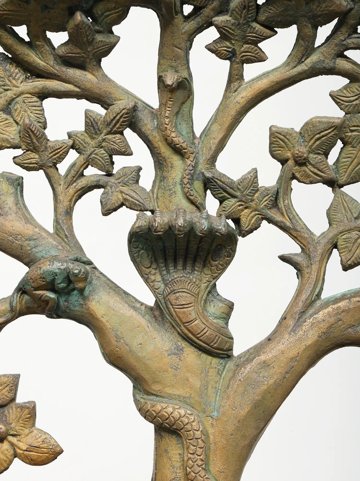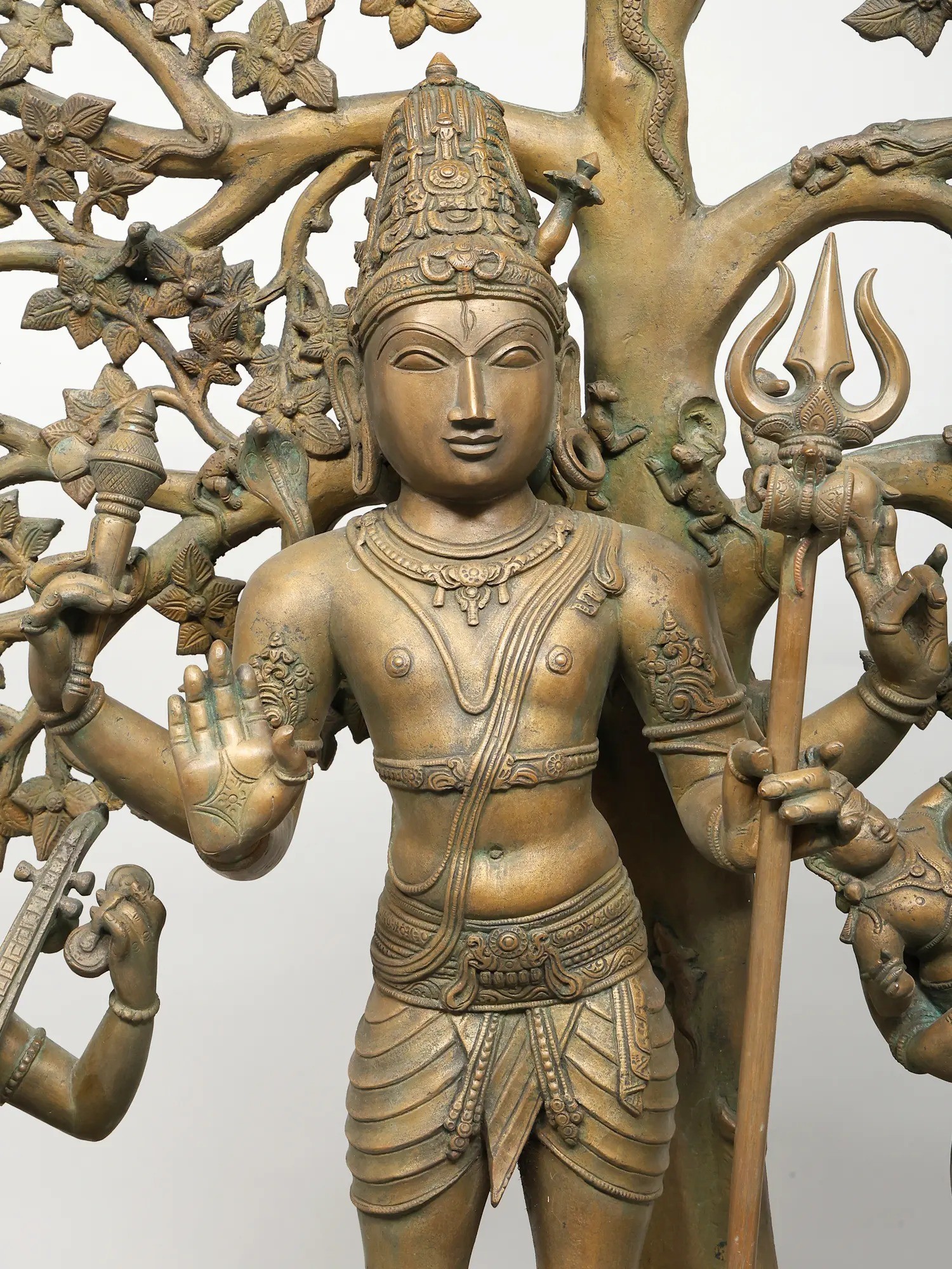 Shaded by a naturalistically depicted tree that houses various animals in animated poses, Shiva’s family appears decked up for a heavenly portrait in metal.
