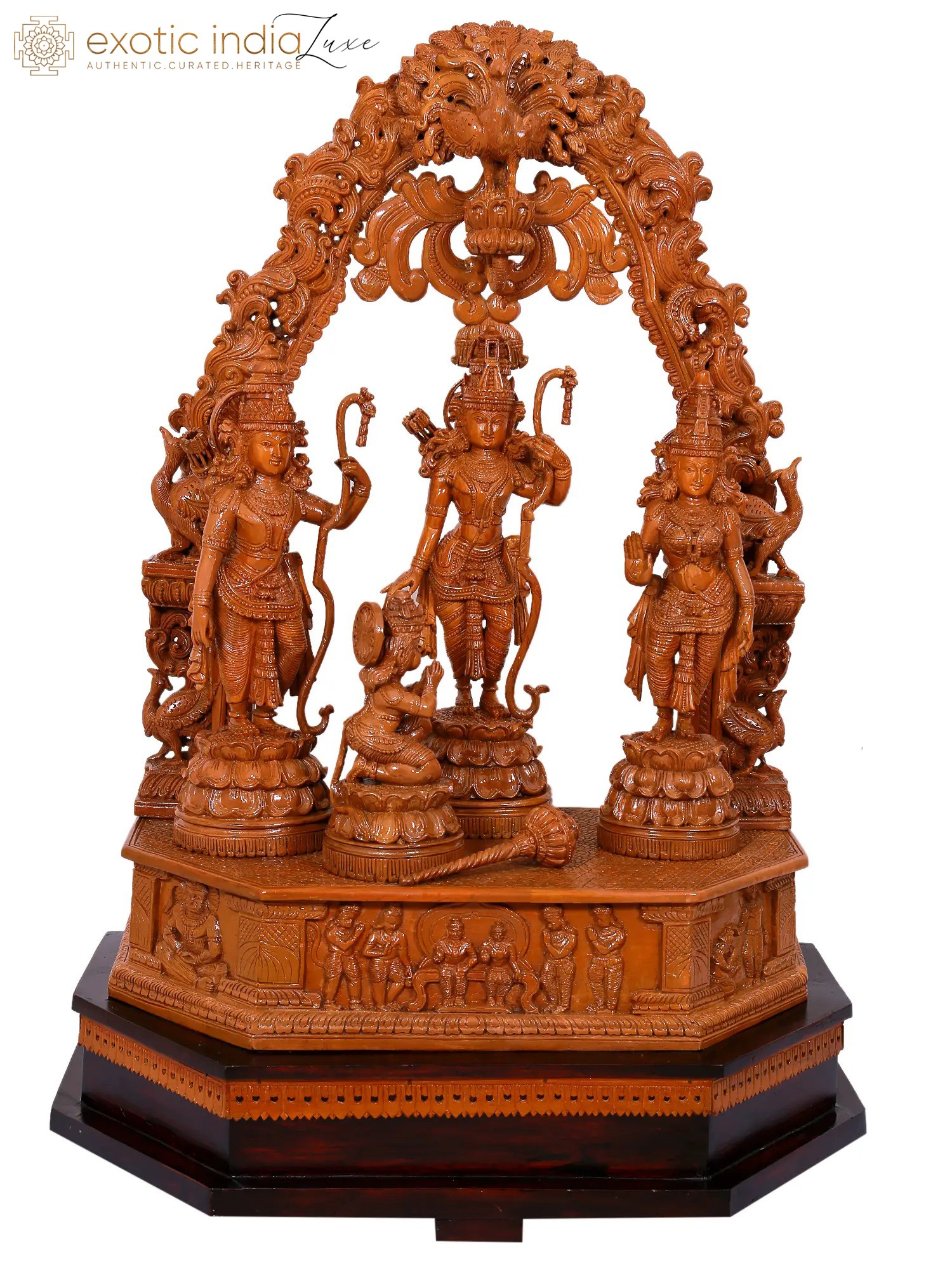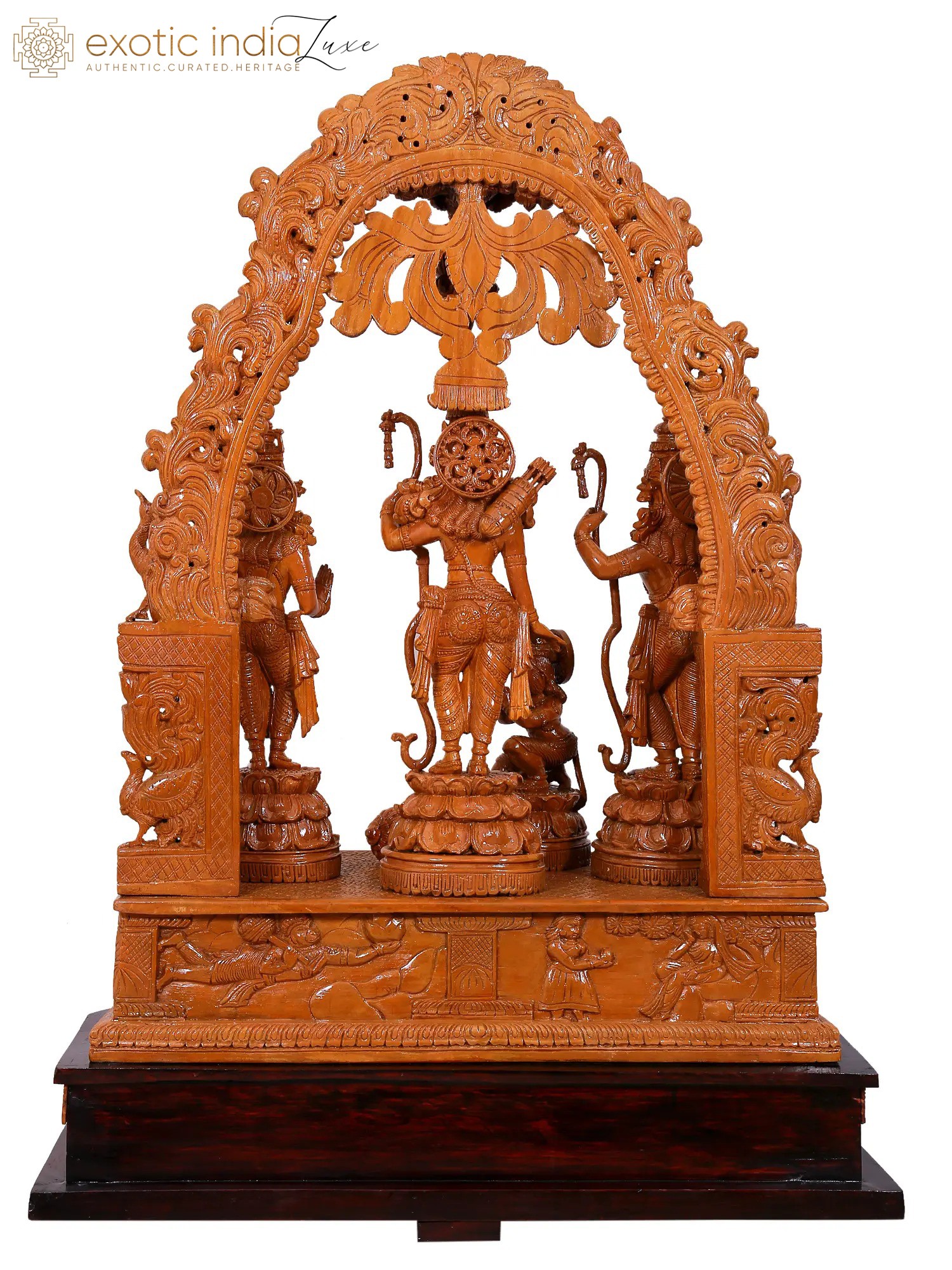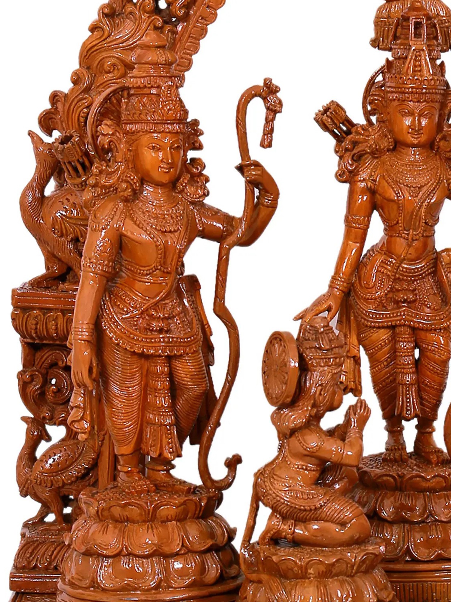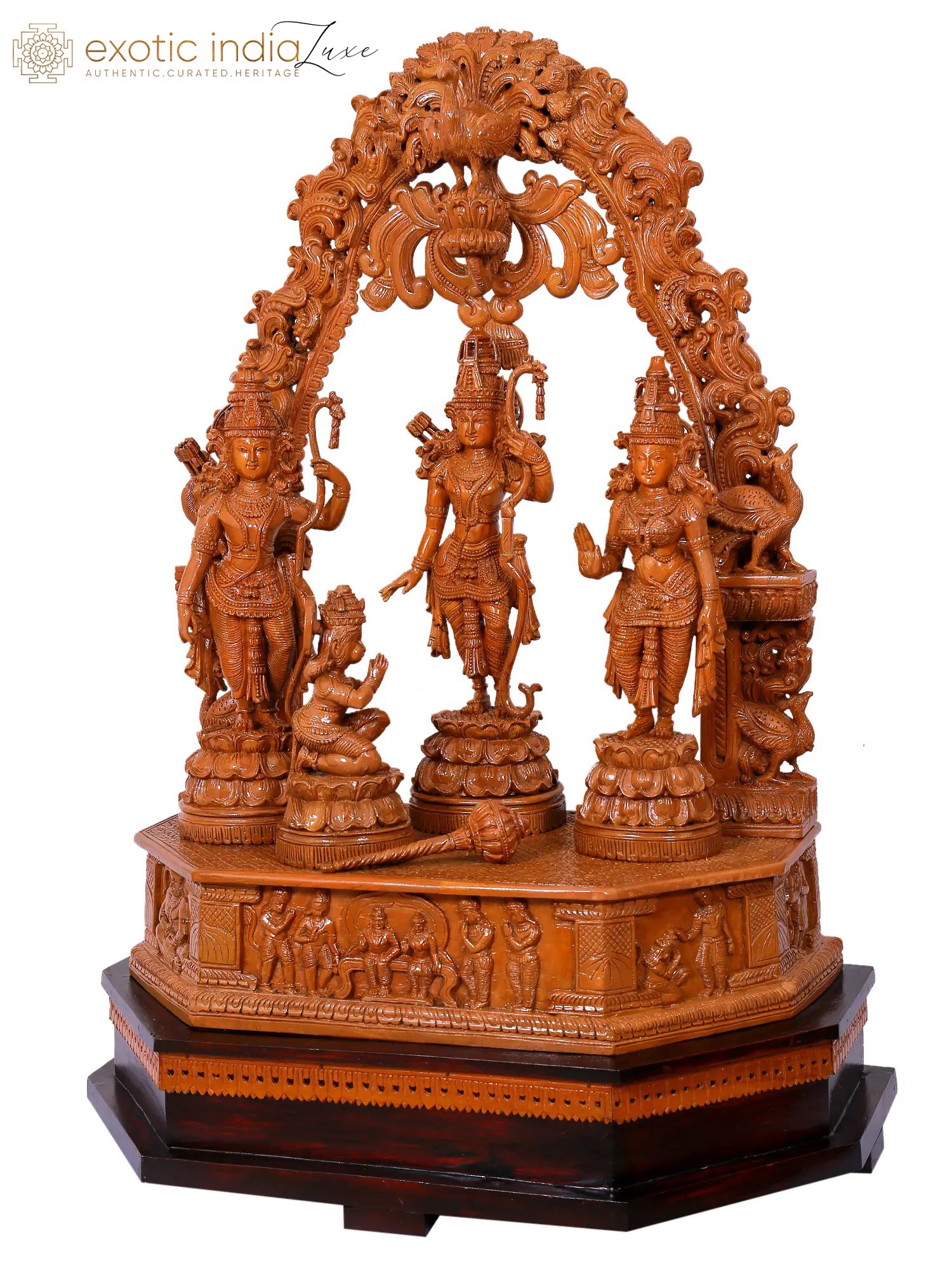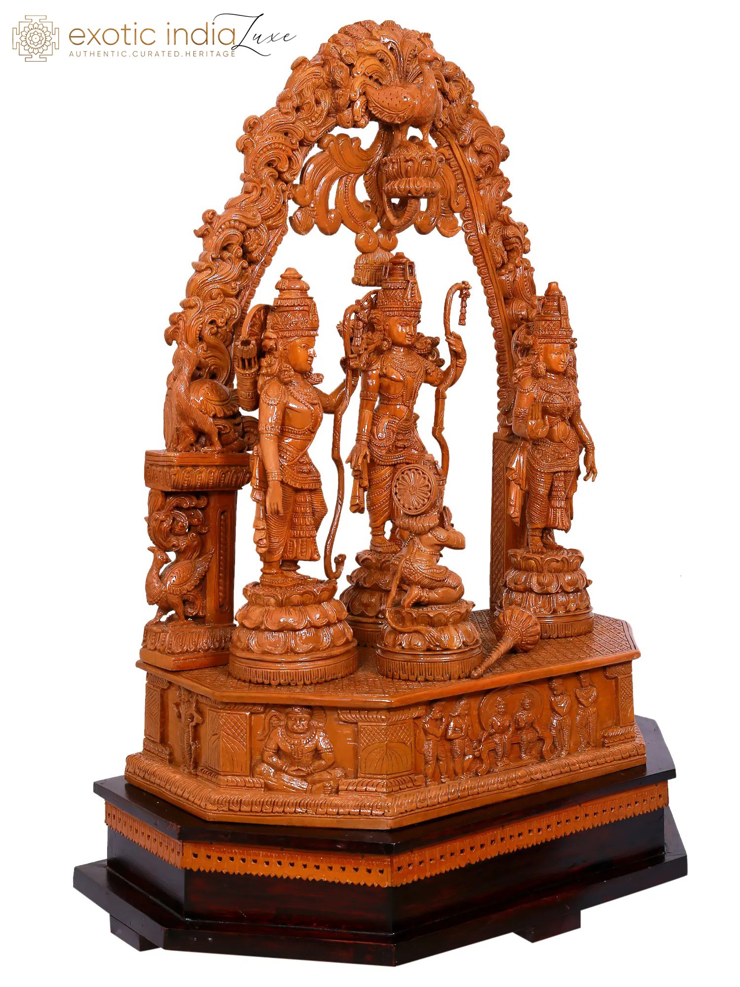 Carrying the might and affectionate gaze of Sri Rama and turning us into his devoted subjects, this magnificent wood statue brings us the glory of Rama Darbaar.
