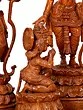 The pedestal for this teakwood statue is a two-layered element, exquisitely engraved with fine motifs and blessed by the presence of Rama-Darbaar and various Lilas from the life of Sri Rama. Polished seamlessly and carved in a rounded manner, this superfine wood Rama Darbaar fills the atmosphere with the fortuitous presence of Avadhapati, who though resides in each particle of the universe, for a second, seems to have made this statue into his sole abode.