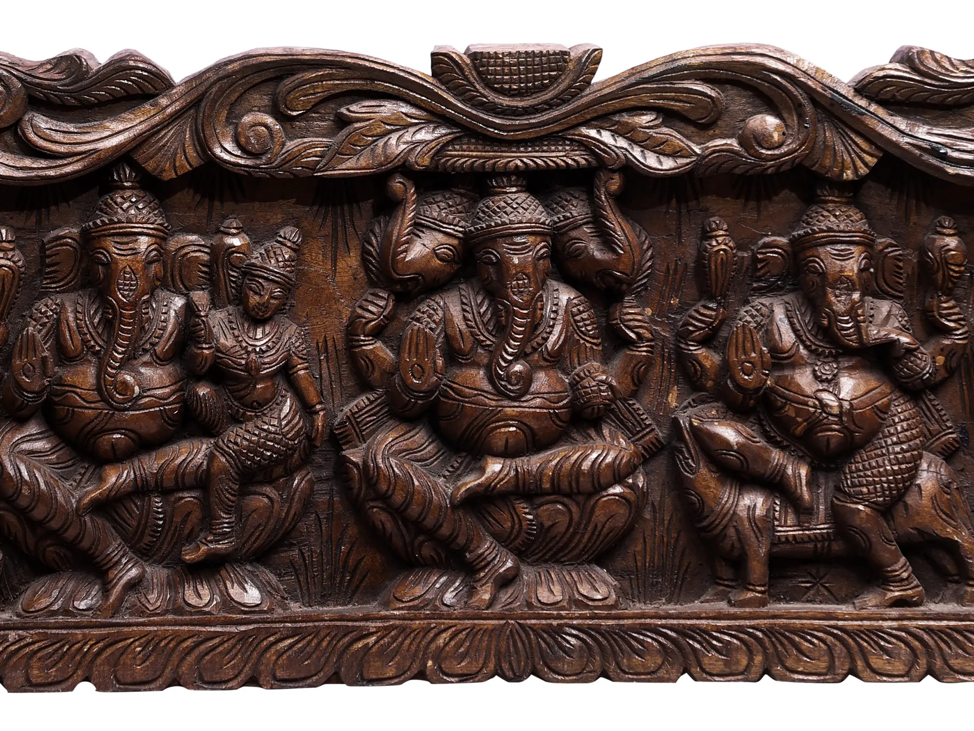 Embrace the divine presence of Lord Ganesha with this magnificent wooden wall panel, a true masterpiece of intricate craftsmanship. Carved from the finest wood, this expansive piece showcases Lord Ganesha in various forms, each imbued with profound symbolism and spiritual significance. The rich texture and deep hues of the wood bring to life the ancient stories and revered traditions associated with the Remover of Obstacles. This panel is more than just a decorative item; it is a conduit to ancient wisdom and a powerful reminder of the auspicious beginnings that Ganesha signifies. As the patron of arts and sciences, the deva of intellect and wisdom, and the author of the epic Mahabharata, Ganesha is invoked at the start of any new endeavor, ensuring success and overcoming challenges. This artwork captures his benevolent spirit, making it a focal point for any space seeking harmony, prosperity, and positive energy.