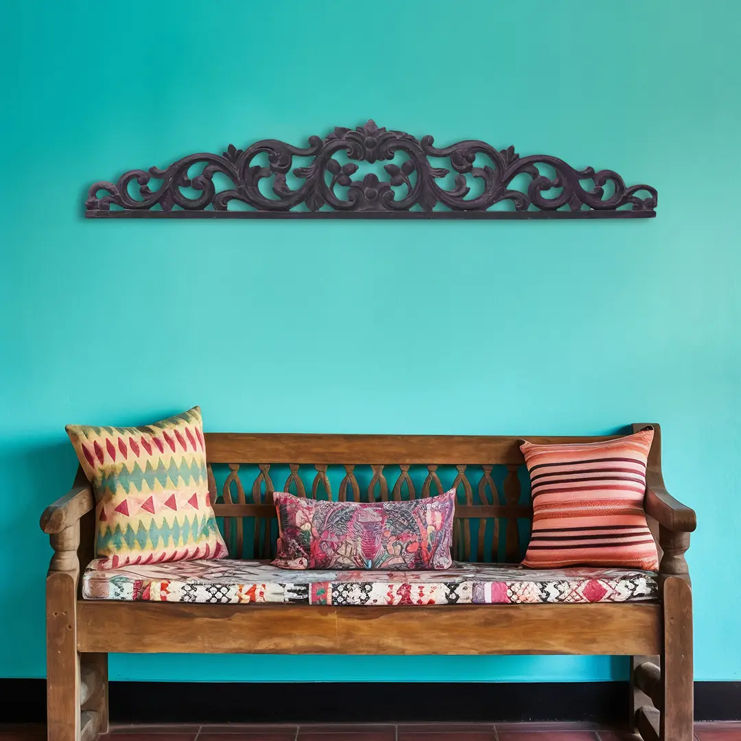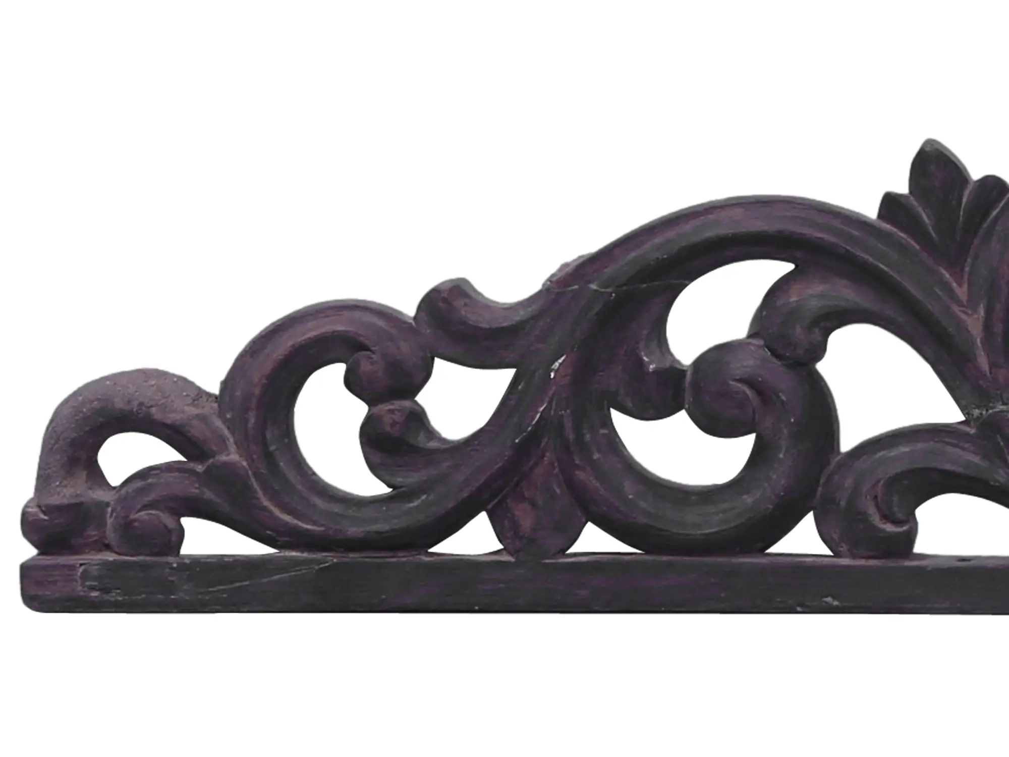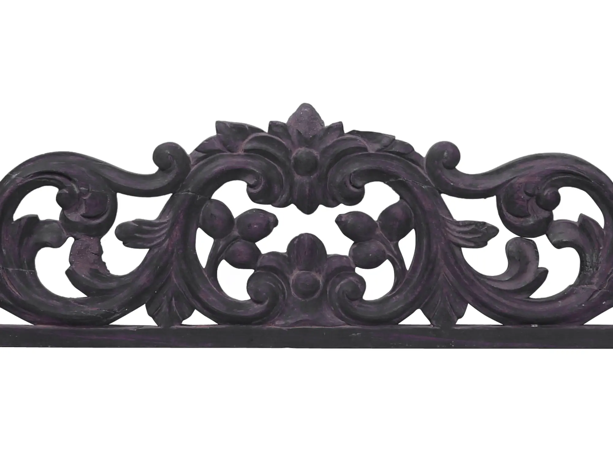 This exquisite wooden wall panel is a testament to the rich artistic heritage of India. Meticulously handcrafted by skilled artisans, it embodies a tradition of intricate carving and design that has been passed down through generations. The dark, deep finish accentuates the detailed scrollwork, creating a striking visual element that can transform any space into a sanctuary of style and culture. The design itself speaks of timeless beauty. The flowing lines and floral motifs are reminiscent of ancient architectural embellishments found in palaces and temples across India. These decorative elements are not merely for aesthetic appeal; they often carry symbolic meanings. Scrolls, for instance, can represent the cyclical nature of life and the universe, while floral patterns often symbolize prosperity, fertility, and the blossoming of beauty. The central, stylized floral element at the apex of the panel could be seen as the lotus, a sacred flower in many Indian traditions, representing purity, enlightenment, and divine beauty. –––––––––––––––––––