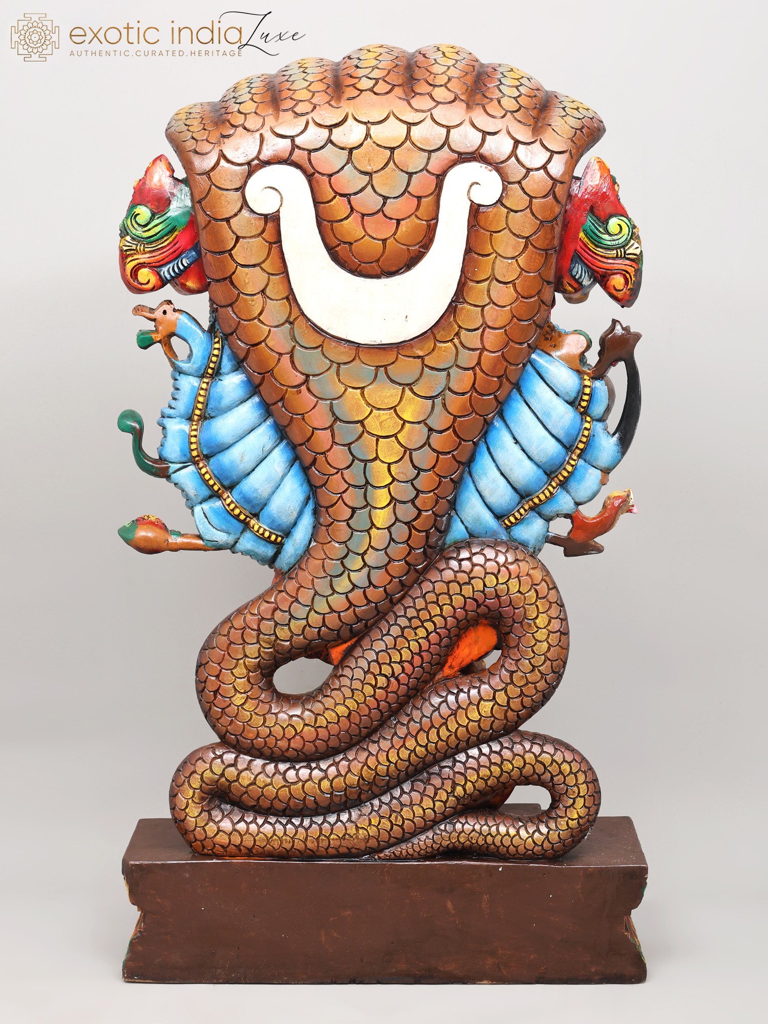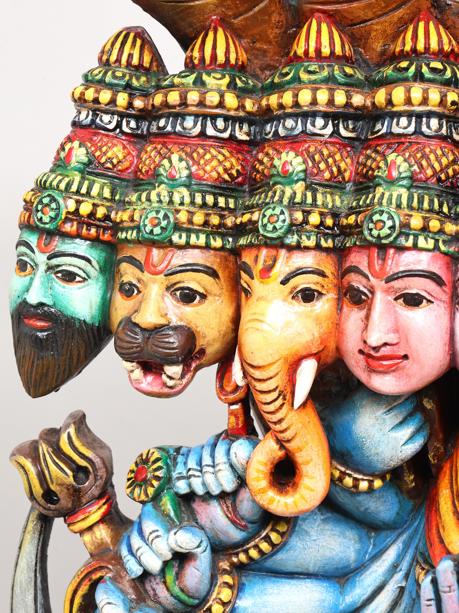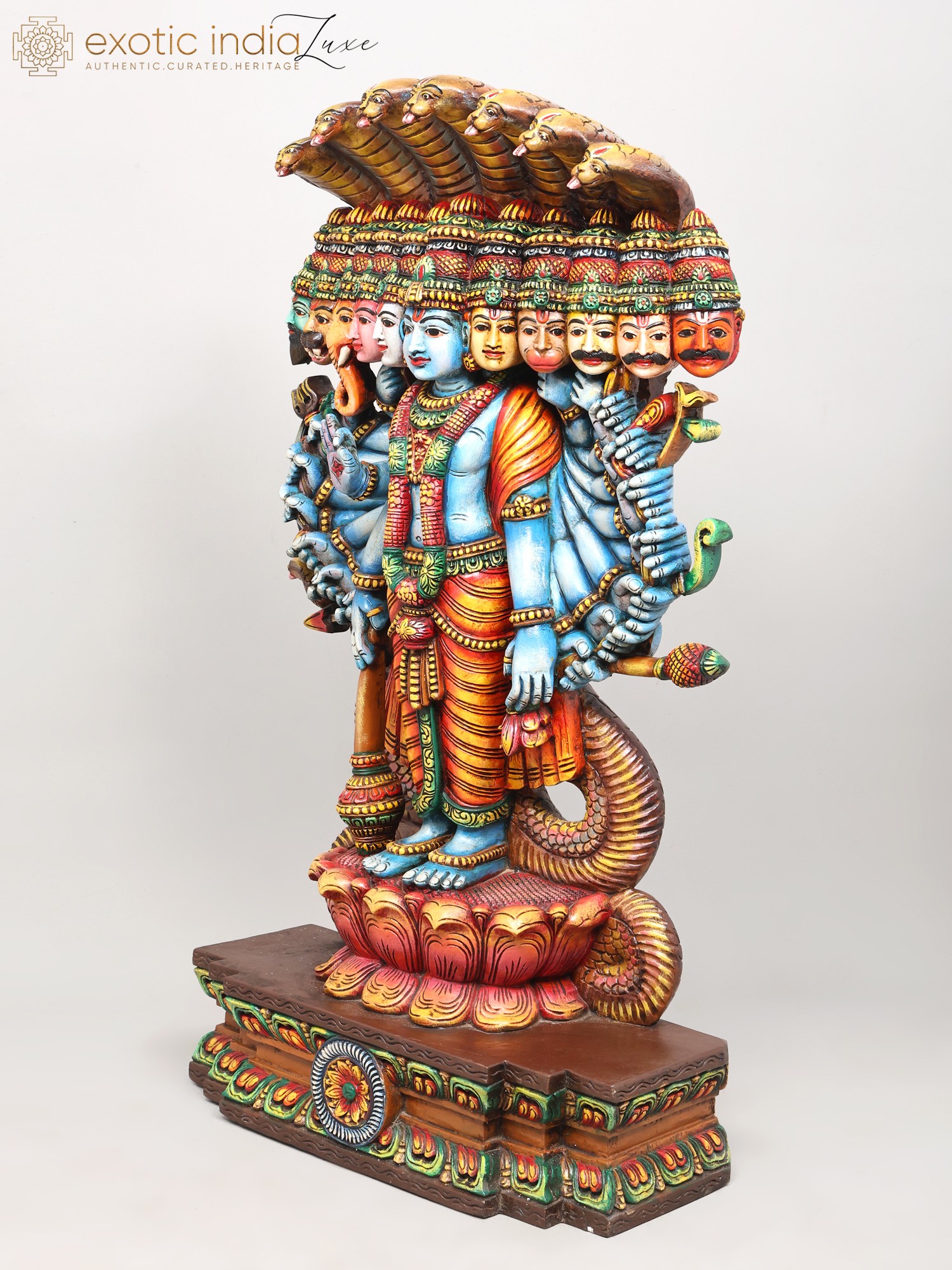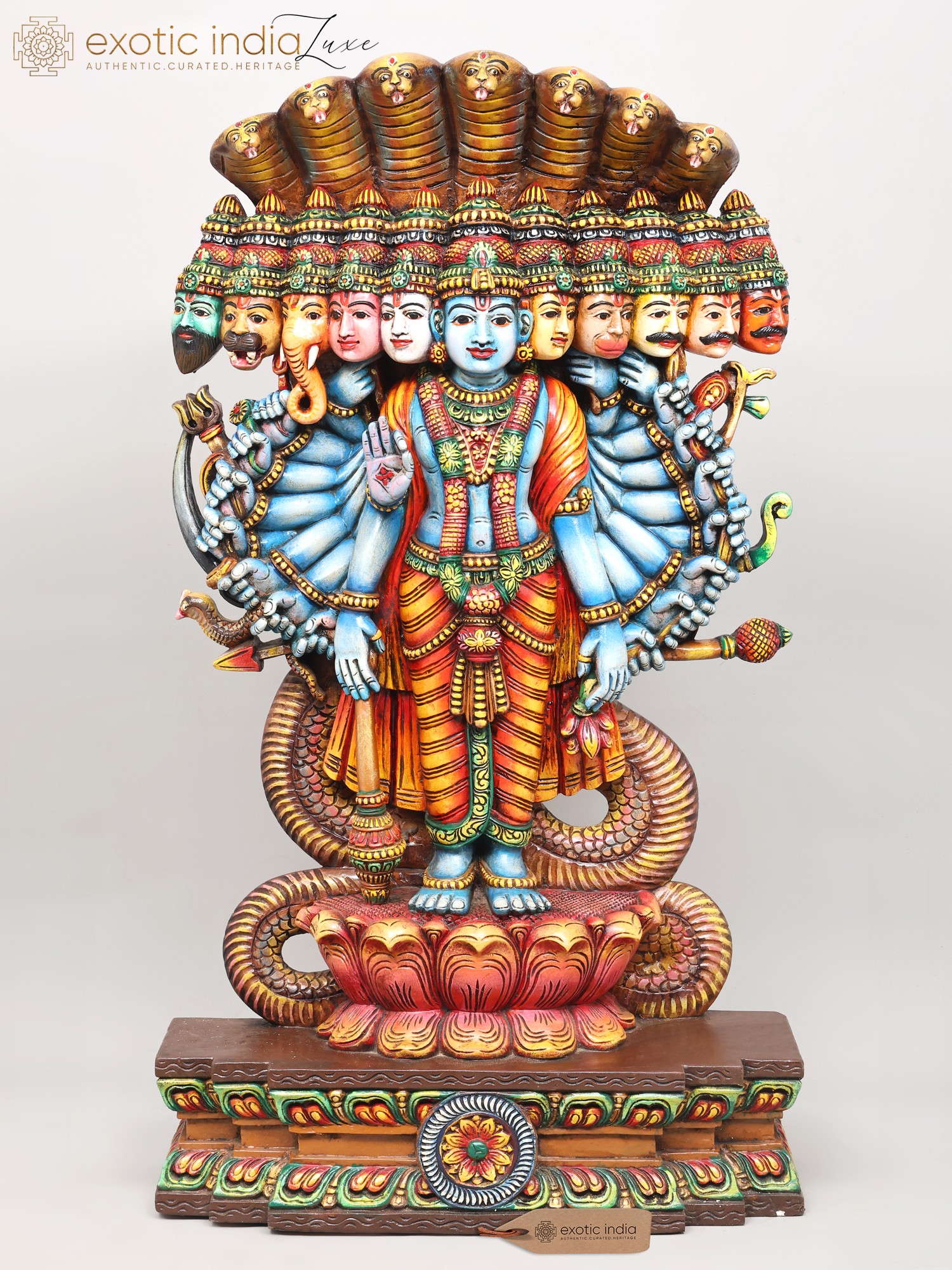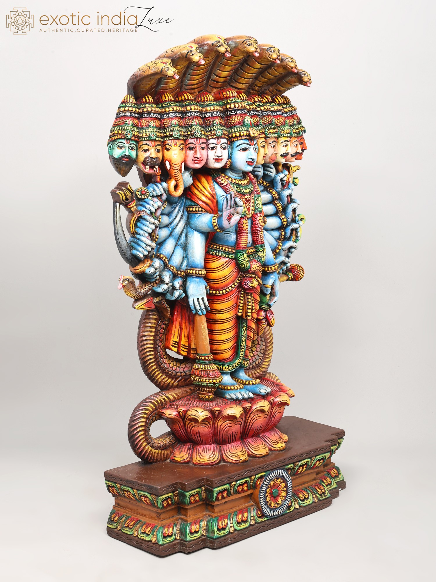 42" Vishwarupa Darshan: The Cosmic Form of Lord Vishnu | Hand-Painted Large Size Wood Carved Sculpture