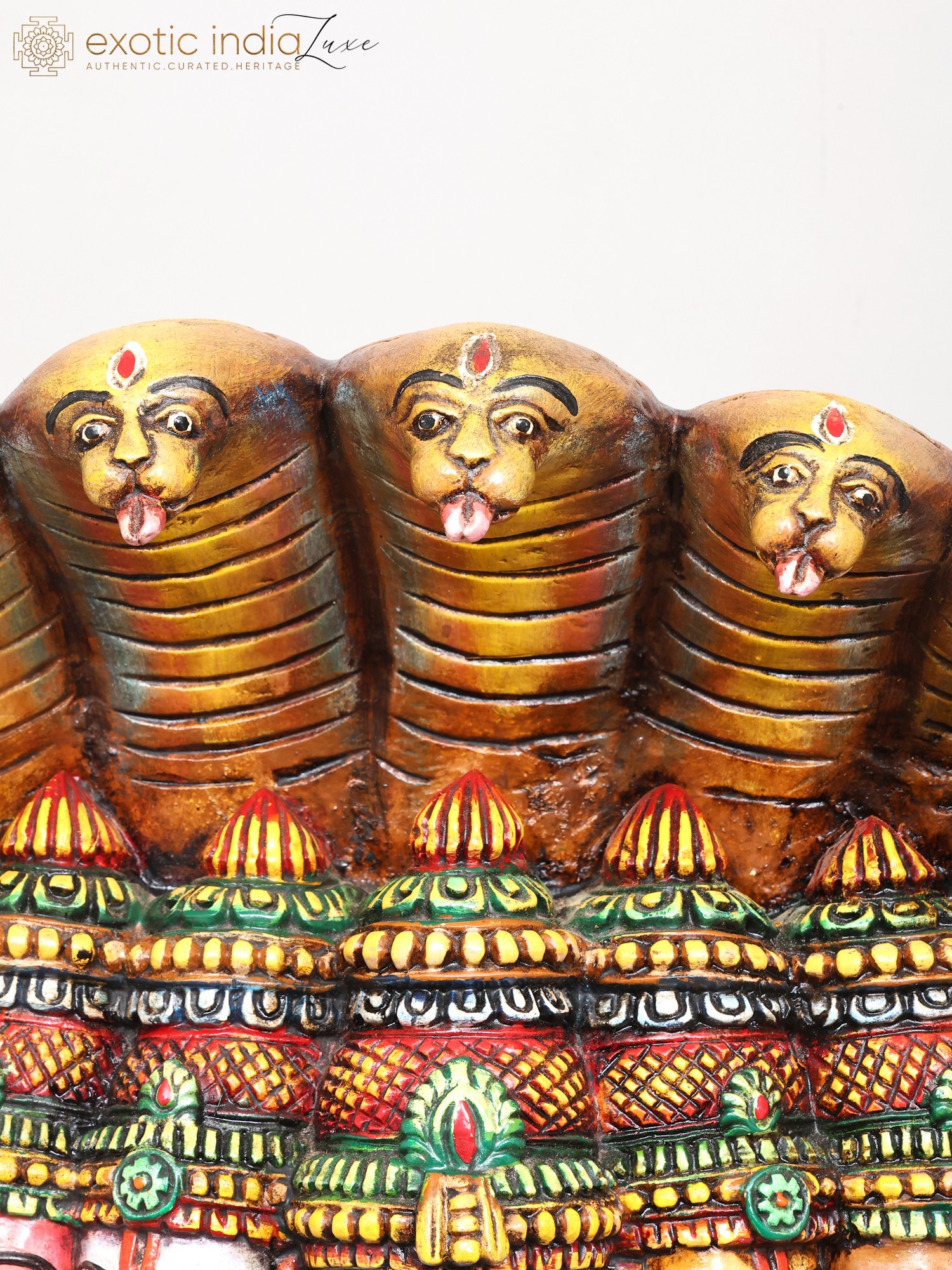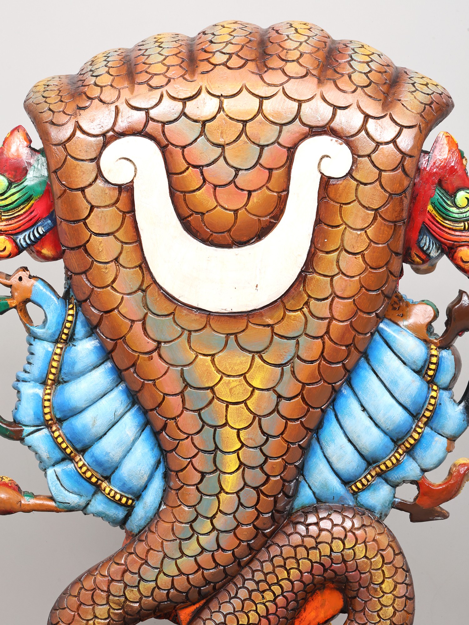 12" Lord Vishnu Wall Panel with Sheshnag | Wood Carving