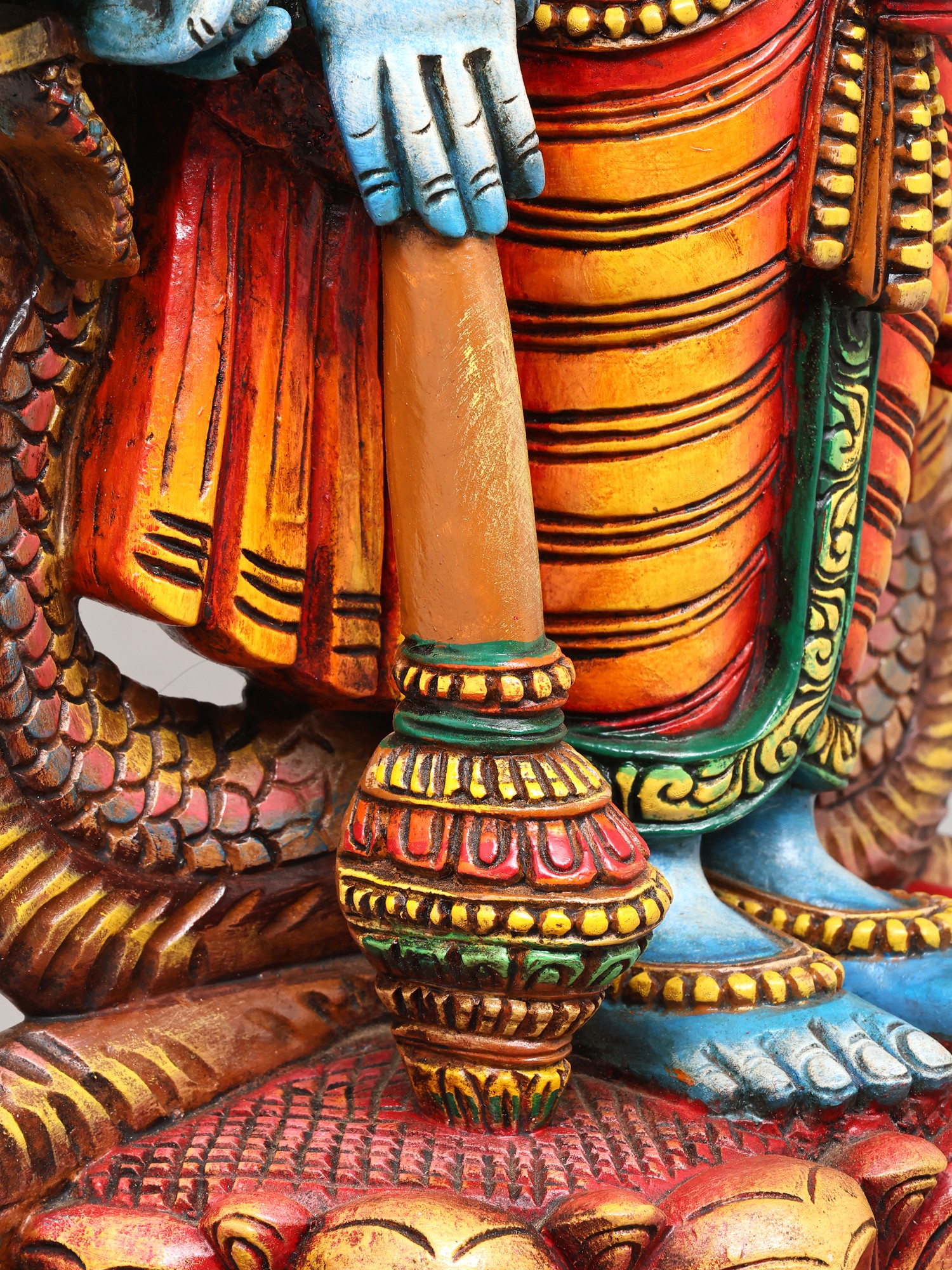 24" Colorful Standing Lord Vishnu | Wood Carving