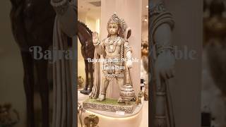 This magnificent 44-inch standing statue of Hanuman, crafted from exquisite white marble, captures the essence of the powerful Hindu deity in his blessing gesture. Hanuman, the devoted servant of Lord Rama, is revered for his unwavering loyalty, immense strength, and profound devotion. This statue is more than just a decorative piece; it's a powerful symbol of faith, resilience, and the triumph of good over evil. The meticulous detail in the carving showcases the artistry and dedication poured into its creation. The vibrant colors used for the accents bring this revered figure to life. The statue's impressive size makes it a commanding presence, suitable for both indoor and outdoor settings.