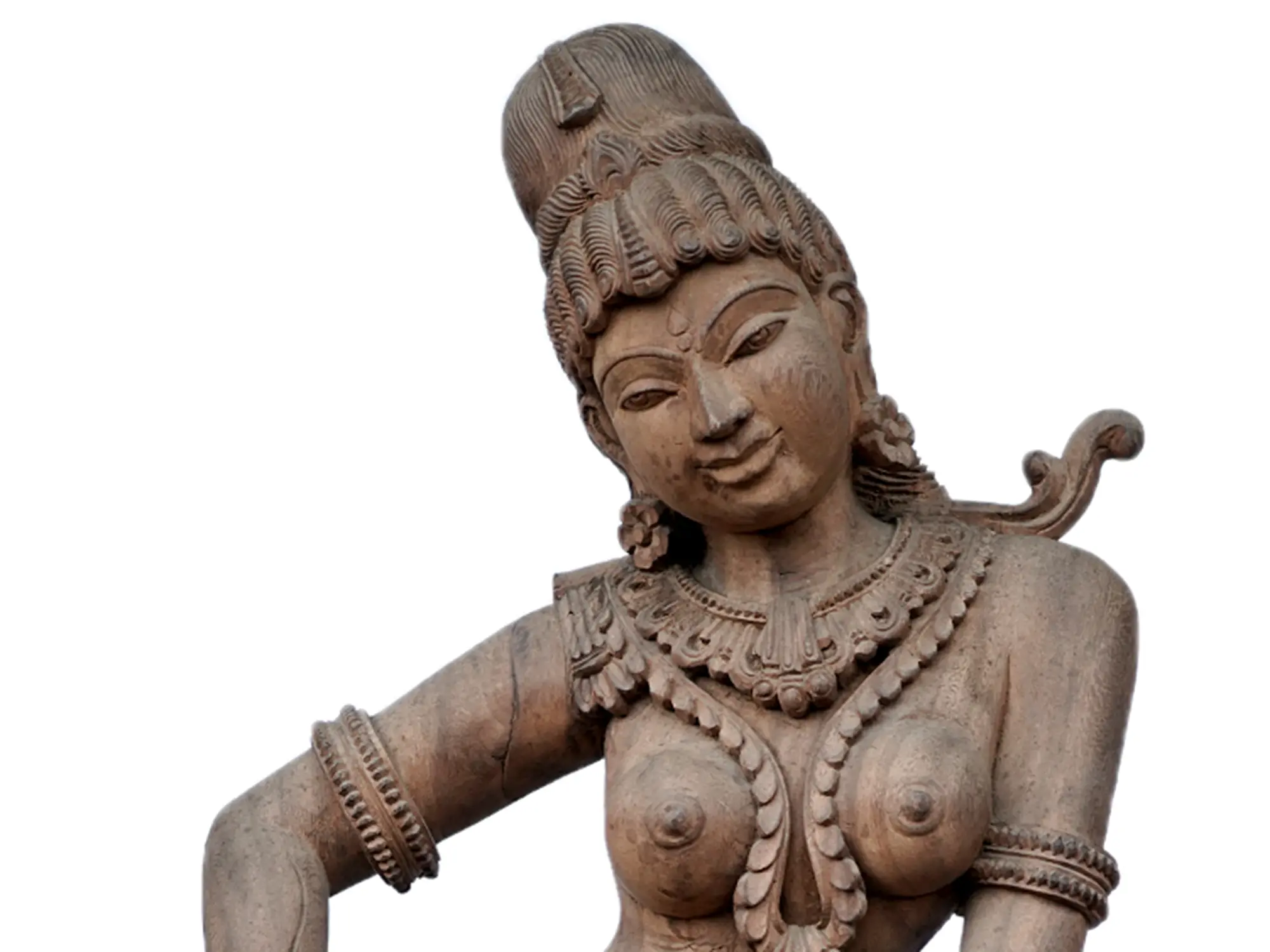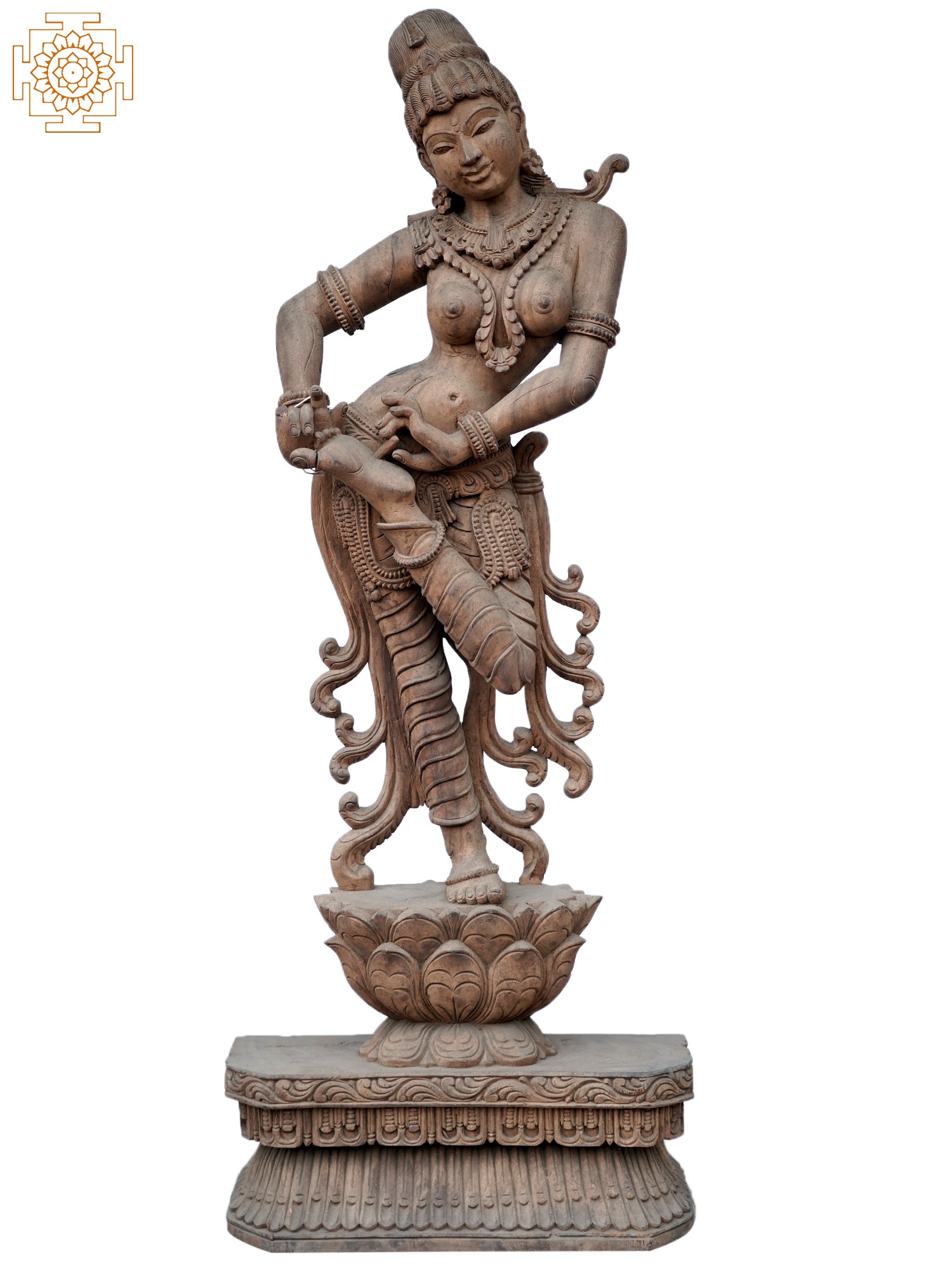 Temple Apsaras Sculpture | Handcrafted South Indian Wood Art
