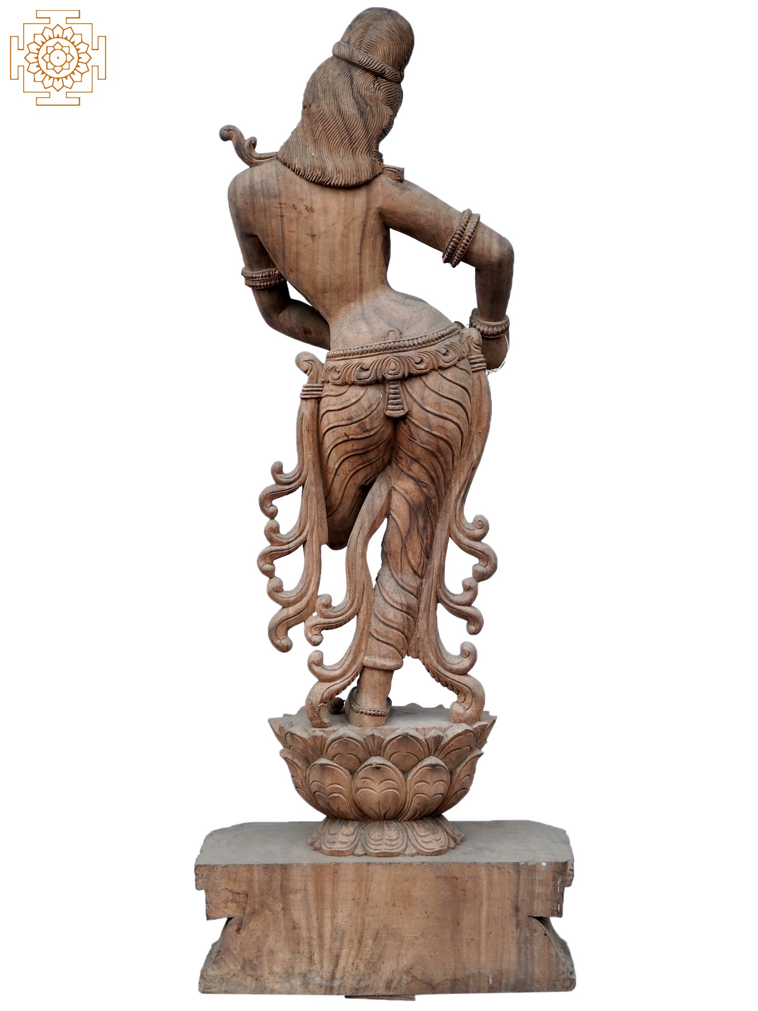 36" Large Wood Idol Of Beautiful Standing Apsara