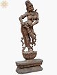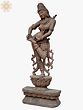 This magnificent wooden statue captures the essence of an Apsara, a celestial nymph from Hindu and Buddhist mythology. Standing at an impressive height, this sculpture embodies ethereal beauty and divine movement. The Apsaras are known for their captivating dances, their presence in Indra's heavenly court, and their ability to inspire mortals. This particular representation showcases an Apsara in a moment of profound grace, seemingly engaged in a ritualistic act of self-purification or perhaps tending to a hidden wound, symbolized by the intricate gesture of reaching for her side. The craftsmanship is evident in every curve and detail. Carved from rich, natural wood, the statue boasts a warm, earthy tone that speaks to its artisanal origin. The Apsara's form is rendered with exquisite anatomical precision, showcasing a slender yet curvaceous physique. Her garments, intricately carved to mimic flowing silks and ornate jewelry, cascade around her body, adding to the sense of dynamic motion. Notice the delicate bangles on her wrists and ankles, the elaborate necklace adorning her chest, and the detailed headdress that crowns her elegant hairstyle. These adornments suggest her status as a celestial being, adorned for divine performances and ceremonies. ––––––––––––––––––––
