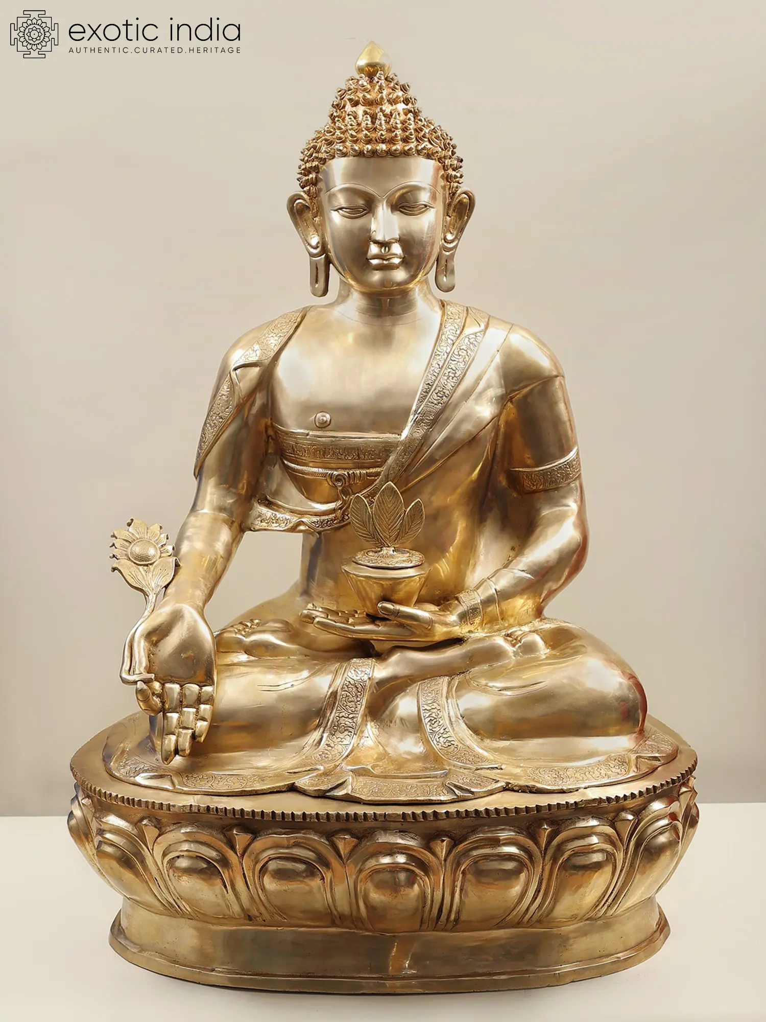 This portrayal transcends the boundaries of mere art; it emanates the very essence of healing and solace, Lord Bhaisajyaguru is a timeless symbol of comfort and restoration in the face of adversity.