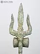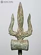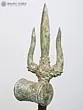 The trident, or 'trishula' in Sanskrit, is the primary weapon and emblem of Lord Shiva. Its three prongs are said to represent various triads, including creation, preservation, and destruction; the past, present, and future; and the three fundamental gunas or qualities of nature – sattva (purity), rajas (activity), and tamas (inertia). Wielded by Shiva, the trishula symbolizes his control over these forces, his ability to dispel ignorance, and his role as the ultimate consciousness that transcends all duality. The intricate detailing, including what appears to be a stylized depiction of a drum (damaru) at the base of the prongs, further enhances its symbolic depth, referencing Shiva's cosmic dance, Tandava, which rhythmically pulses the universe into and out of existence.