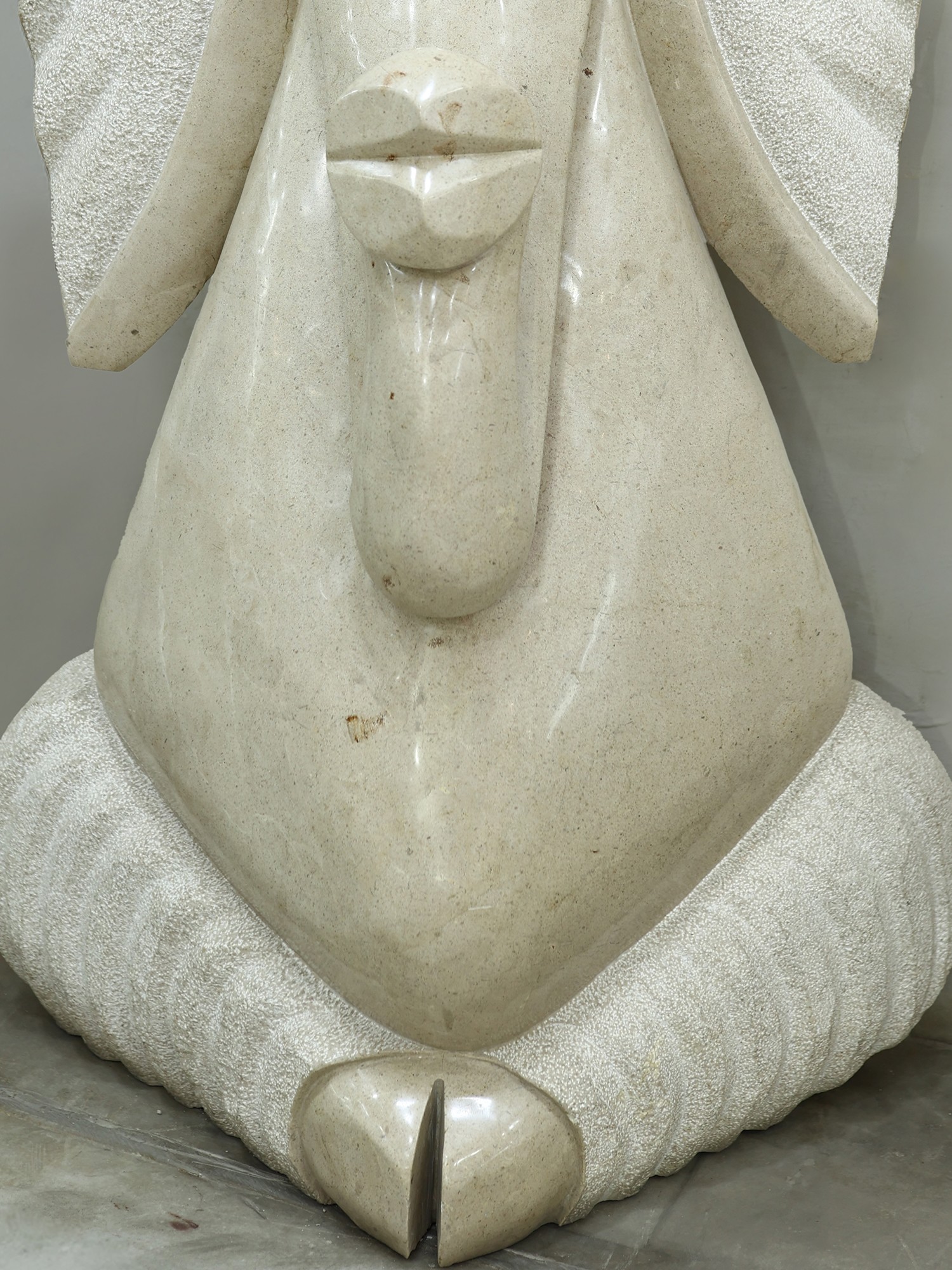 78" Lord Buddha Face | Modern Art Sculpture | White Marble | Exquisite Indian Art