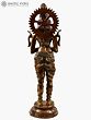 The significance of the namaskar position showcased by this large brass statue lies in its deeply ingrained cultural roots. In Indian culture, the gesture of namaskar is a universal symbol of respect, gratitude, and welcome. This magnificent handmade statue stands gracefully on a pedestal, radiating an aura of warmth and hospitality. The statue's brass craftsmanship represents the timeless tradition of metalwork in Indian art. The gesture of namaskar, with palms pressed together and a gentle bow, is a heartfelt gesture that conveys reverence and invites guests with open arms. This statue serves as a symbol of hospitality, forging connections, and fostering a sense of belonging within the home or any sacred space.