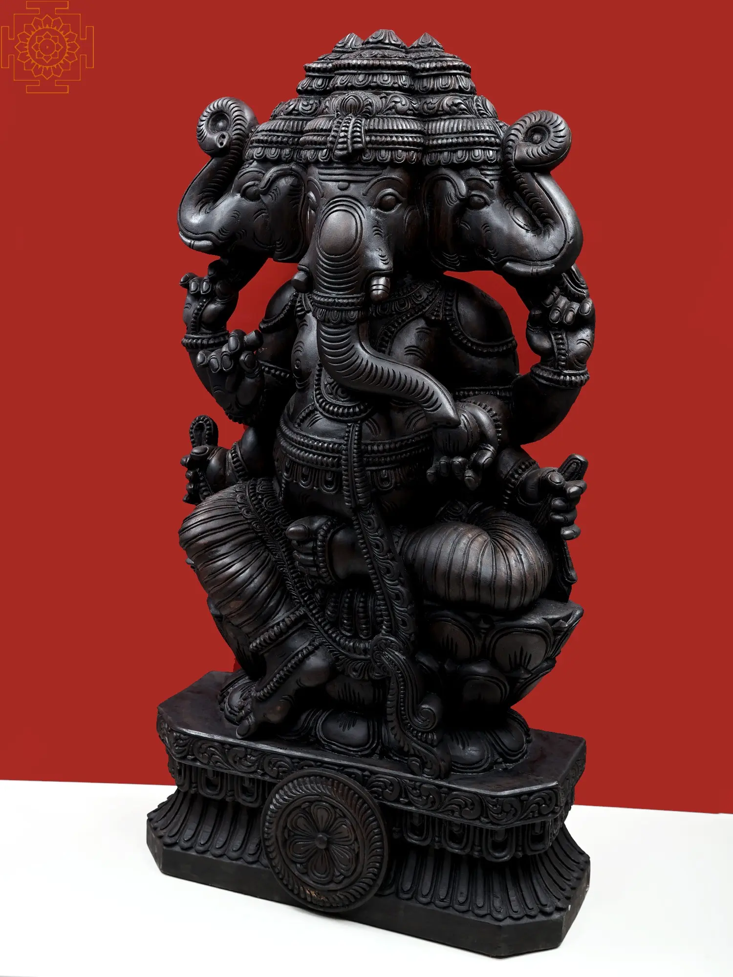 47" Large Three Headed Ganesha | Wooden Ganesha | Handmade