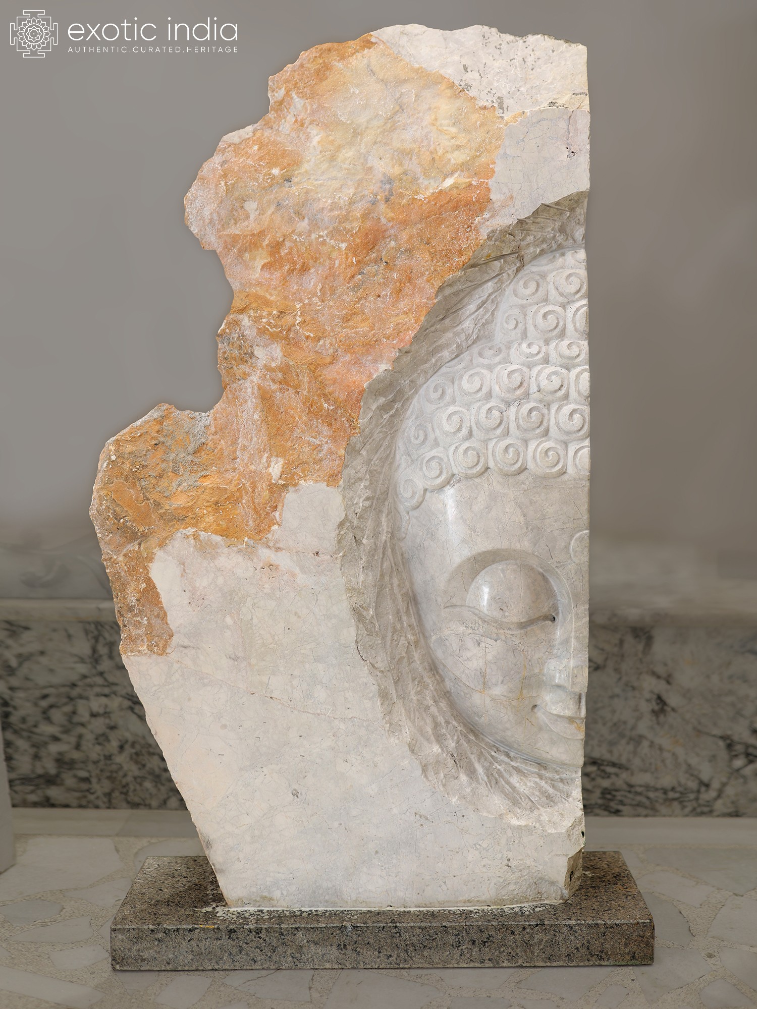 74" Lord Buddha Face | Modern Art Sculpture | Marble | Exquisite Indian Art
