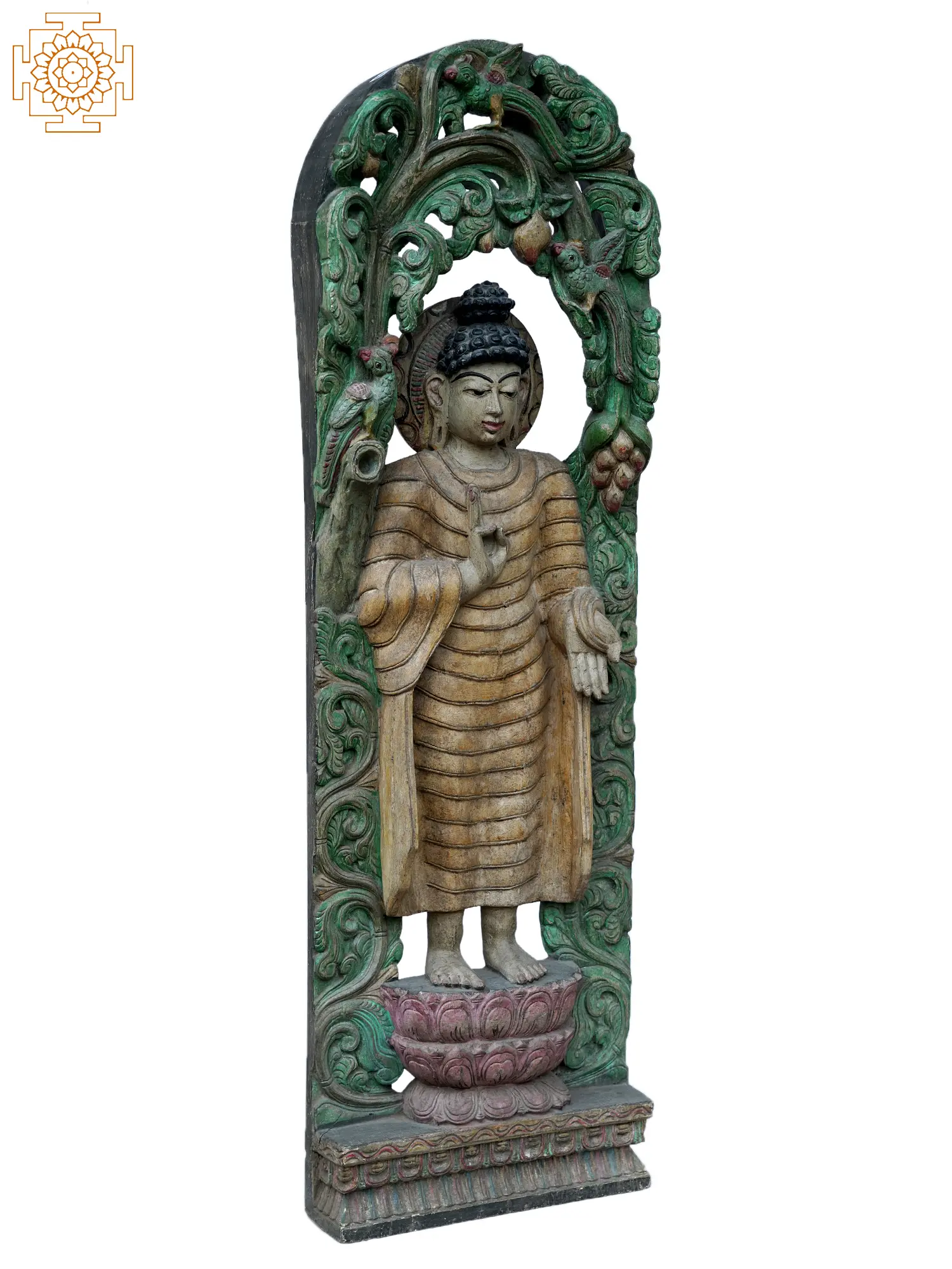 6" Brass Bodhi Tree Buddha on Wooden Pedestal | Indian Handcrafted Idol